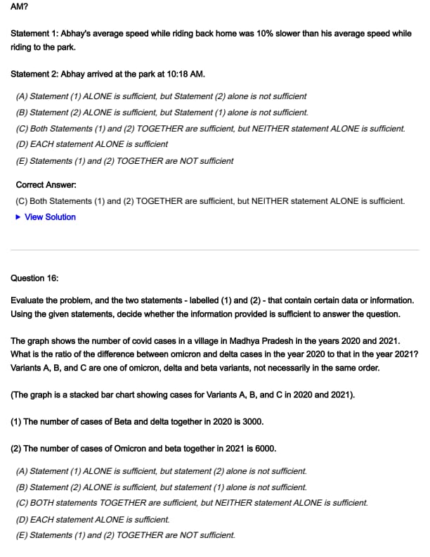 Statement 1: Abhay's average speed while riding back home was 10% slower than his average speed while riding to the park.
