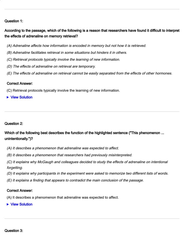 - (B) describe an experiment that tested the effects of adrenaline on memory retrieval