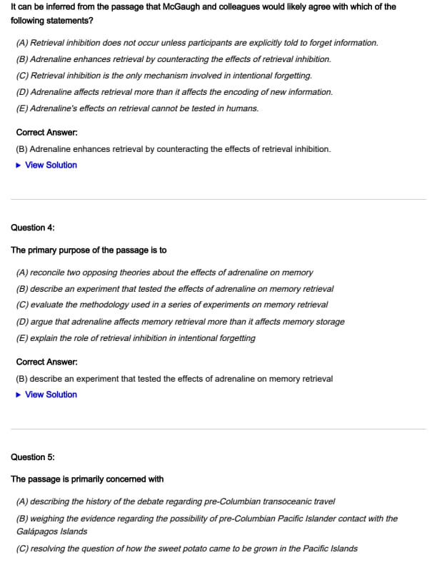 - (E) Adrenaline's effects on retrieval cannot be tested in humans.