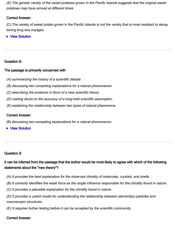 - (E) The genetic variety of the sweet potatoes grown in the Pacific Islands suggests that the original sweet potatoes may have arrived at different times.
