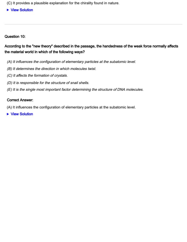 - (A) It provides the best explanation for the observed chirality of molecules, crystals, and shells.