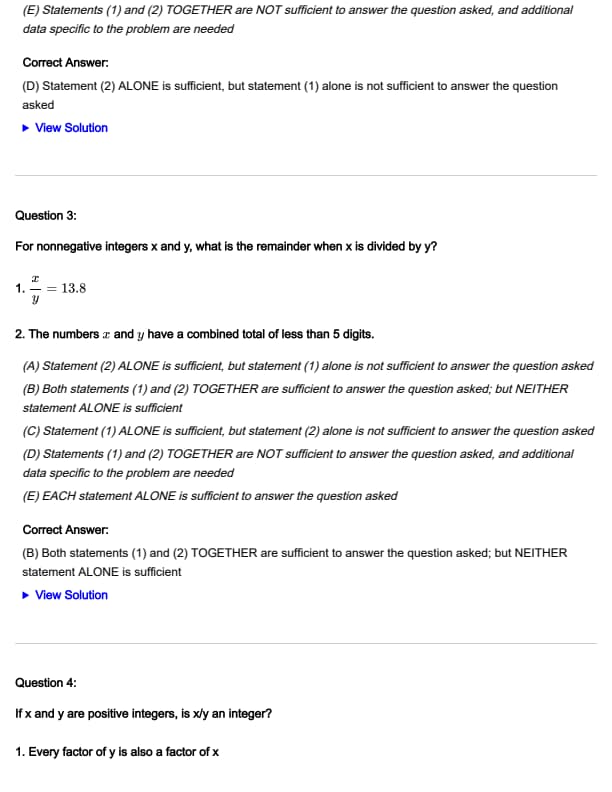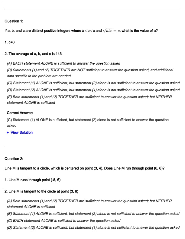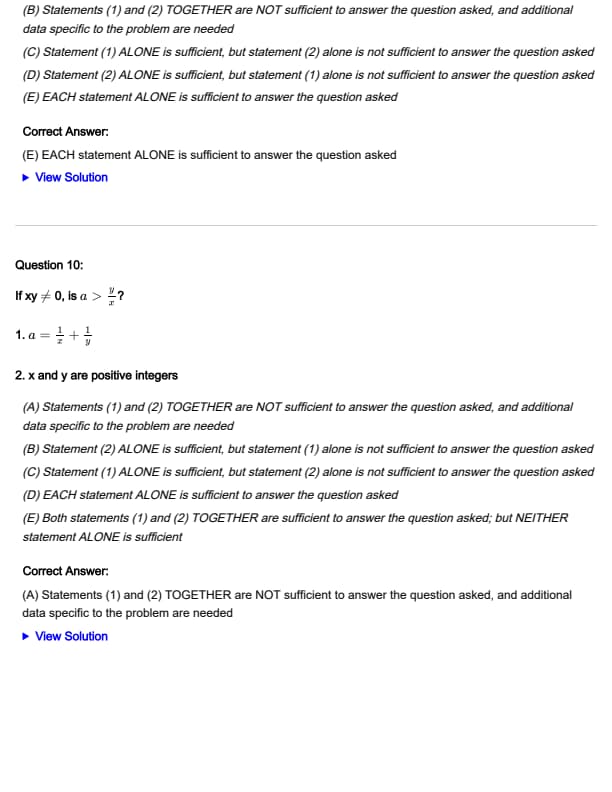 - (E) Statements (1) and (2) TOGETHER are NOT sufficient to answer the question asked, and additional data specific to the problem are needed
