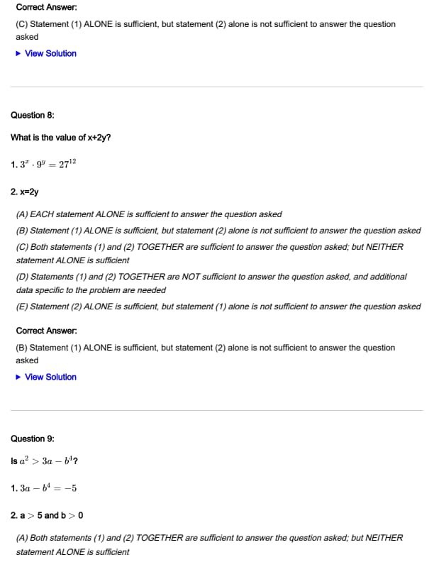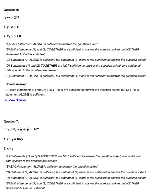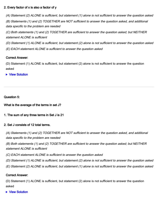 - (D) Statements (1) and (2) TOGETHER are NOT sufficient to answer the question asked, and additional data specific to the problem are needed