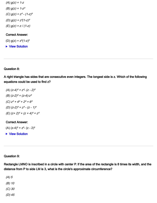 A right triangle has sides that are consecutive even integers. The longest side is z. Which of the following equations could be used to find z?