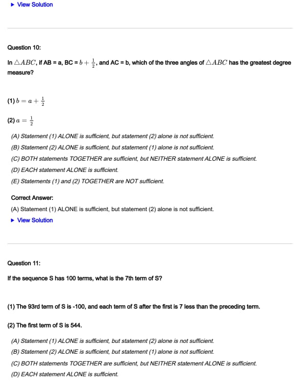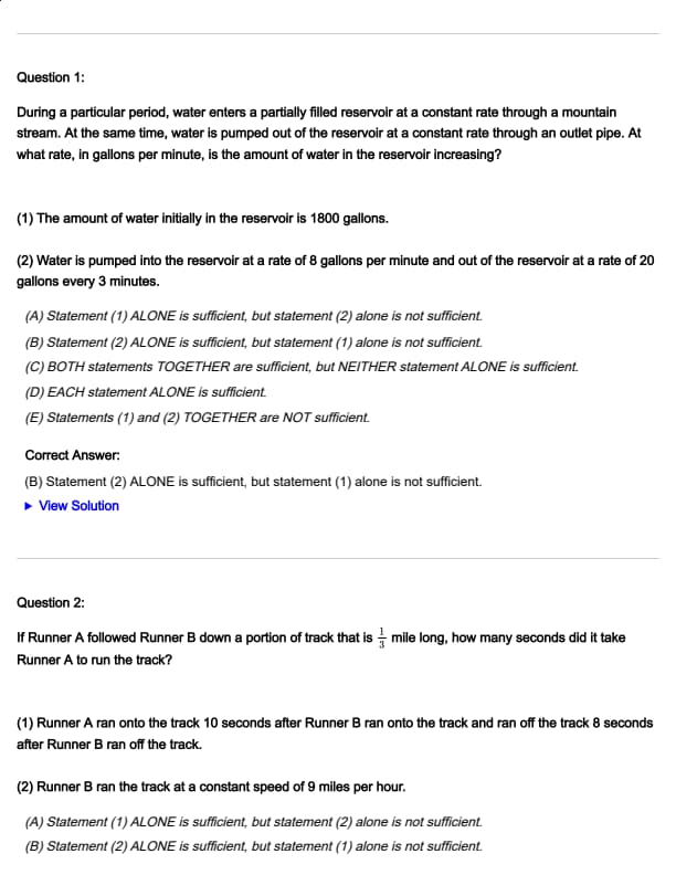 - (B) Statement (2) ALONE is sufficient, but statement (1) alone is not sufficient.