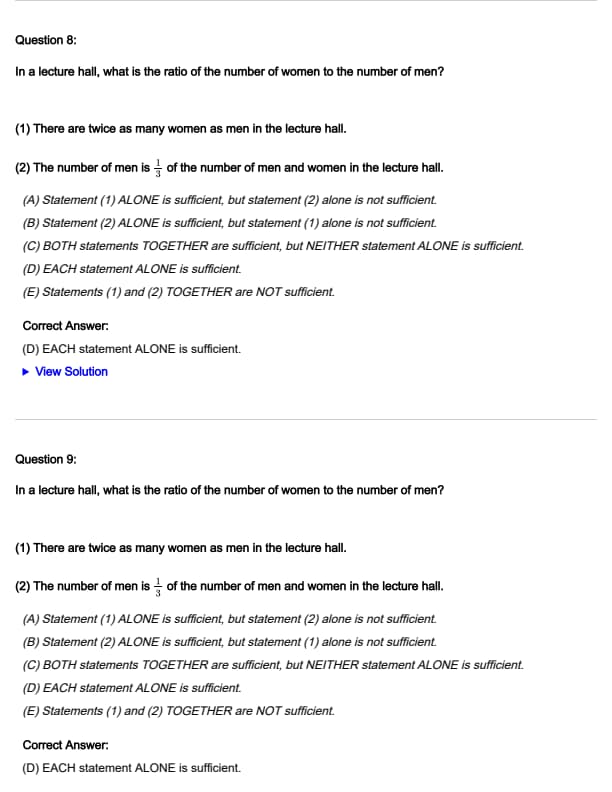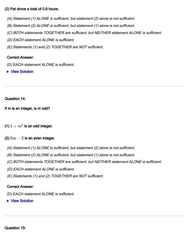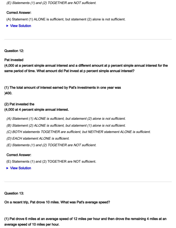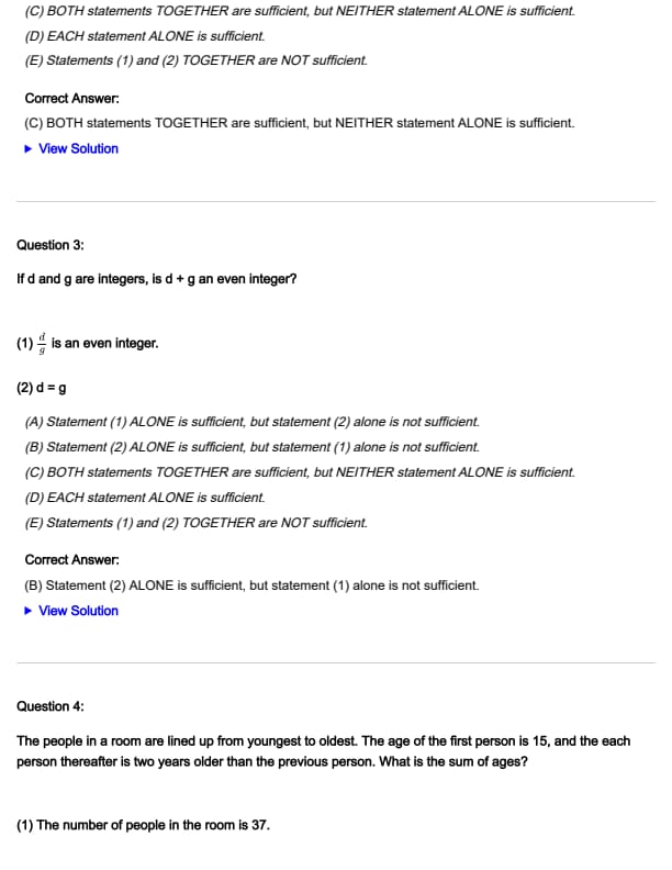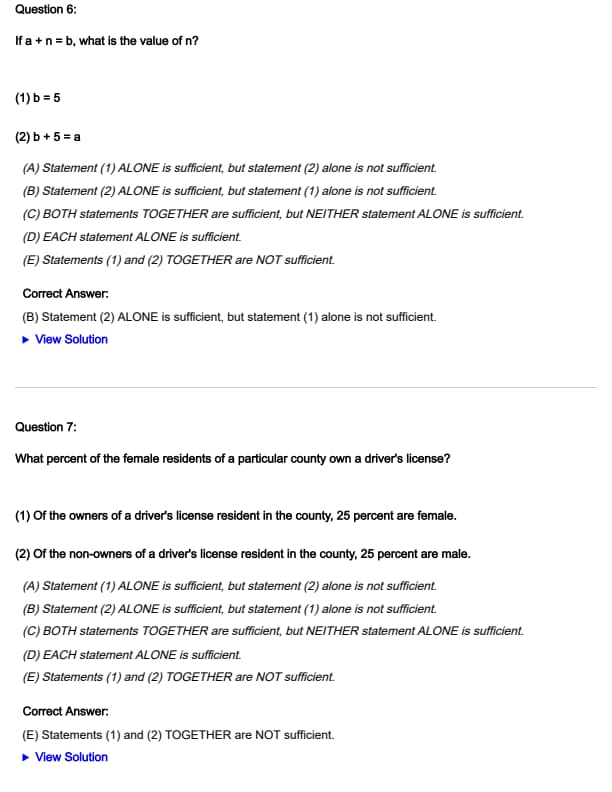 - (E) Statements (1) and (2) TOGETHER are NOT sufficient.