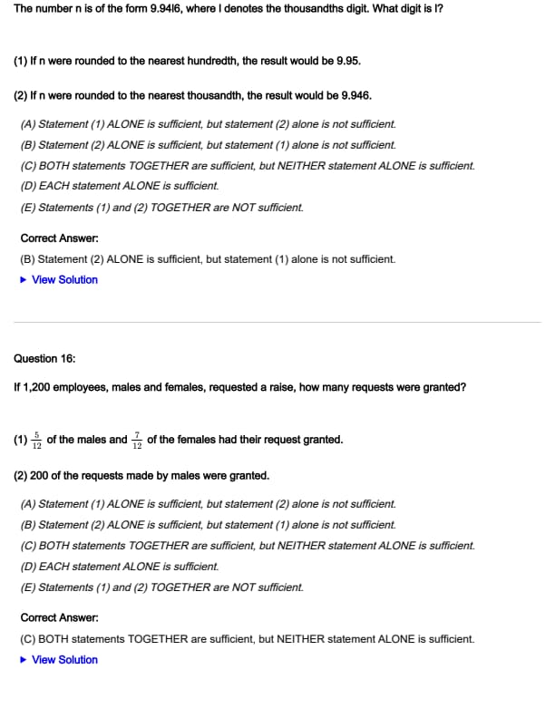 - (C) BOTH statements TOGETHER are sufficient, but NEITHER statement ALONE is sufficient.