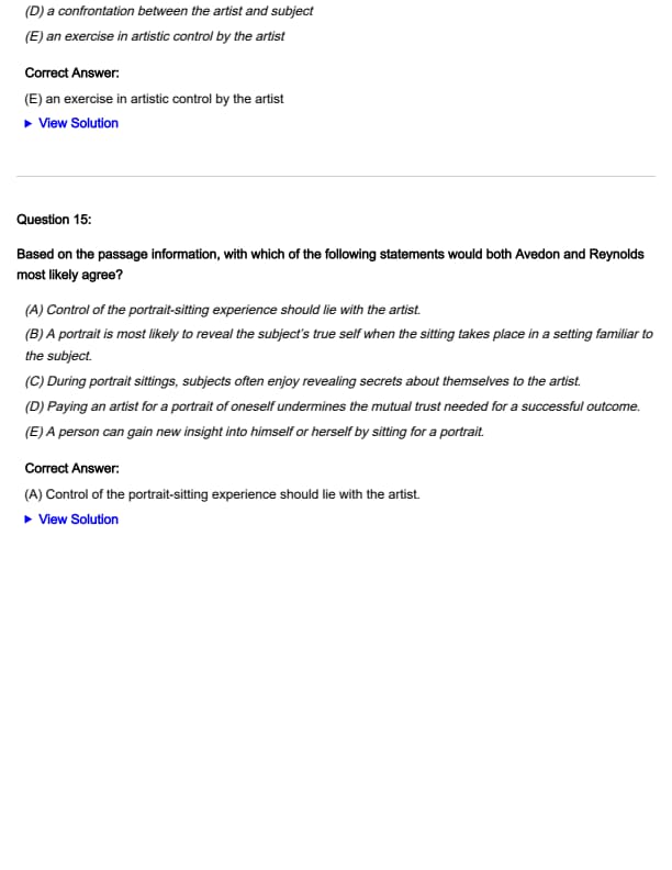 - (B) A portrait is most likely to reveal the subject’s true self when the sitting takes place in a setting familiar to the subject.