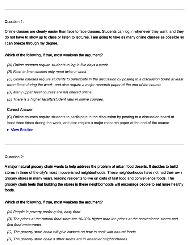 - (C) Online courses require students to participate in the discussion by posting to a discussion board at least three times during the week, and also require a major research paper at the end of the course.