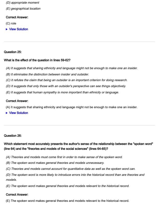 - (E) The spoken word makes general theories and models relevant to the historical record.