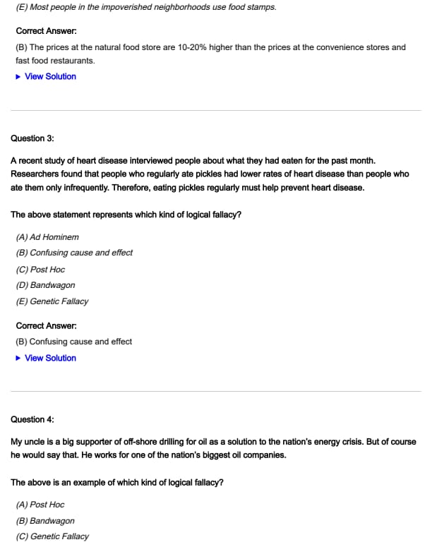 - (B) The prices at the natural food store are 10-20% higher than the prices at the convenience stores and fast food restaurants.