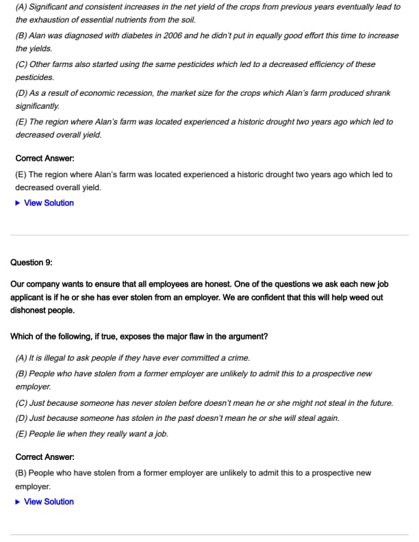 - (E) The region where Alan’s farm was located experienced a historic drought two years ago which led to decreased overall yield.