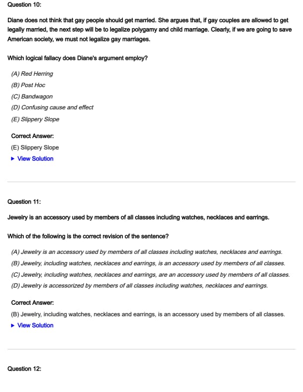 Diane does not think that gay people should get married. She argues that, if gay couples are allowed to get legally married, the next step will be to legalize polygamy and child marriage. Clearly, if we are going to save American society, we must not legalize gay marriages.