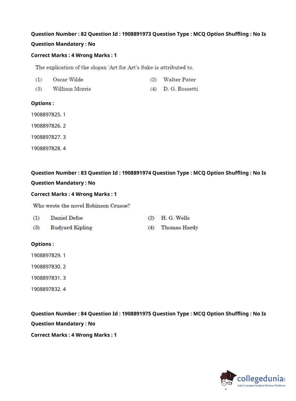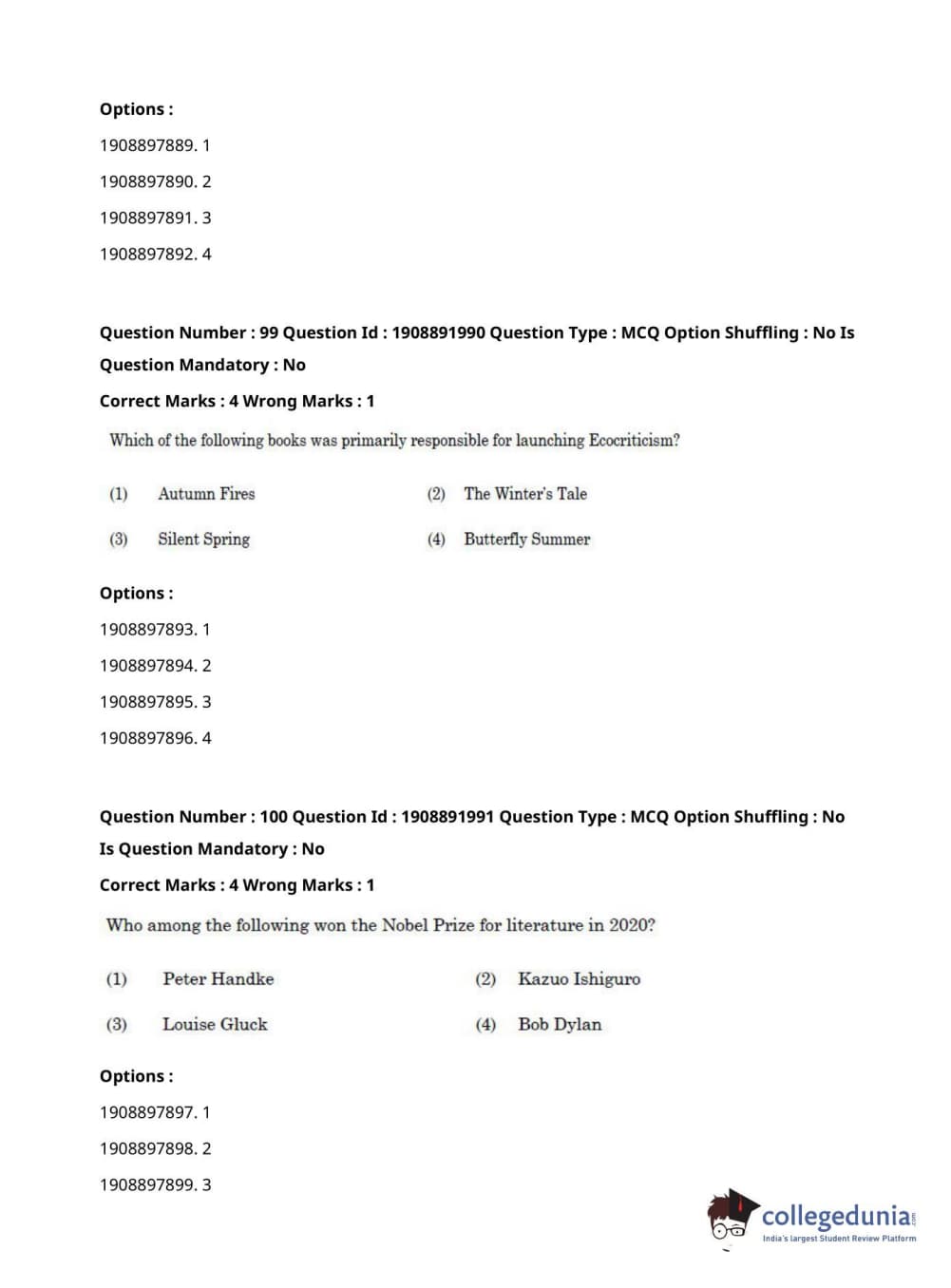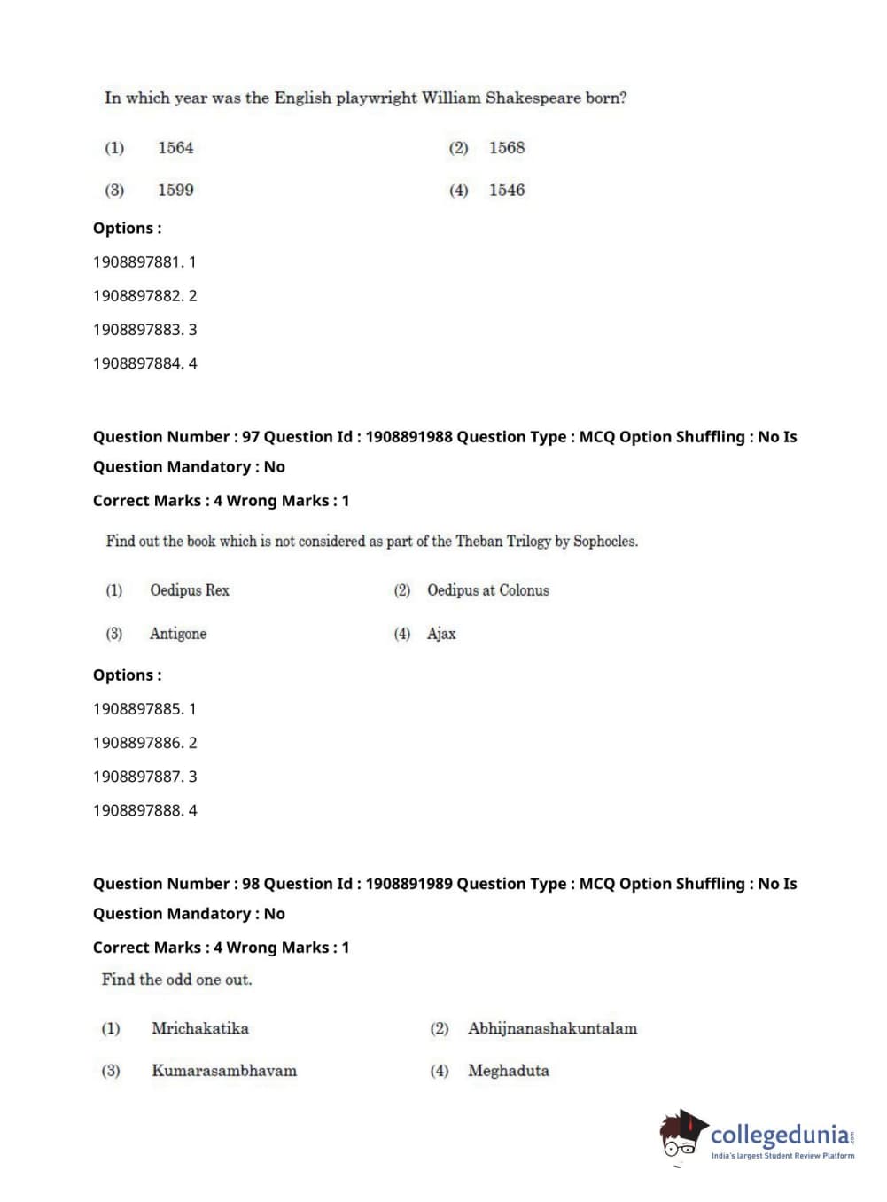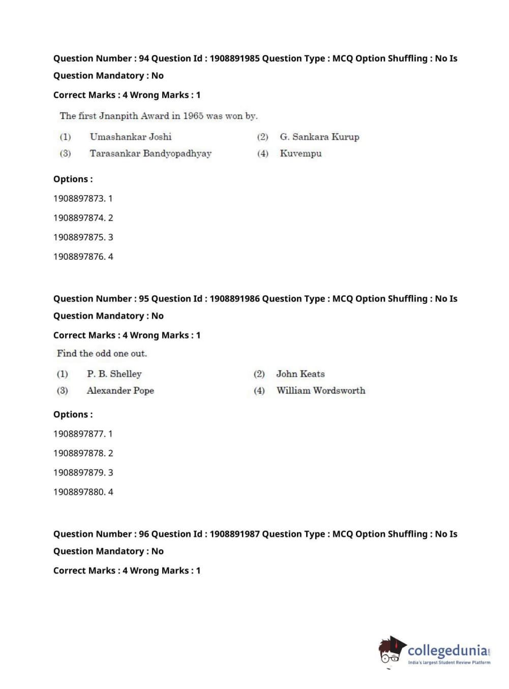 CUCET 2021 PGQP05 Question paper with answer key pdf conducted on September 15, 2021 in Morning Session (10 AM to 12 PM) is available for download. The exam was successfully organized by National Testing Agency (NTA). The question paper comprised a total of 100 questions.