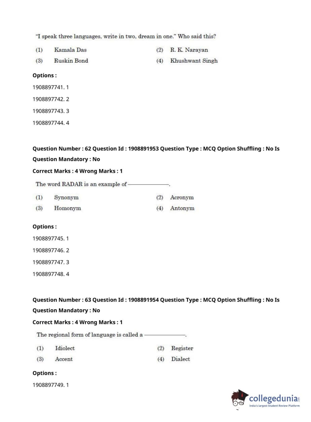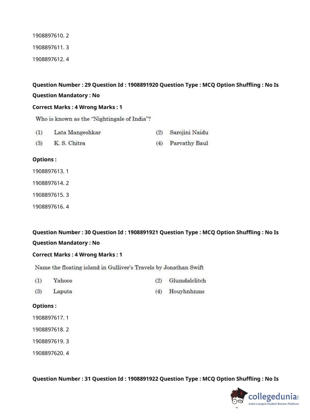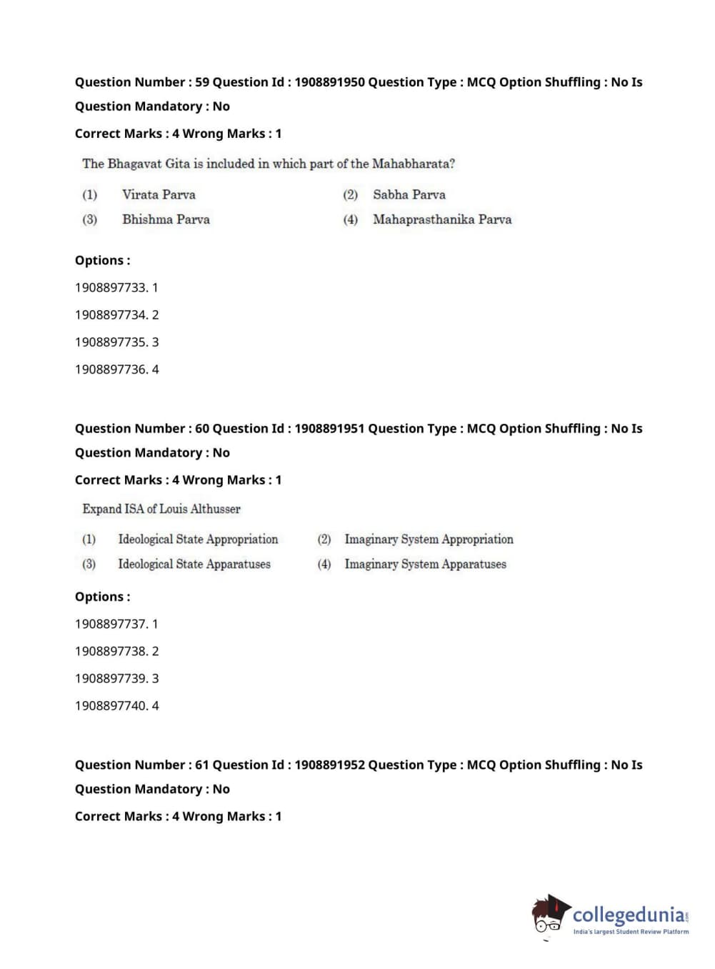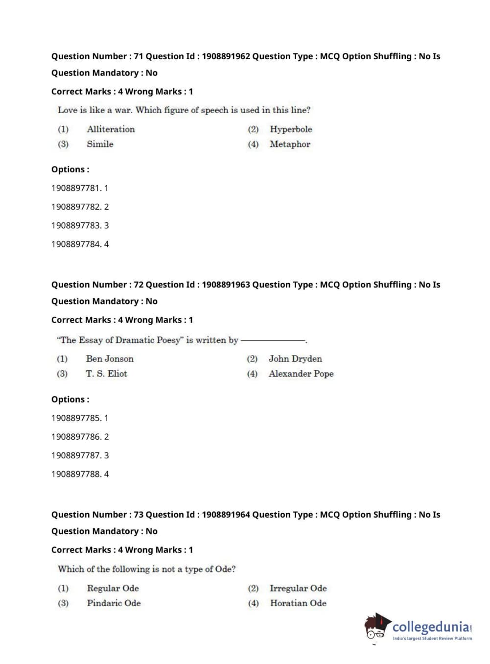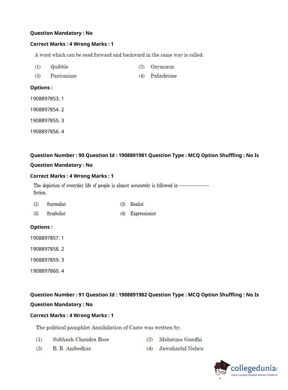 CUCET 2021 PGQP05 Question paper with answer key pdf conducted on September 15, 2021 in Morning Session (10 AM to 12 PM) is available for download. The exam was successfully organized by National Testing Agency (NTA). The question paper comprised a total of 100 questions.