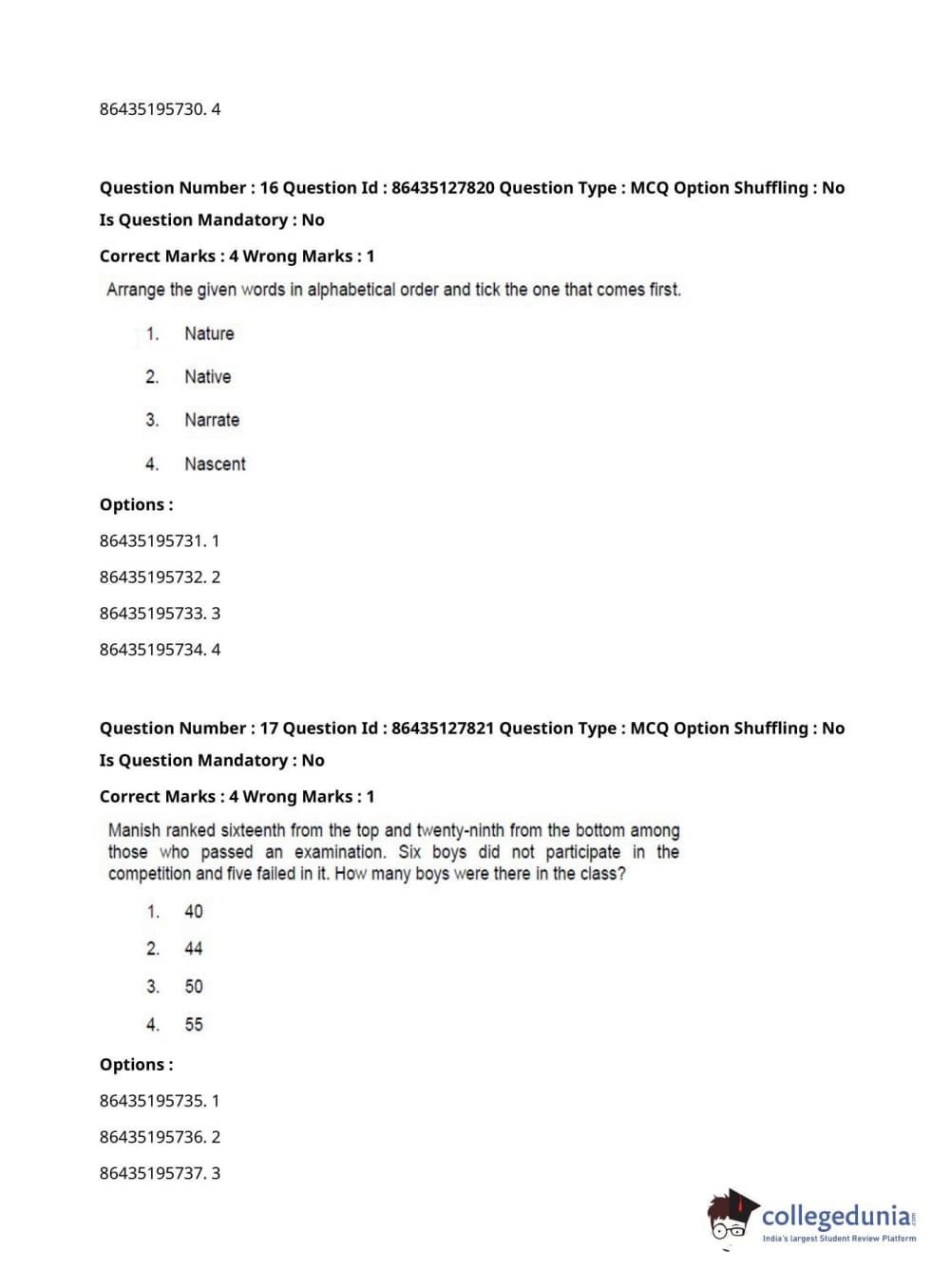 CUCET 2021 PGQP07 Question paper with answer key pdf conducted on September 16, 2021 in Afternoon Session (3 PM to 5 PM) is available for download. The exam was successfully organized by National Testing Agency (NTA). The question paper comprised a total of 100 questions.