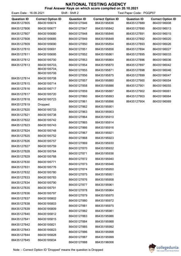| CUCET 2021 PGQP07 Question Paper PDF | CUCET 2021 PGQP07 Answer Key PDF |