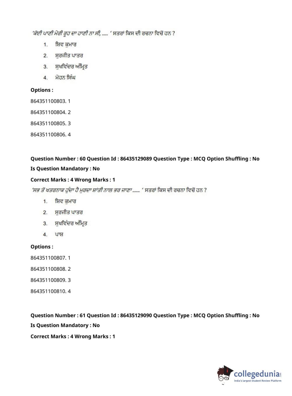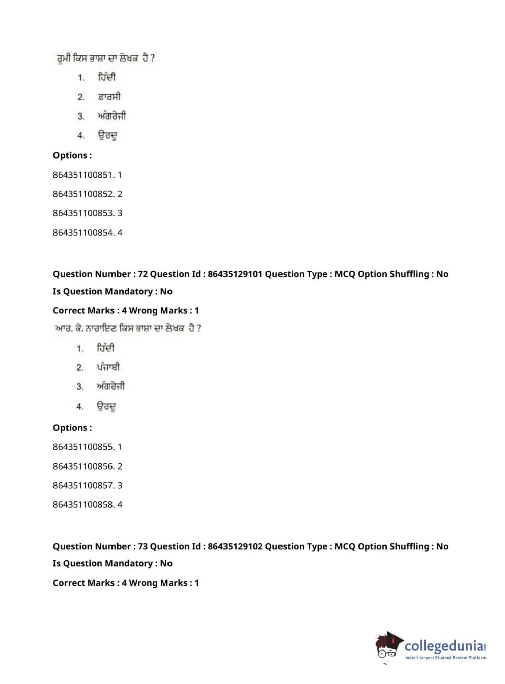 CUCET 2021 PGQP08 Question paper with answer key pdf conducted on September 24, 2021 in Forenoon Session (10 AM to 12 PM) is available for download. The exam was successfully organized by National Testing Agency (NTA). The question paper comprised a total of 100 questions.