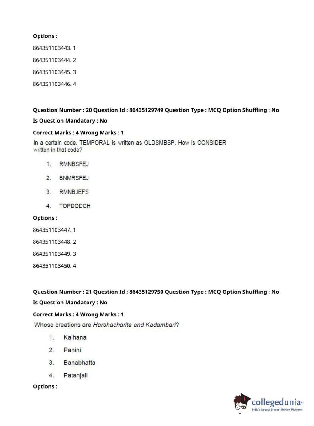 CUCET 2021 PGQP12 Question Paper with Answer Key PDF for Afternoon Session