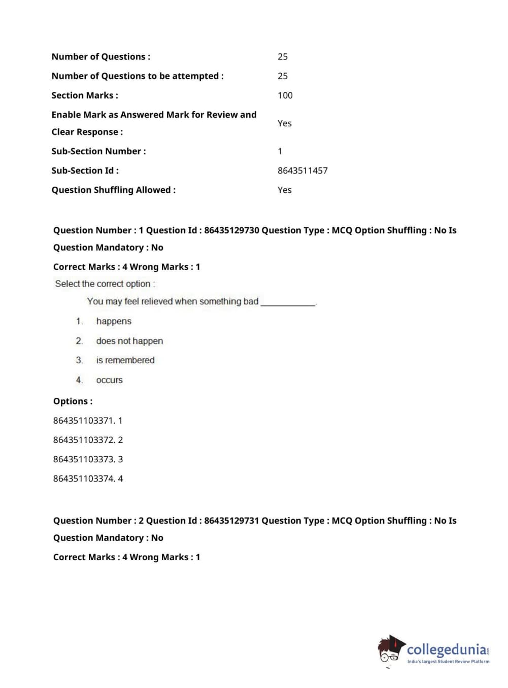 CUCET 2021 PGQP12 Question paper with answer key pdf conducted on September 24, 2021 in Afternoon Session (3 PM to 5 PM) is available for download. The exam was successfully organized by National Testing Agency (NTA). The question paper comprised a total of 100 questions.