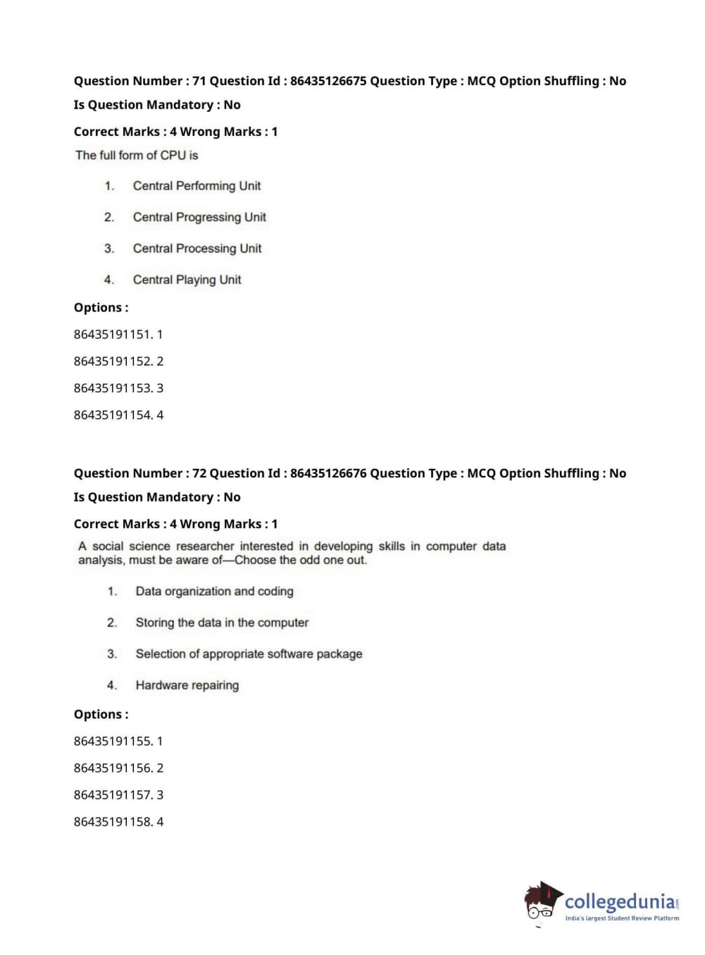 CUCET 2021 PGQP15 Question paper with answer key pdf conducted on September 16, 2021 in Morning Session (10 AM to 12 PM) is available for download. The exam was successfully organized by National Testing Agency (NTA). The question paper comprised a total of 100 questions.