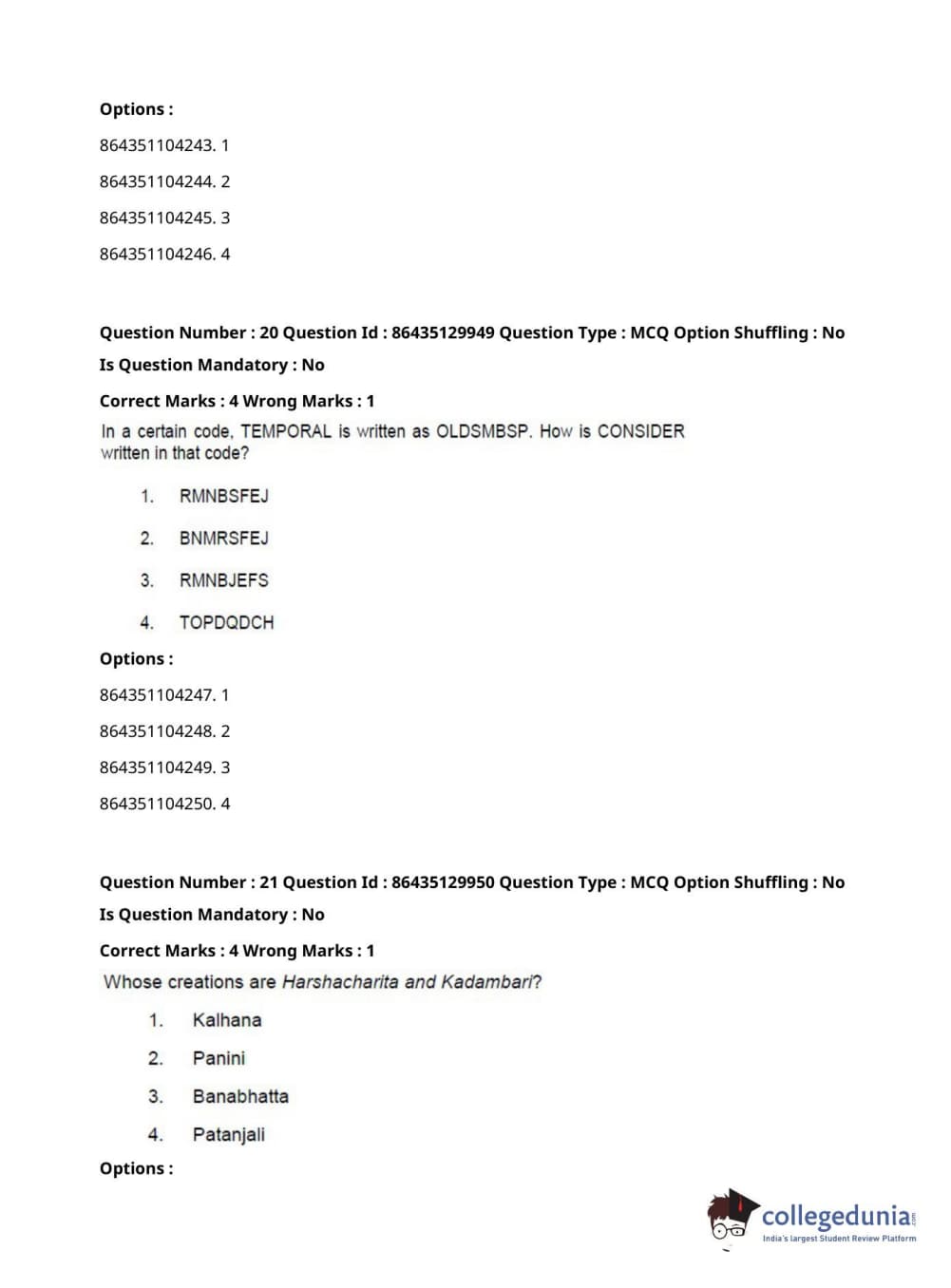 CUCET 2021 PGQP22 Question paper with answer key pdf conducted on September 24, 2021 in Afternoon Session (3 PM to 5 PM) is available for download. The exam was successfully organized by National Testing Agency (NTA). The question paper comprised a total of 100 questions.