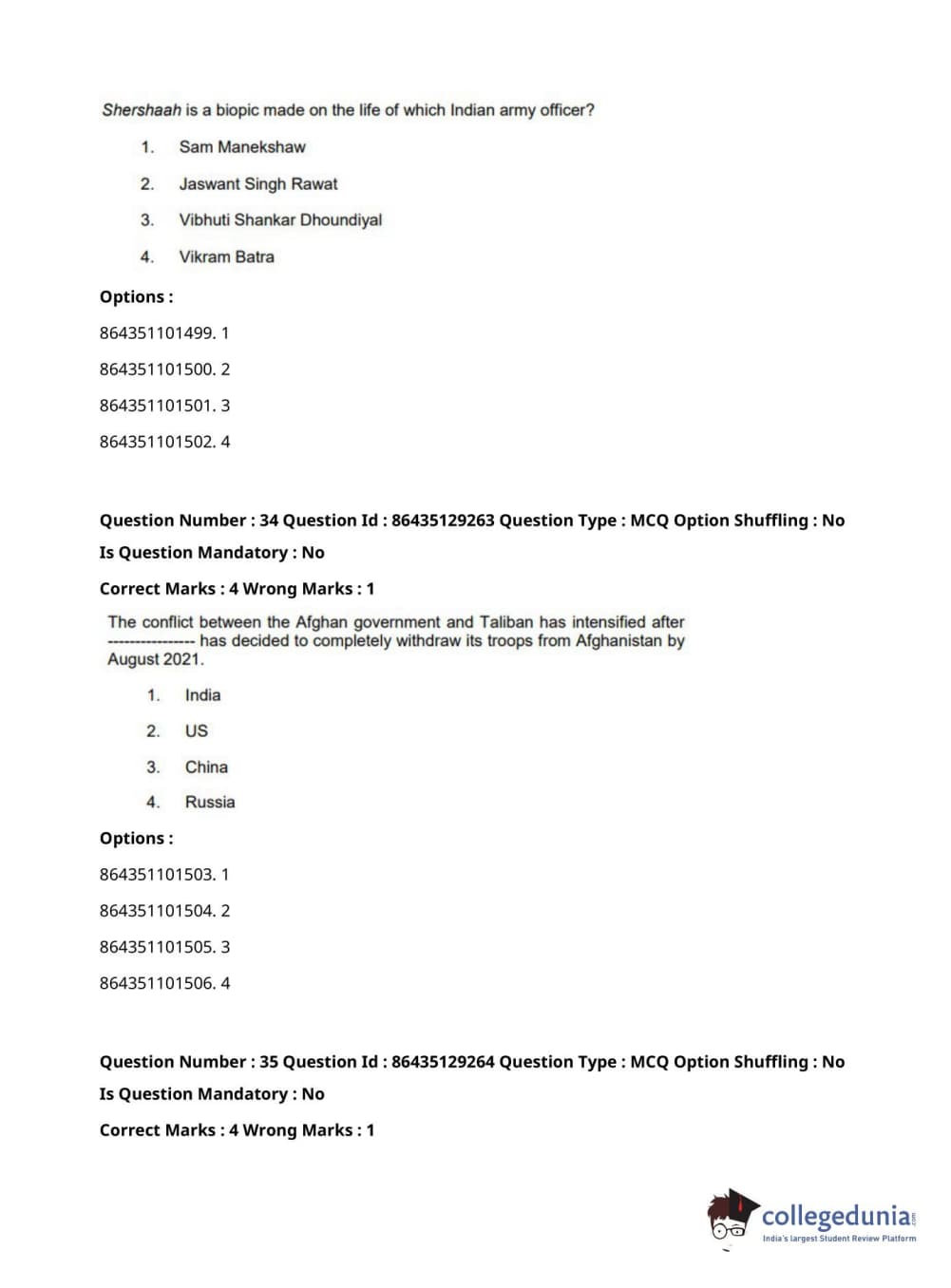 CUCET 2021 PGQP41 Question Paper with Answer Key PDF for Forenoon Session