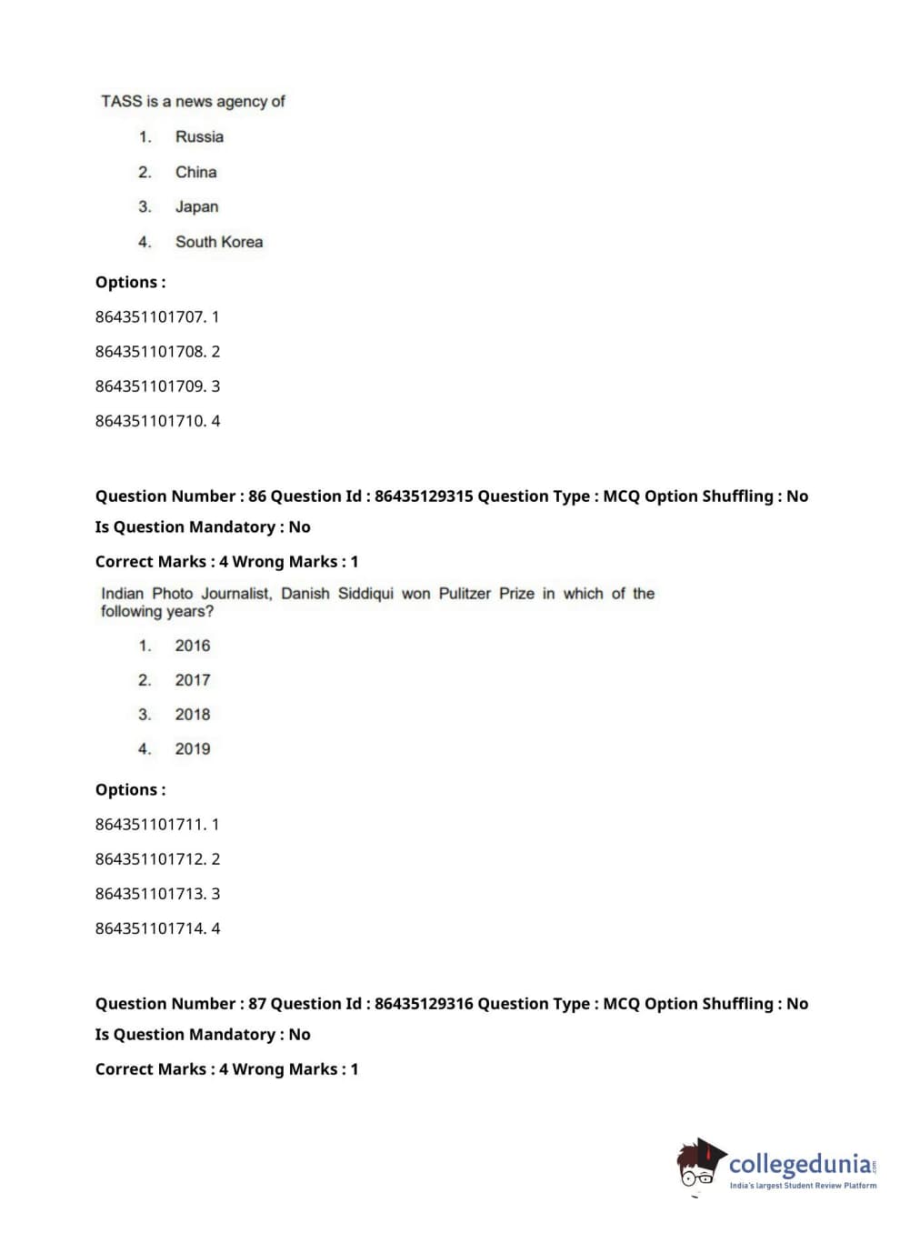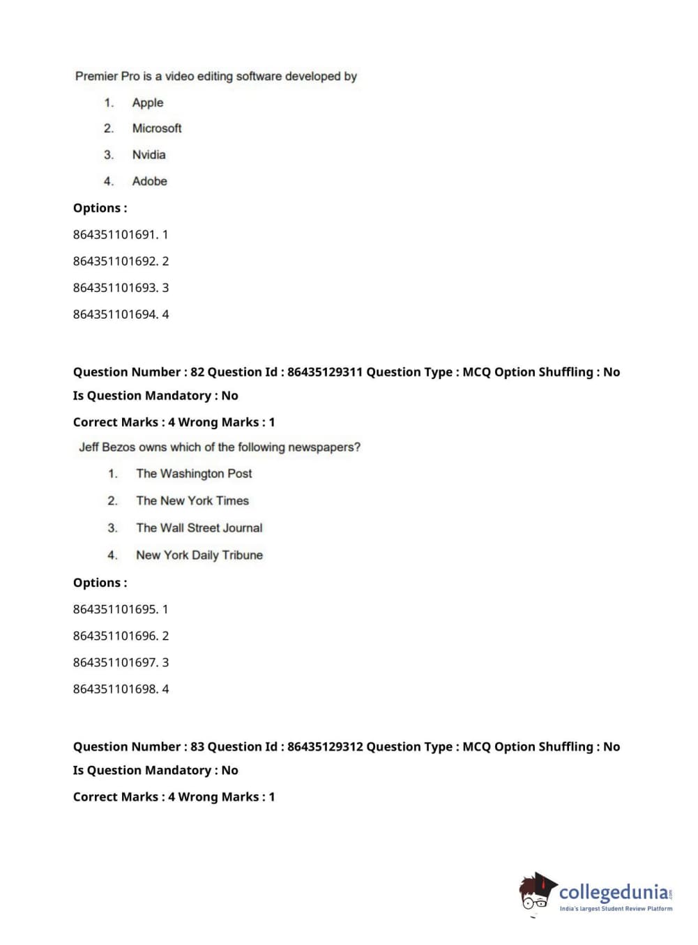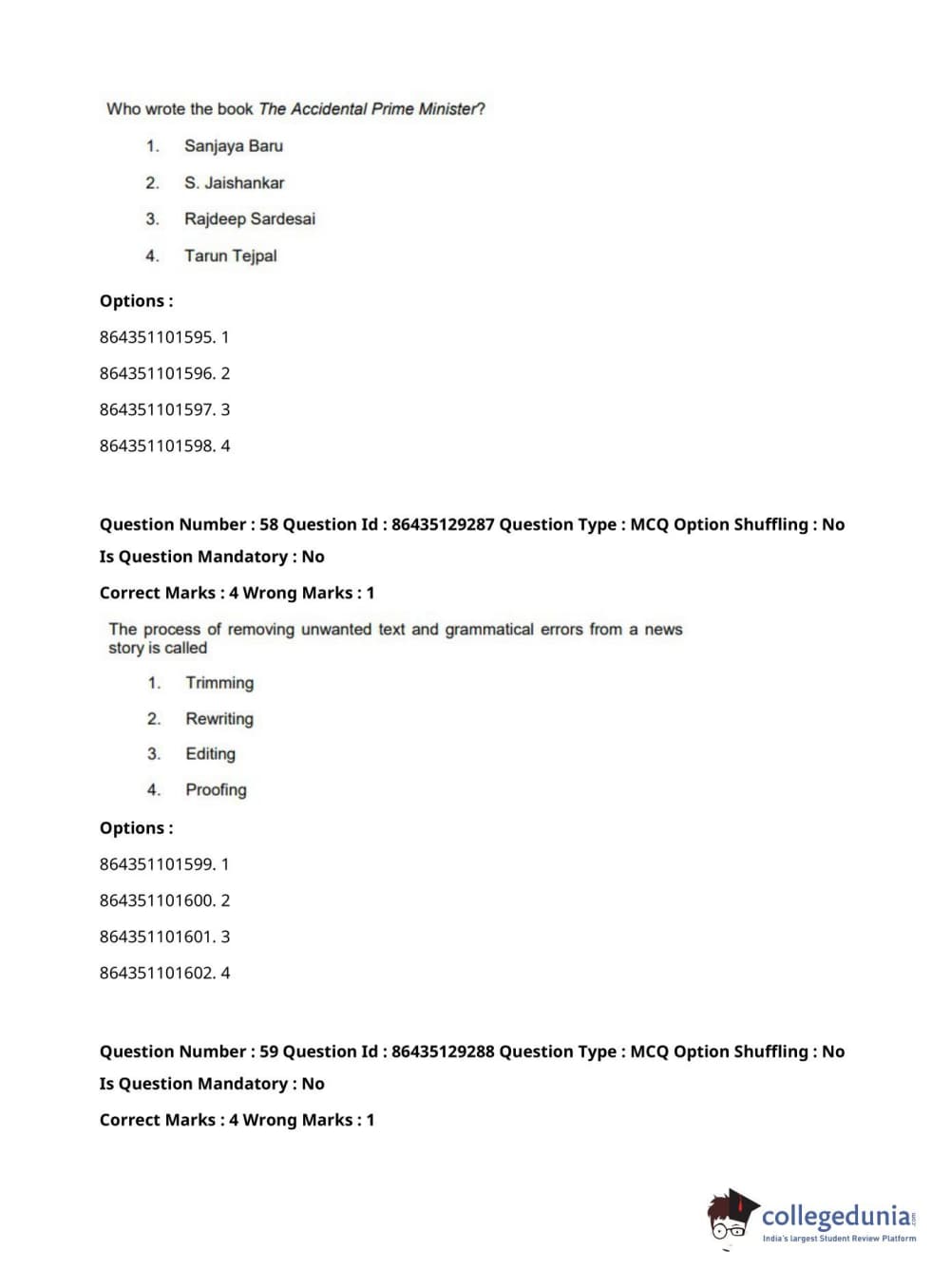 | CUCET 2021 PGQP41 Question Paper PDF | CUCET 2021 PGQP41 Answer Key PDF |