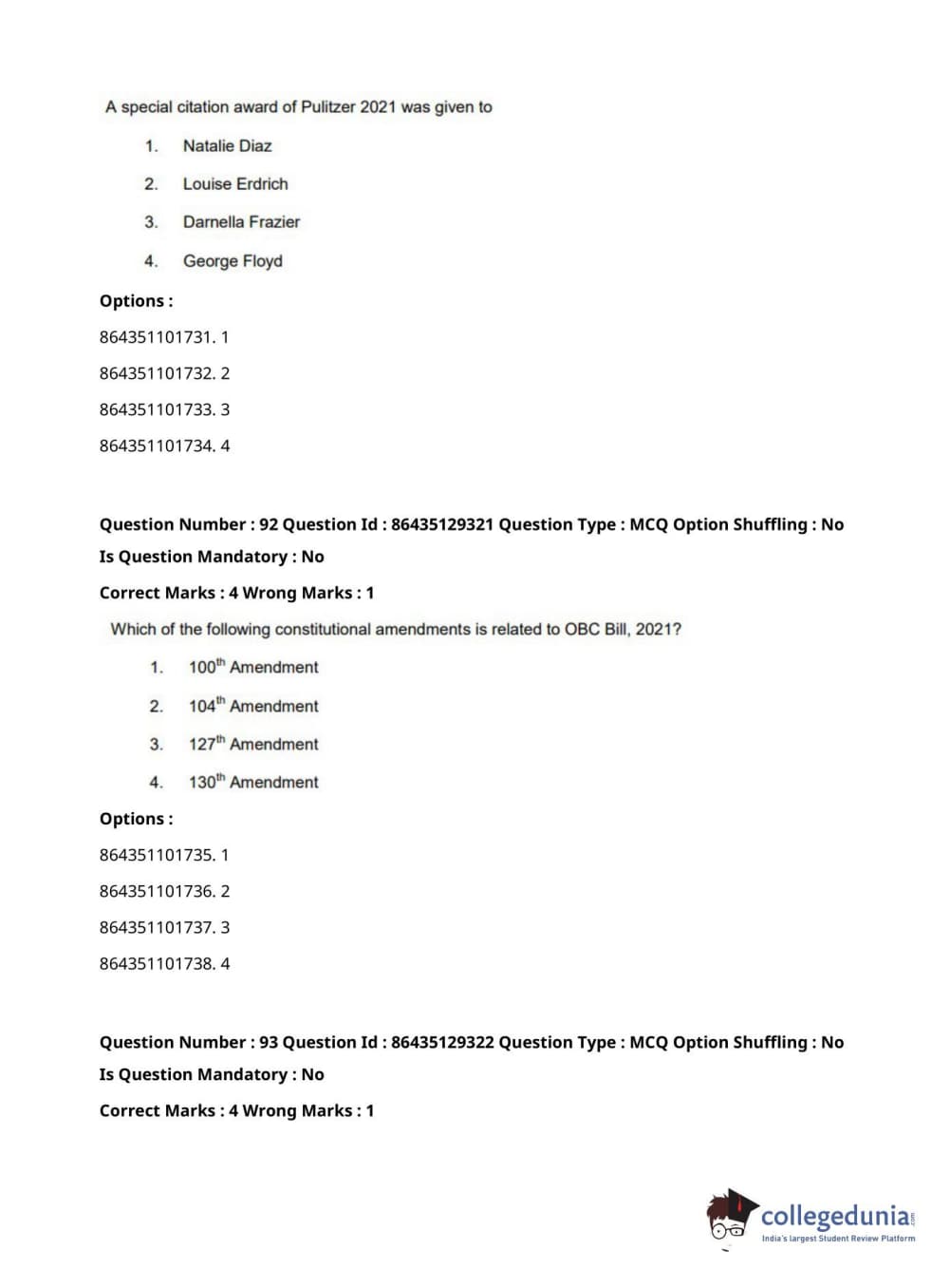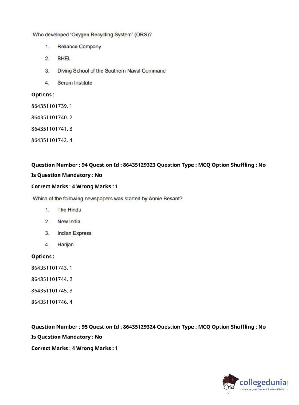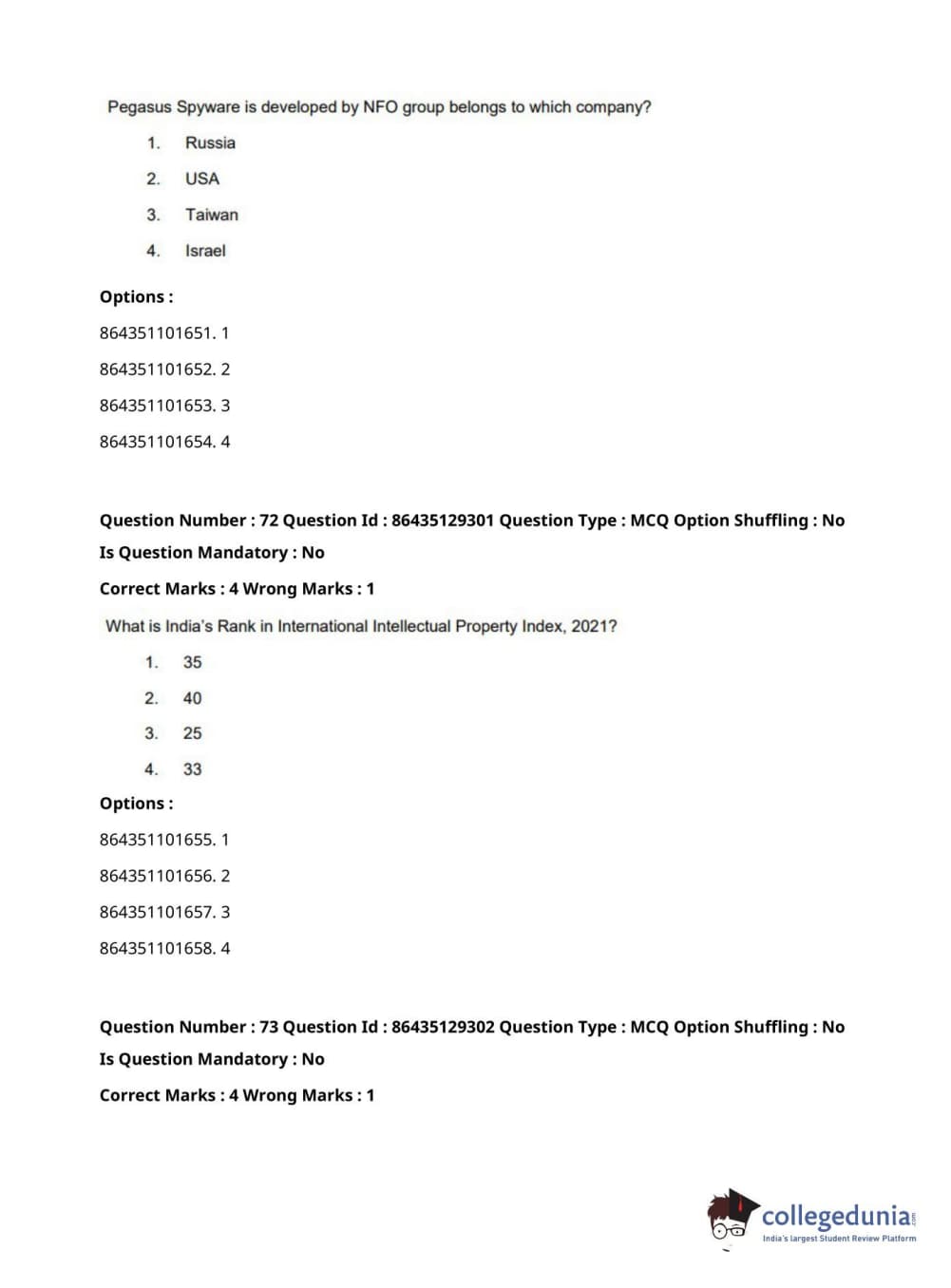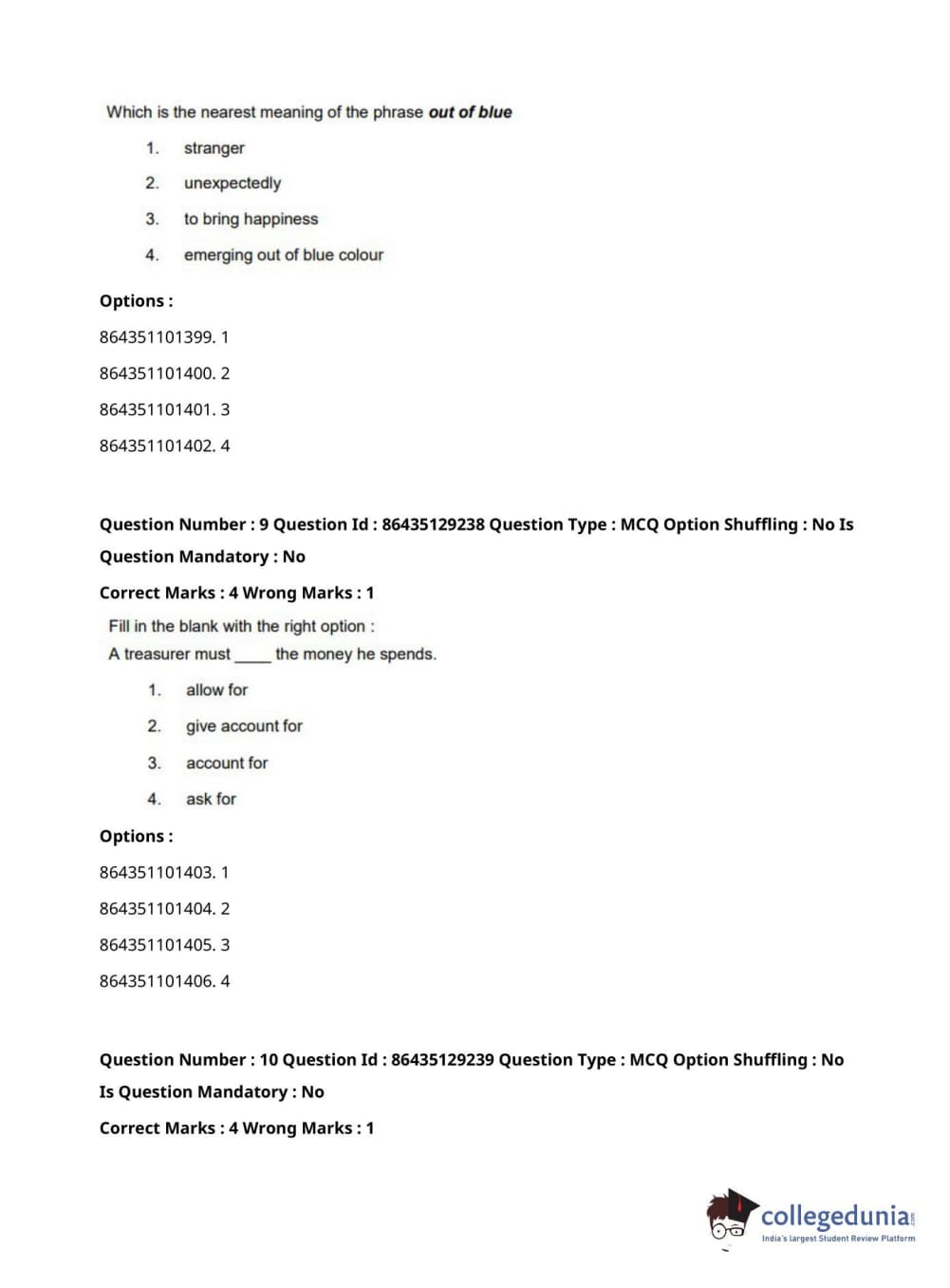 CUCET 2021 PGQP41 Question paper with answer key pdf conducted on September 24, 2021 in Forenoon Session (10 AM to 12 PM) is available for download. The exam was successfully organized by National Testing Agency (NTA). The question paper comprised a total of 100 questions.