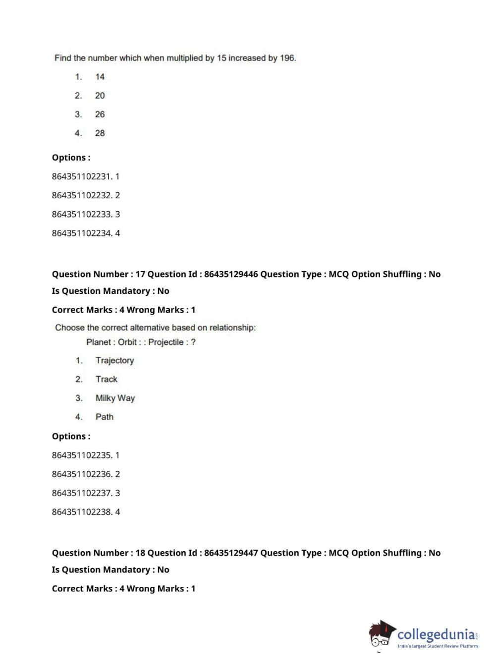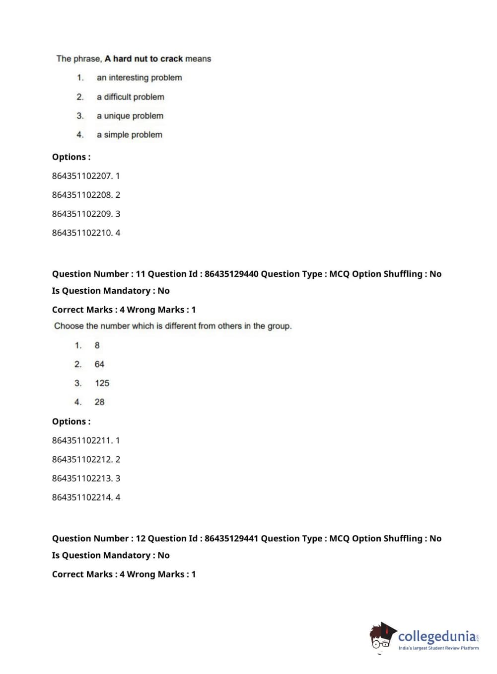 CUCET 2021 PGQP42 Question paper with answer key pdf conducted on September 24, 2021 in Forenoon Session (10 AM to 12 PM) is available for download. The exam was successfully organized by National Testing Agency (NTA). The question paper comprised a total of 100 questions.