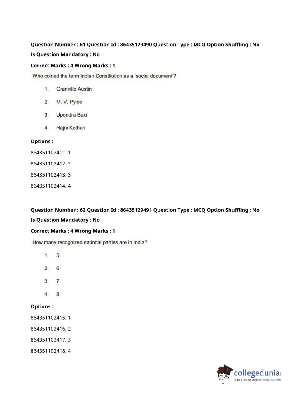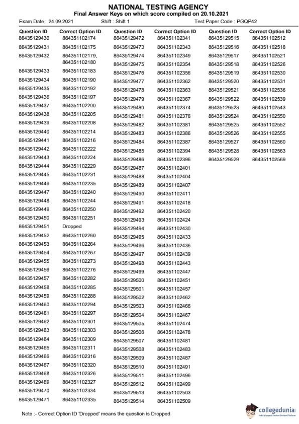 | CUCET 2021 PGQP42 Question Paper PDF | CUCET 2021 PGQP42 Answer Key PDF |