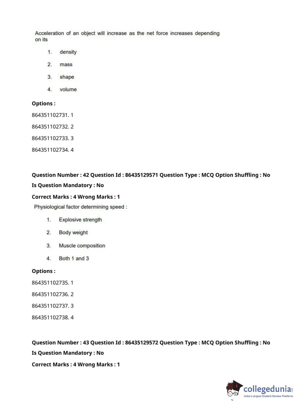 CUCET 2021 PGQP43 Question Paper with Answer Key PDF for Forenoon Session
