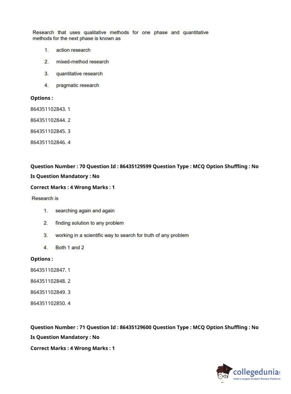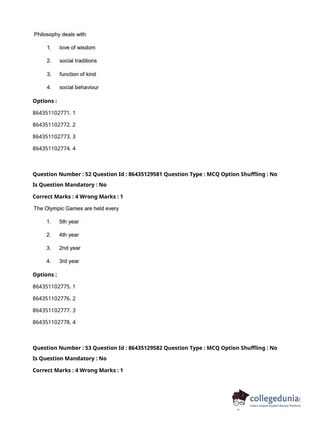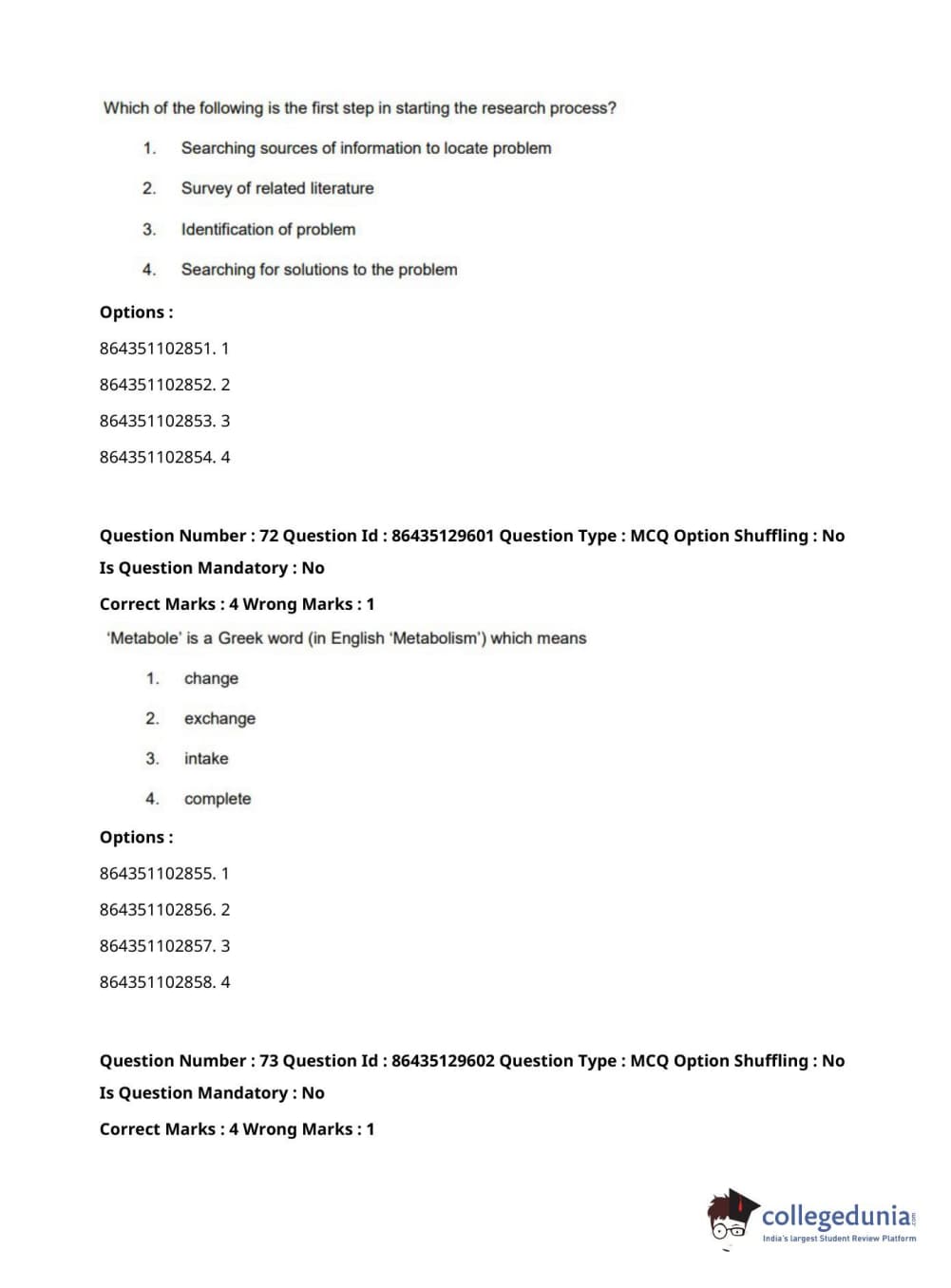 CUCET 2021 PGQP43 Question paper with answer key pdf conducted on September 24, 2021 in Forenoon Session (10 AM to 12 PM) is available for download. The exam was successfully organized by National Testing Agency (NTA). The question paper comprised a total of 100 questions.