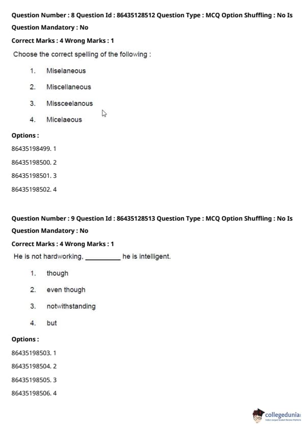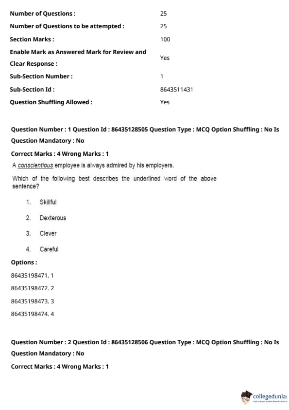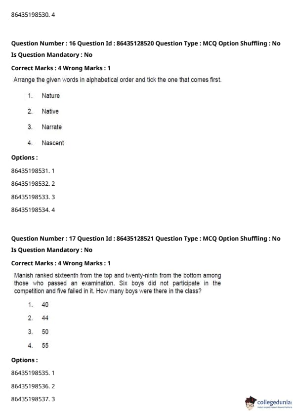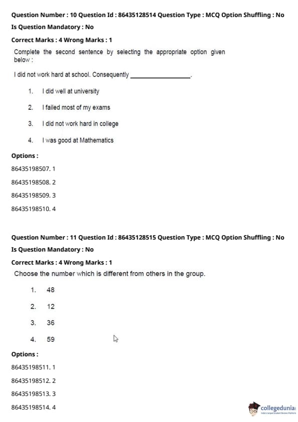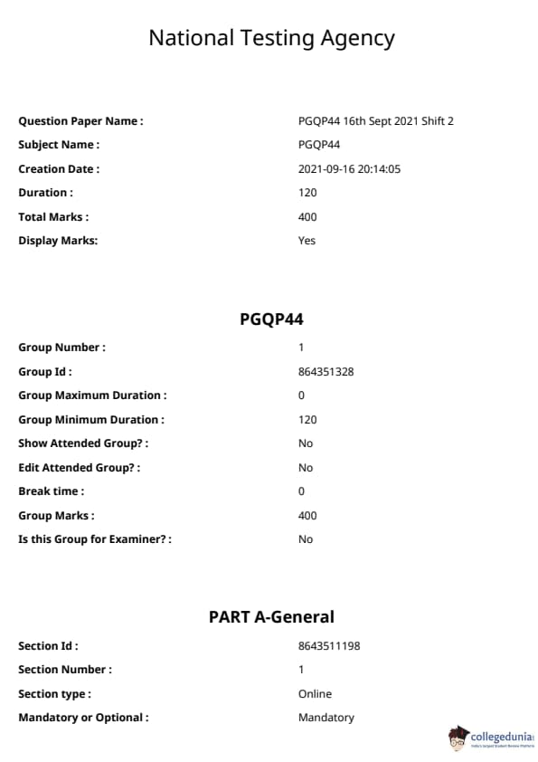 CUCET 2021 PGQP44 Question paper with answer key pdf conducted on September 16, 2021 in Afternoon Session (3 PM to 5 PM) is available for download. The exam was successfully organized by National Testing Agency (NTA). The question paper comprised a total of 100 questions.