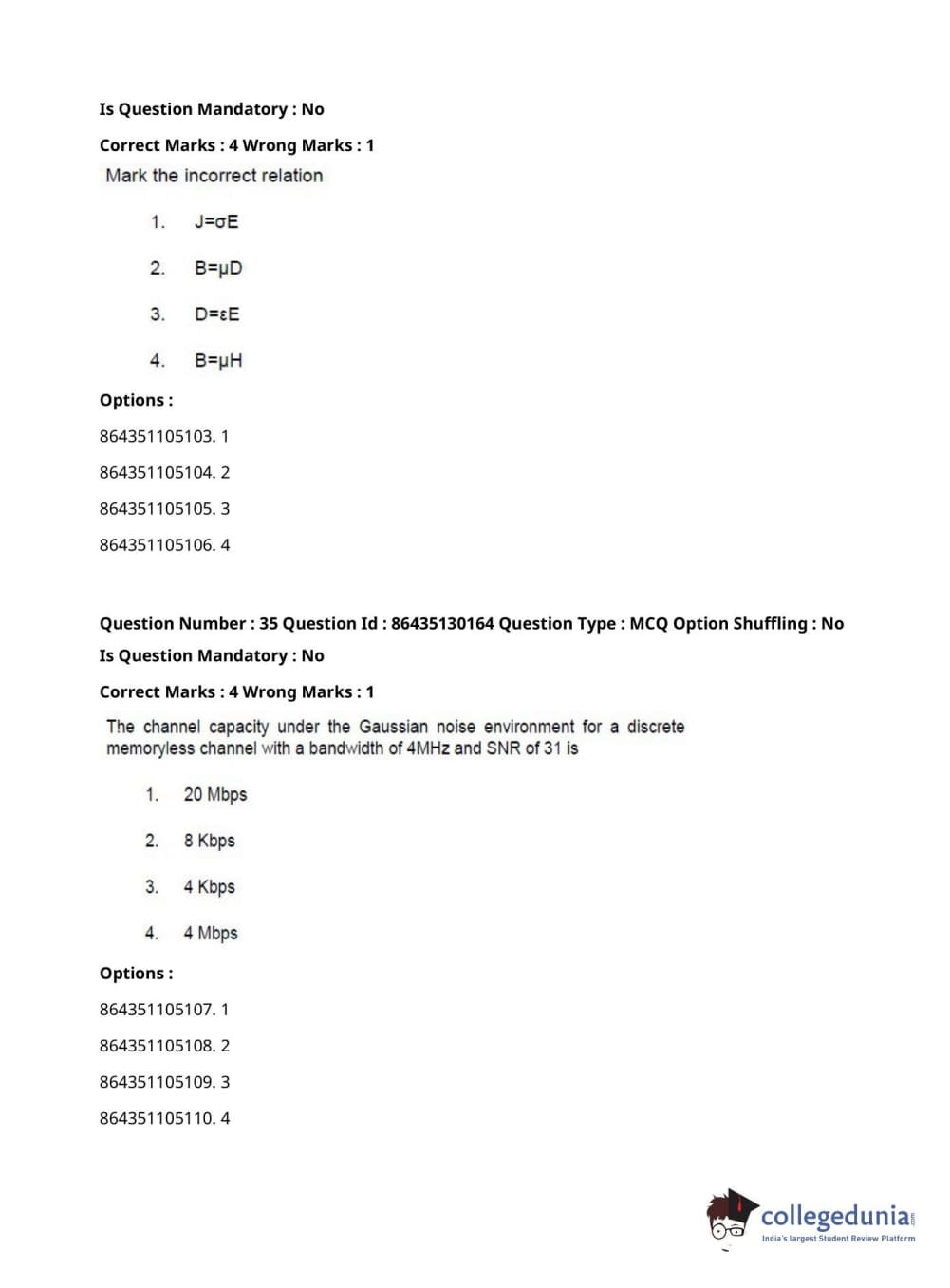 CUCET 2021 PGQP52 Question Paper with Answer Key PDF for Afternoon Session