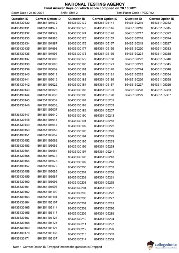 | CUCET 2021 PGQP52 Question Paper PDF | CUCET 2021 PGQP52 Answer Key PDF |