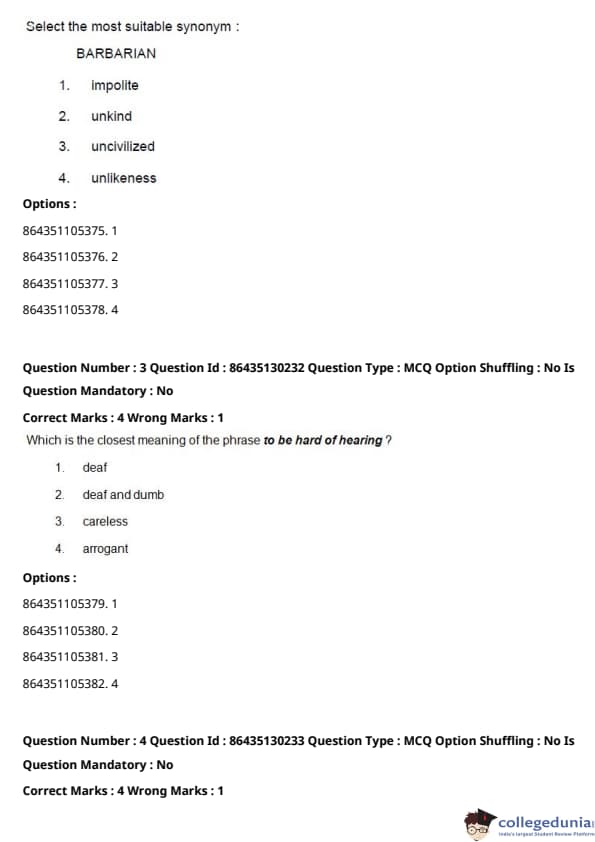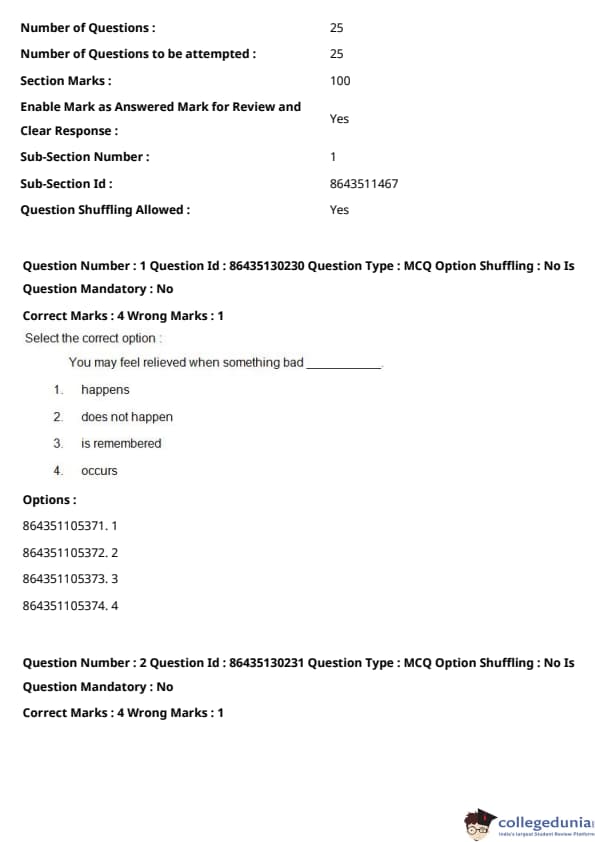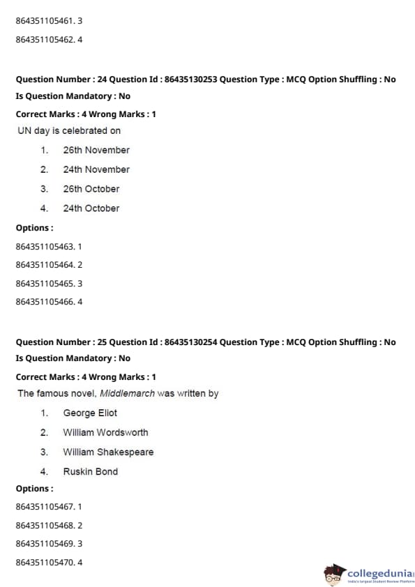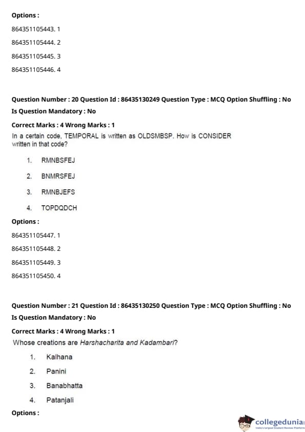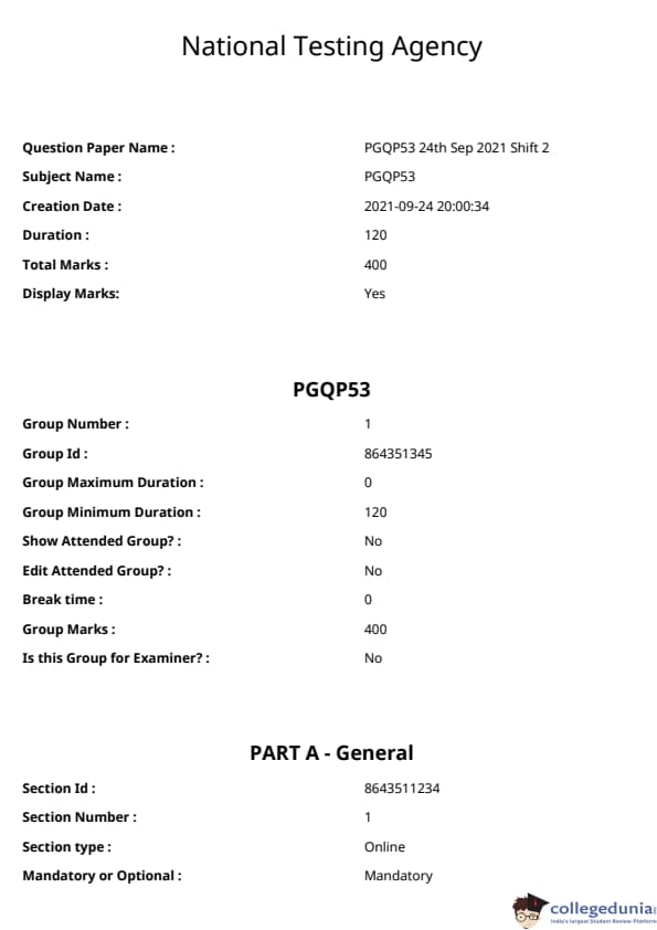 CUCET 2021 PGQP53 Question paper with answer key pdf conducted on September 24, 2021 in Afternoon Session (3 PM to 5 PM) is available for download. The exam was successfully organized by National Testing Agency (NTA). The question paper comprised a total of 100 questions.