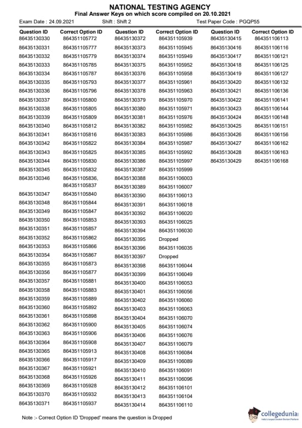 | CUCET 2021 PGQP55 Question Paper PDF | CUCET 2021 PGQP55 Answer Key PDF |