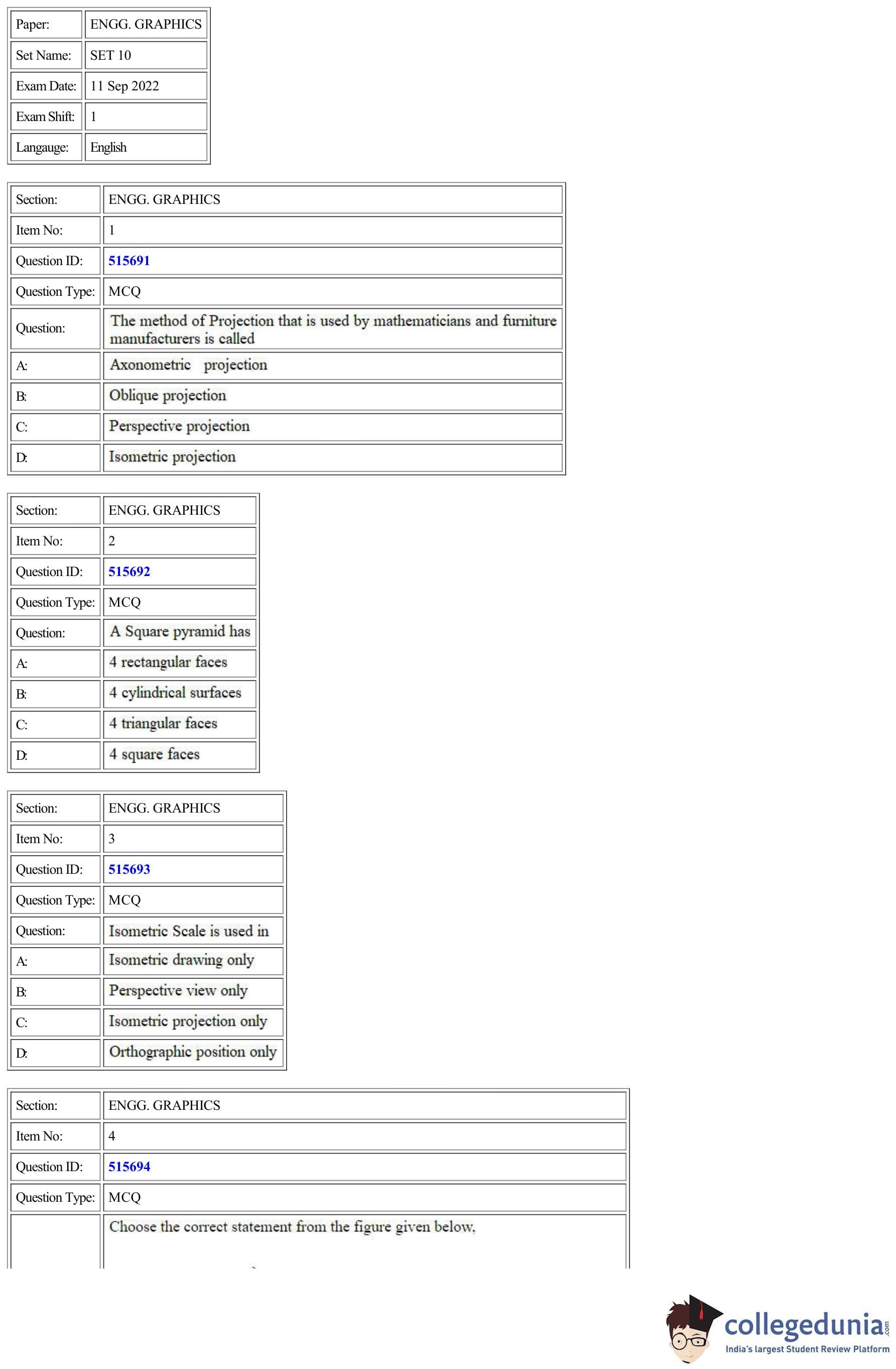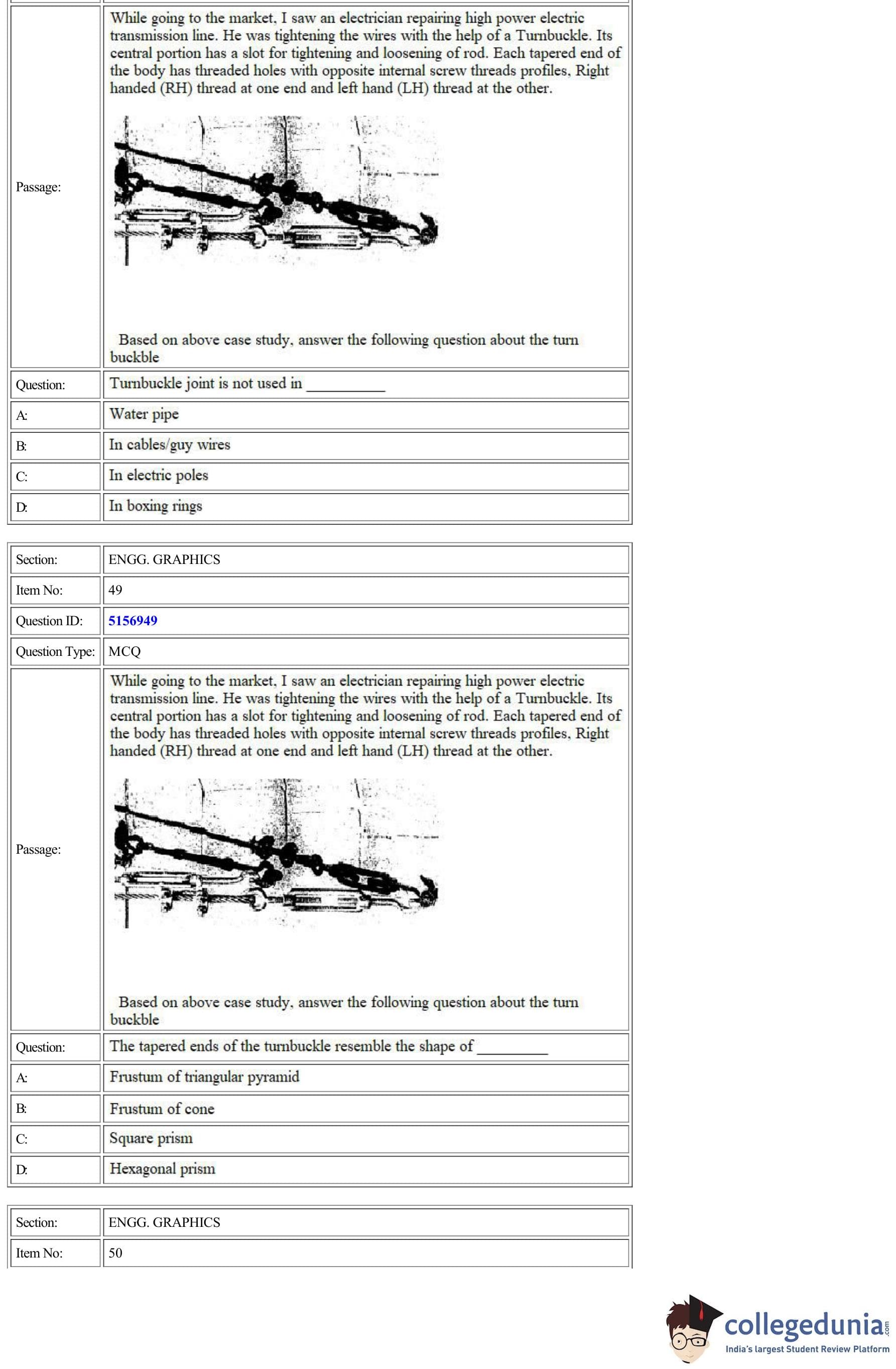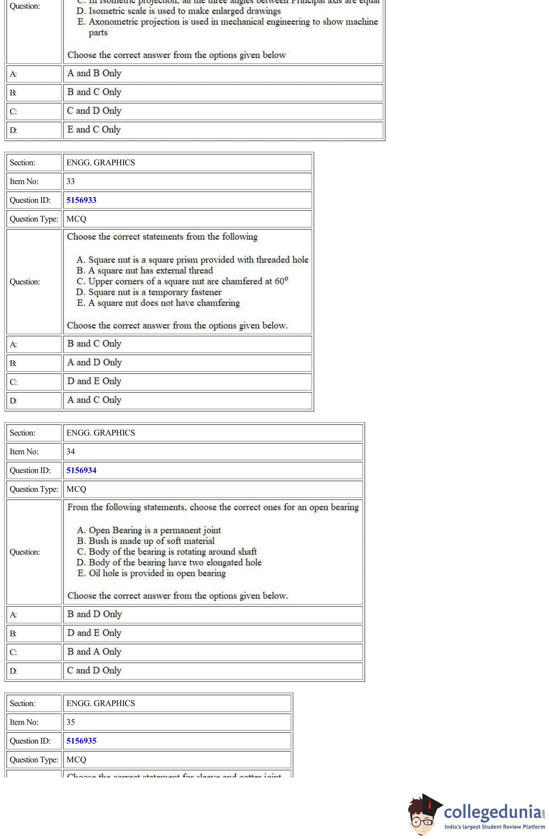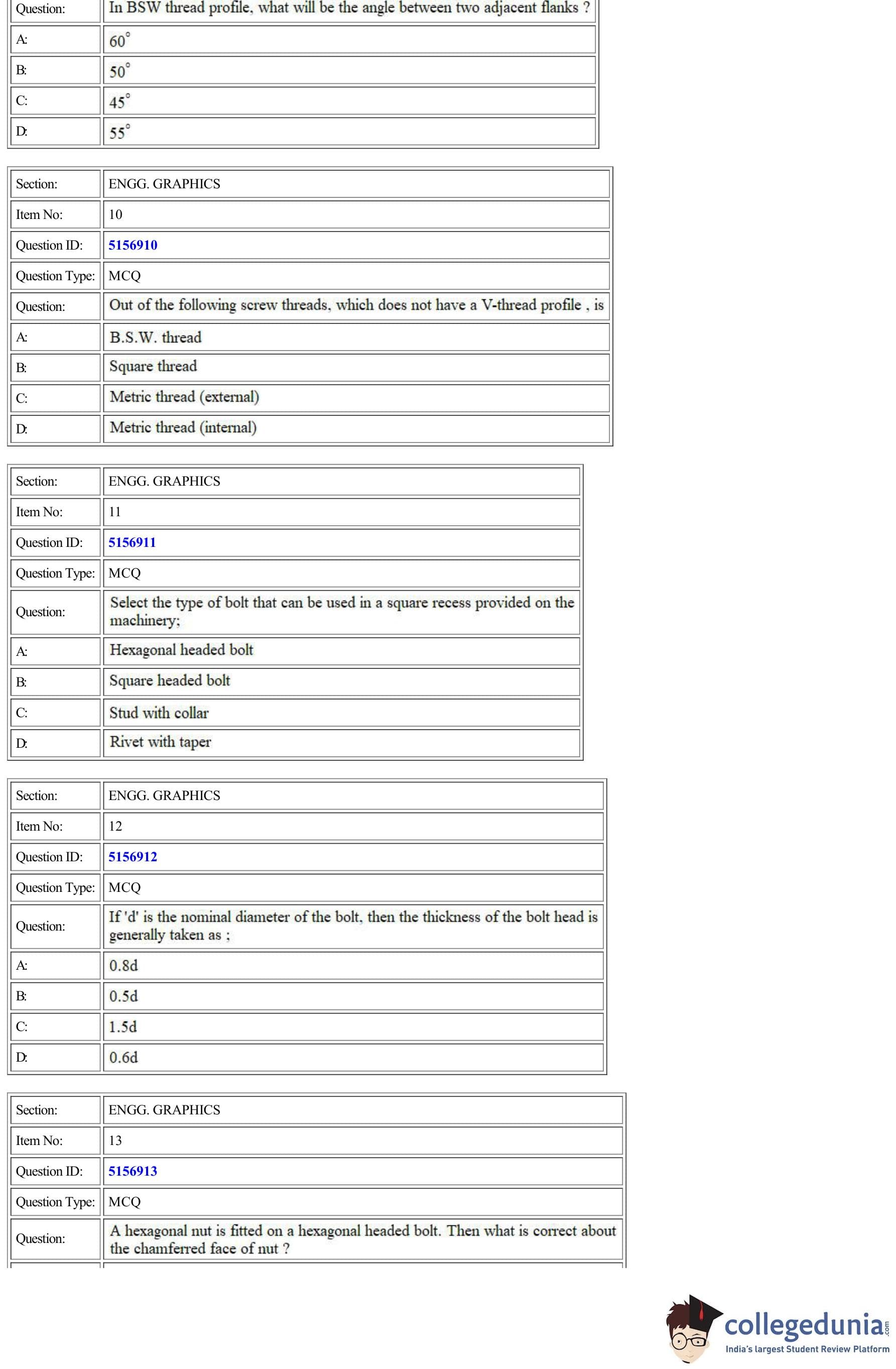 CUET Engg. Graphics Question Paper 2022 is available for download. CUET 2022 Engg. Graphics paper was conducted by National Testing Agency (NTA) on September 11, 2022 in Shift 2. The question paper comprised a total of 50 questions.