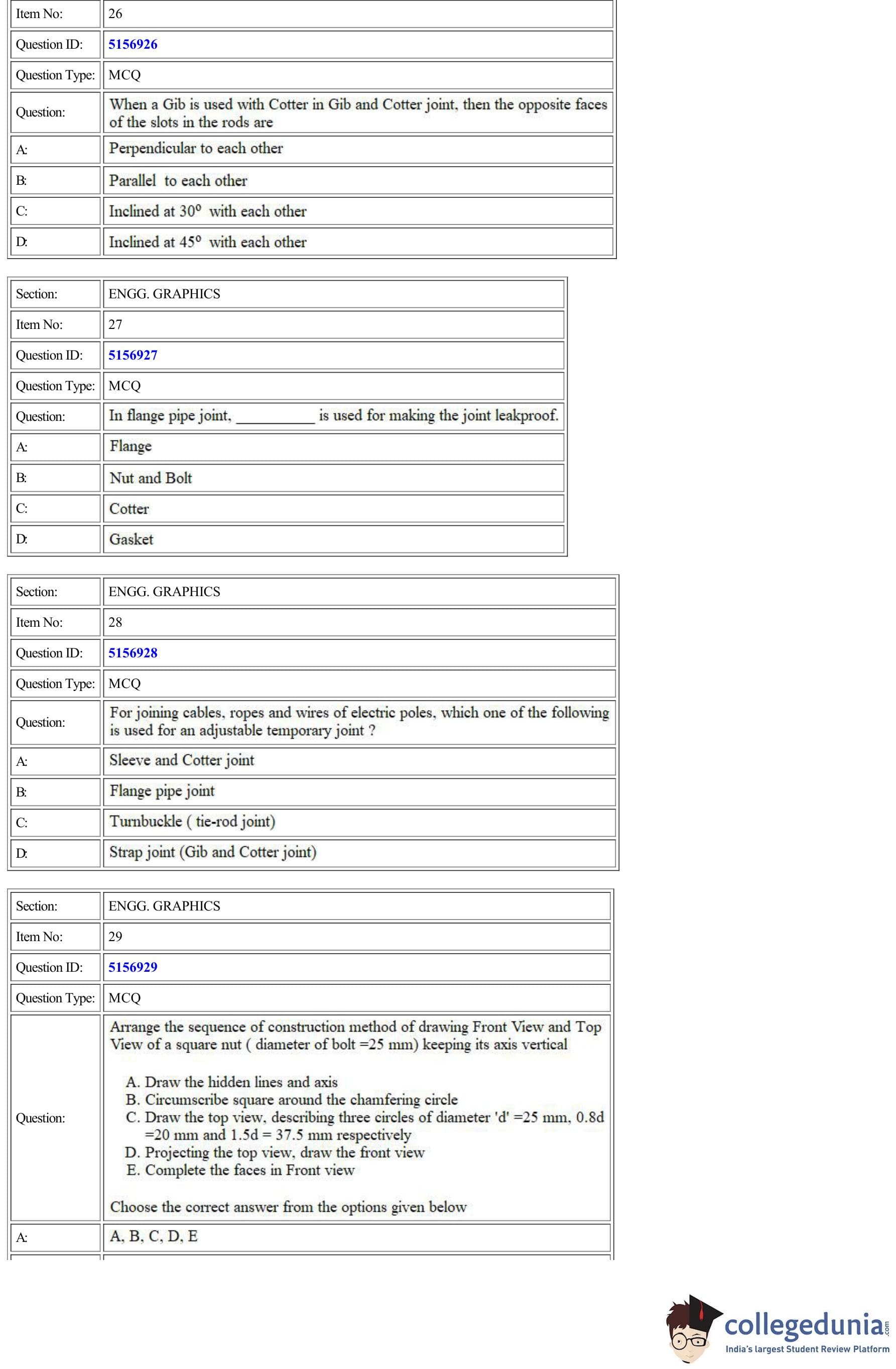 | CUET Engg. Graphics Question Paper PDF | CUET Engg. Graphics Answer Key PDF |