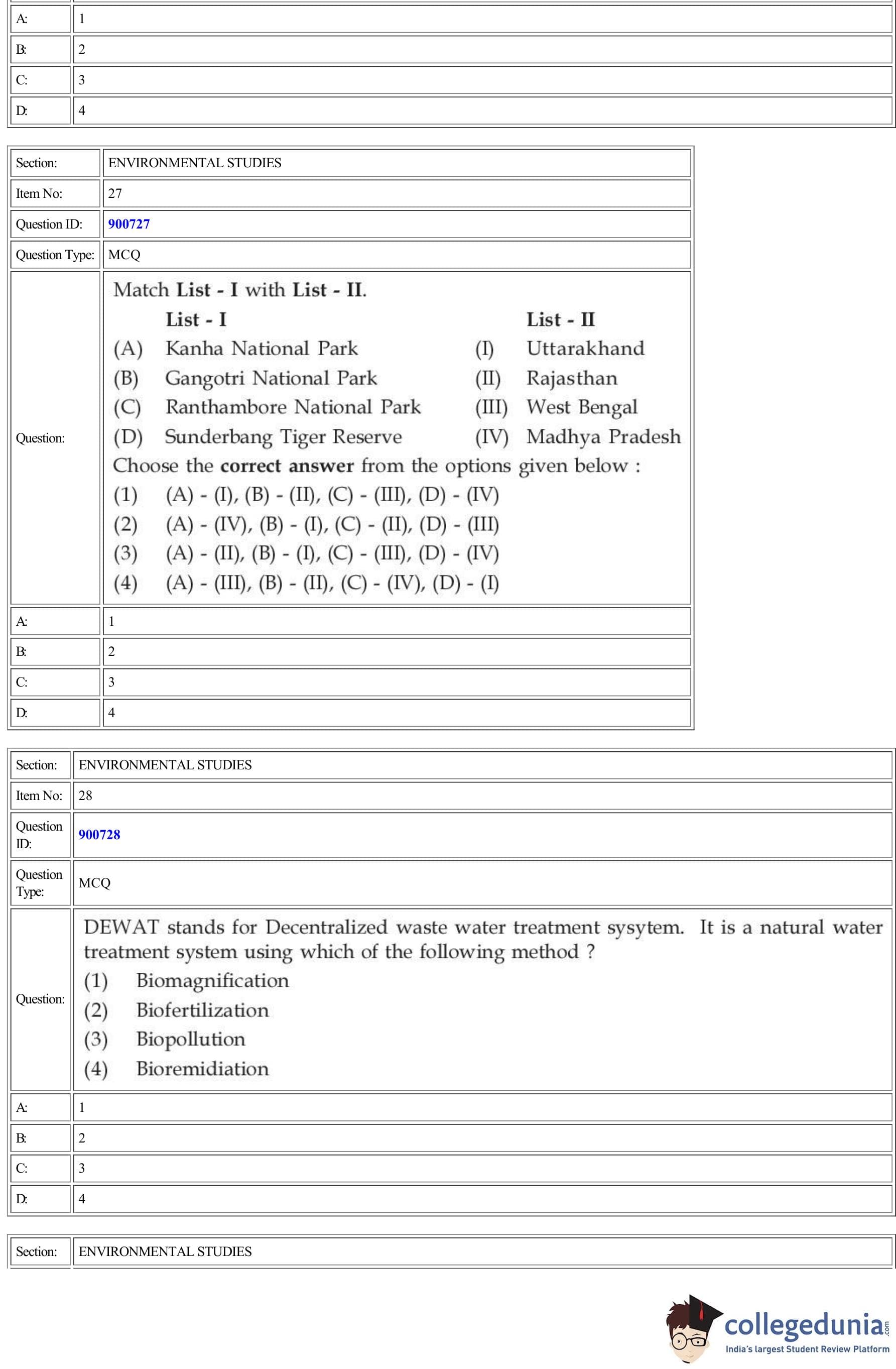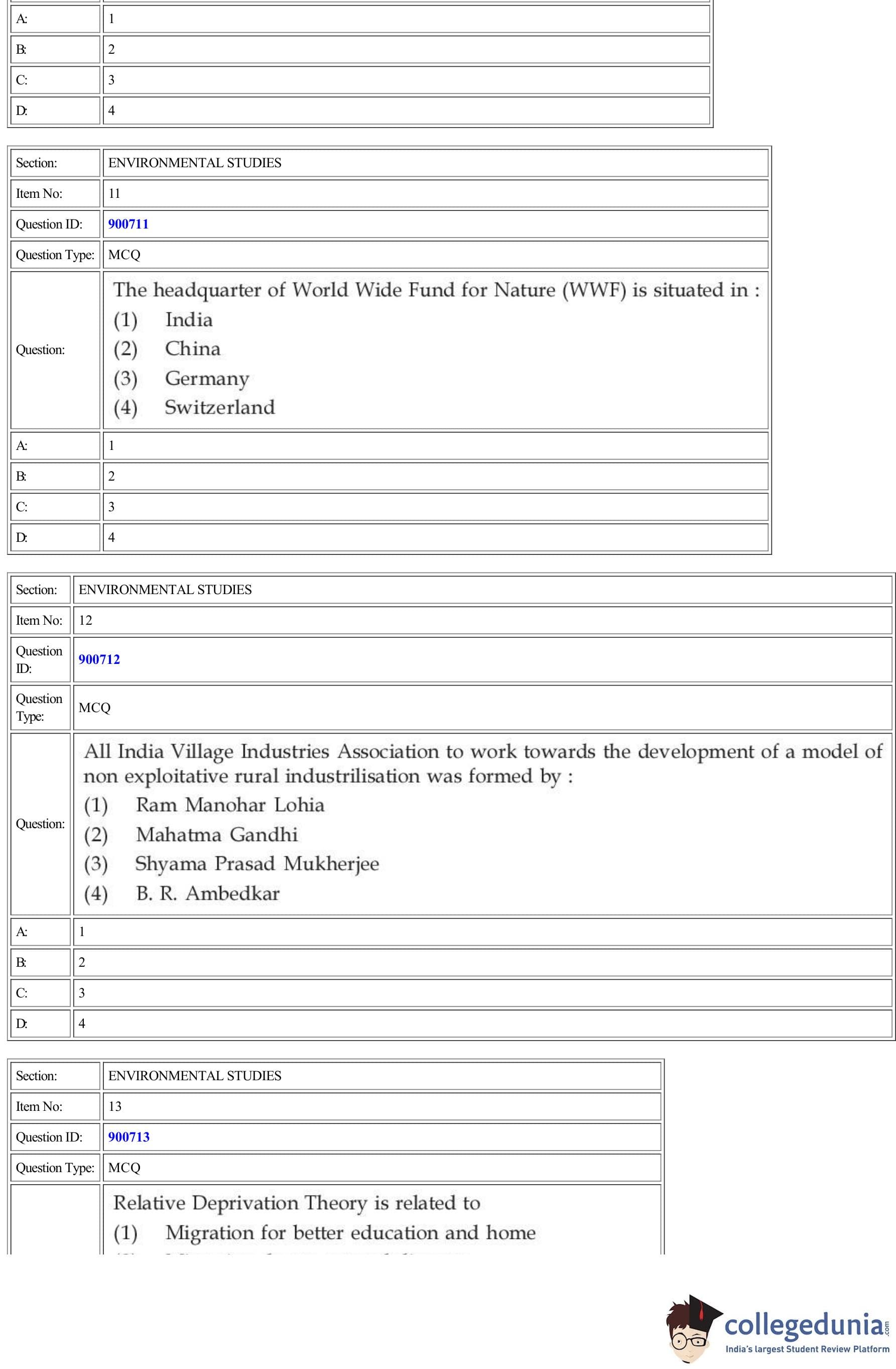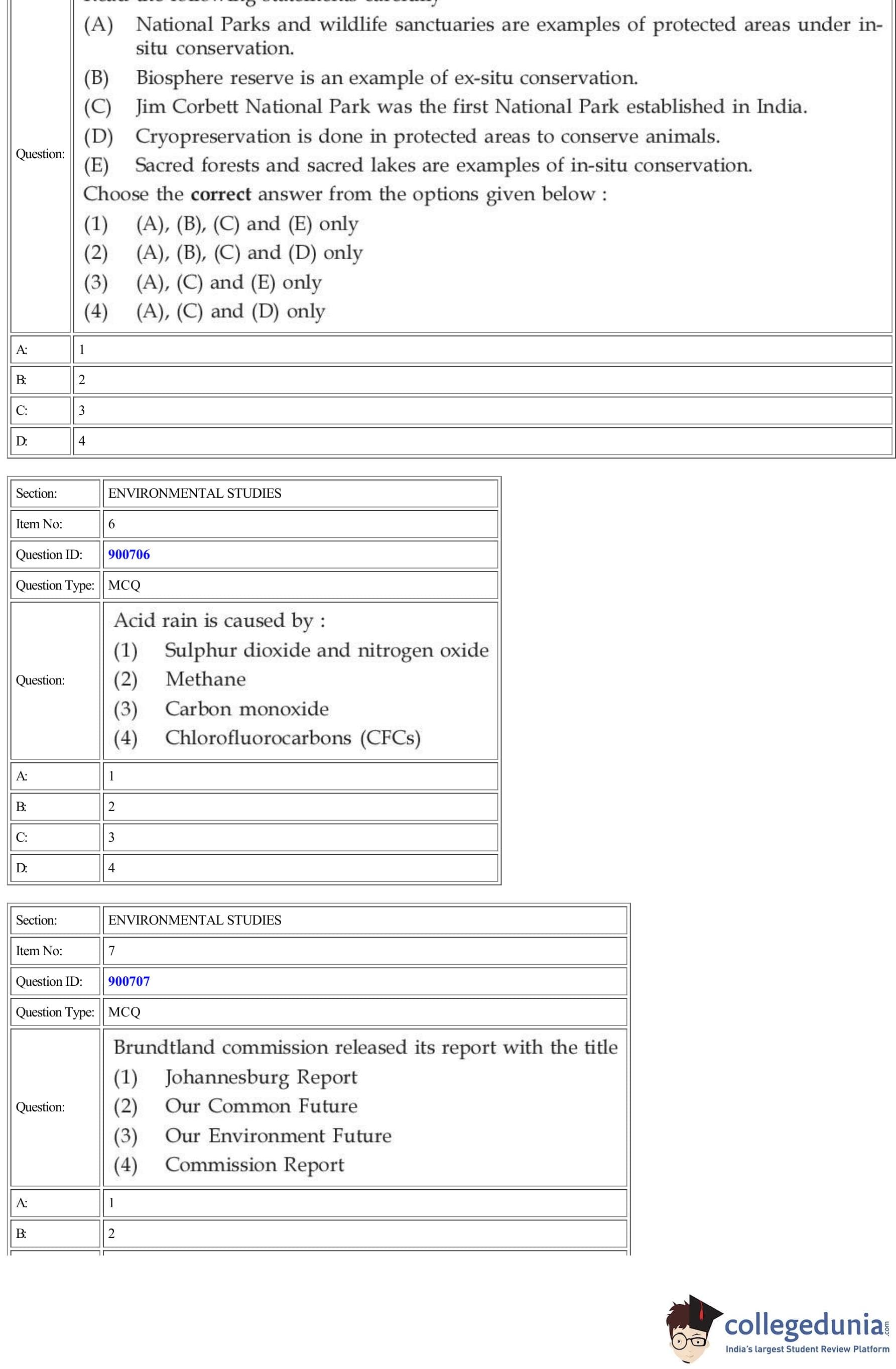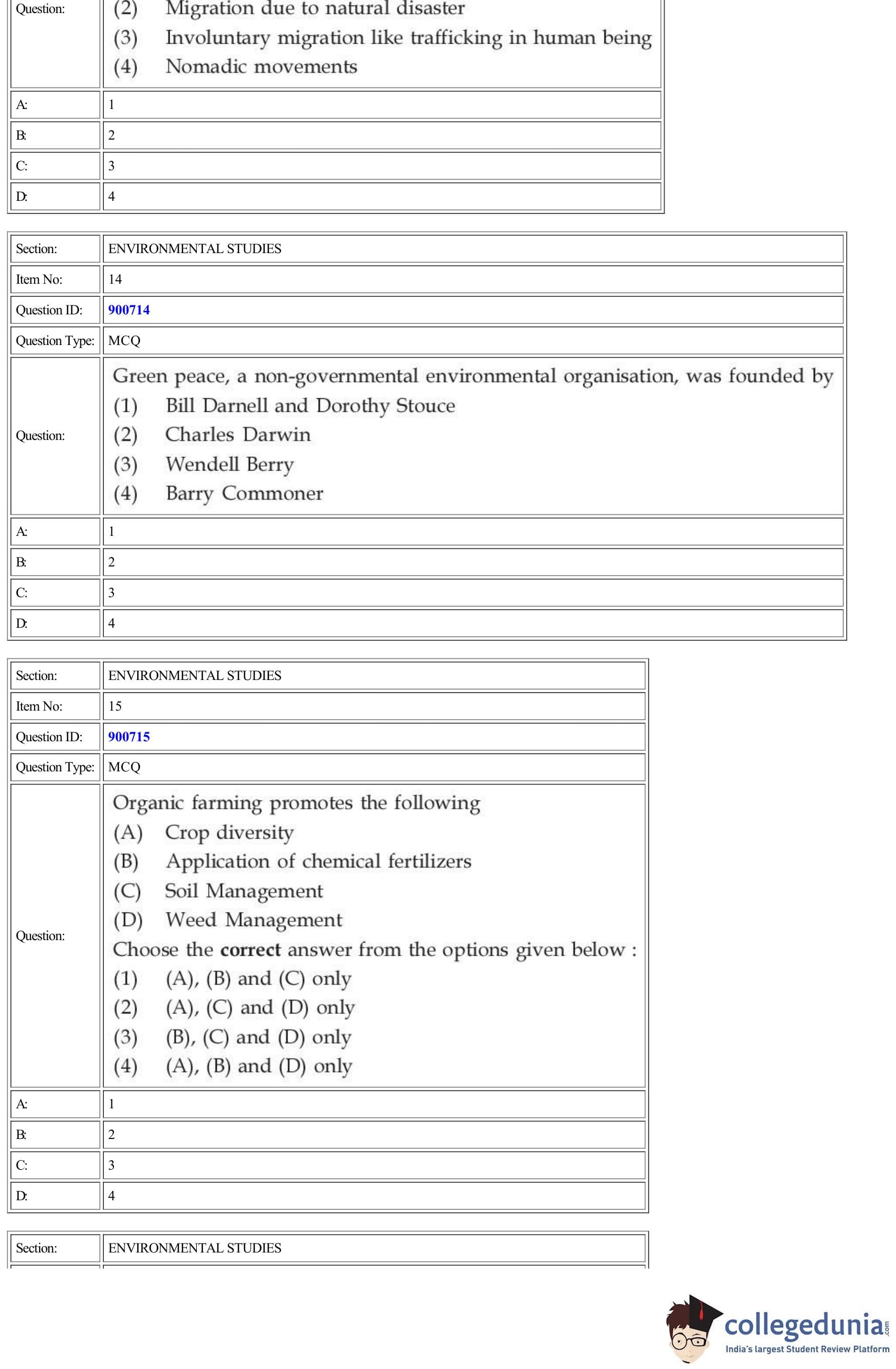 | CUET Environmental Studies Question Paper PDF | CUET Environmental Studies Answer Key PDF |