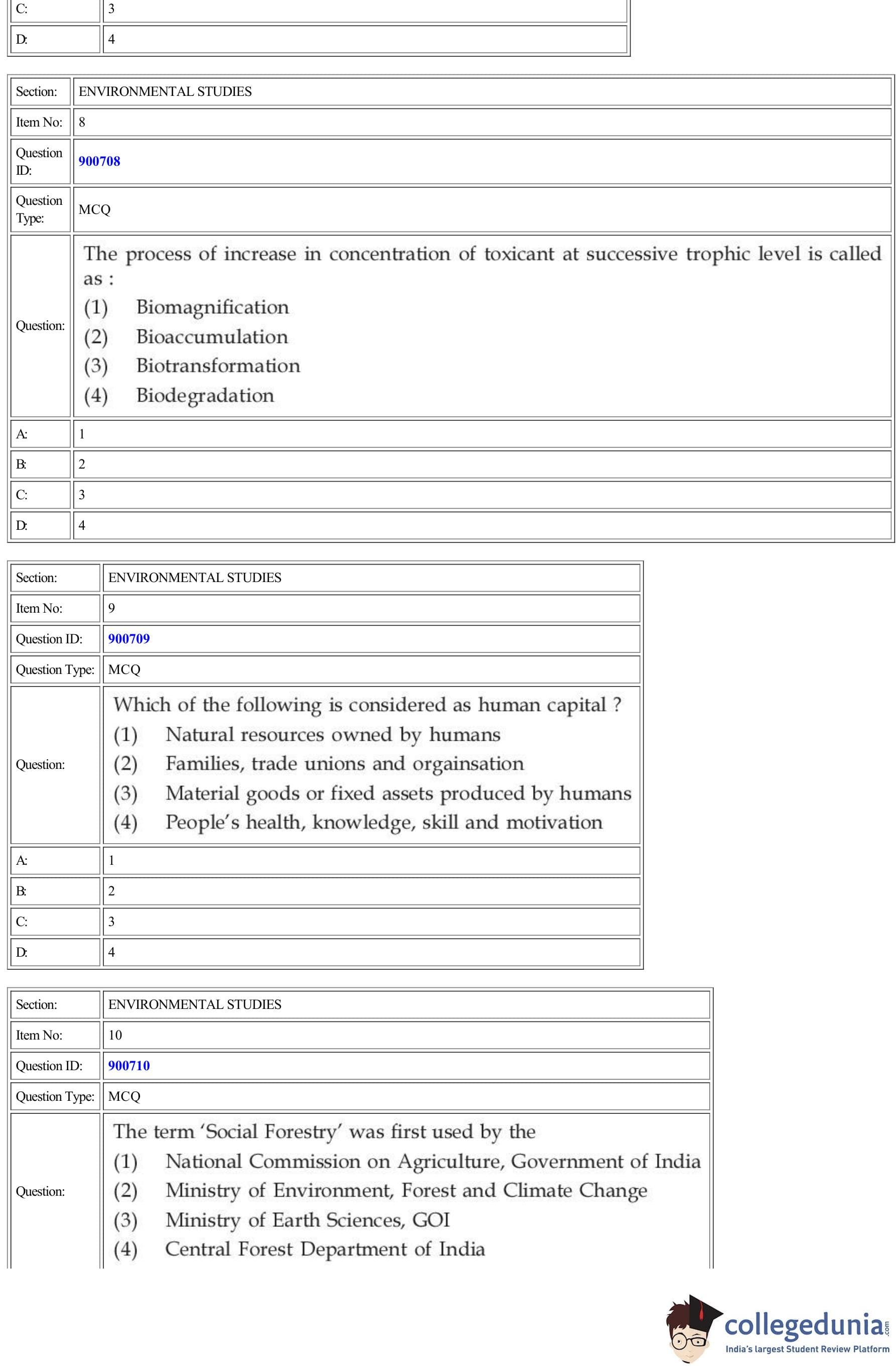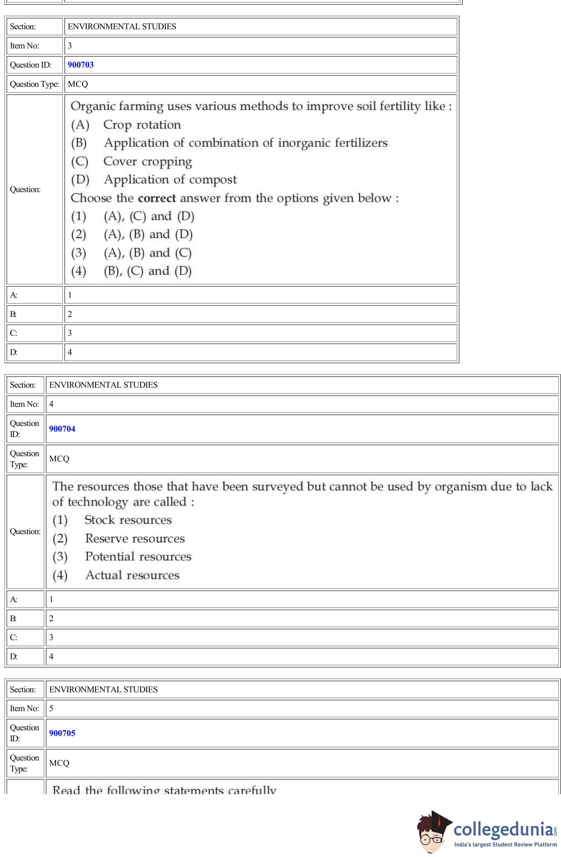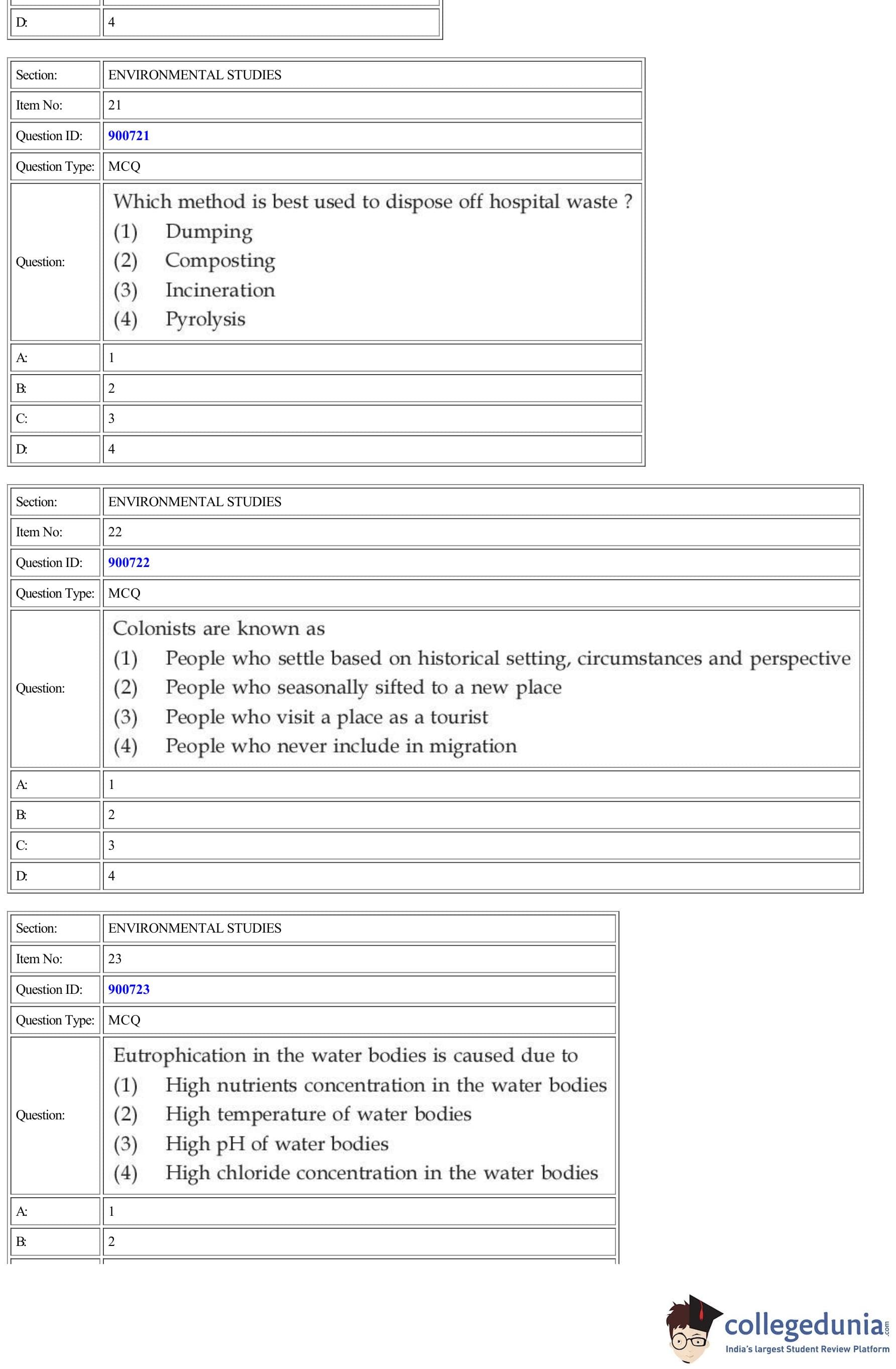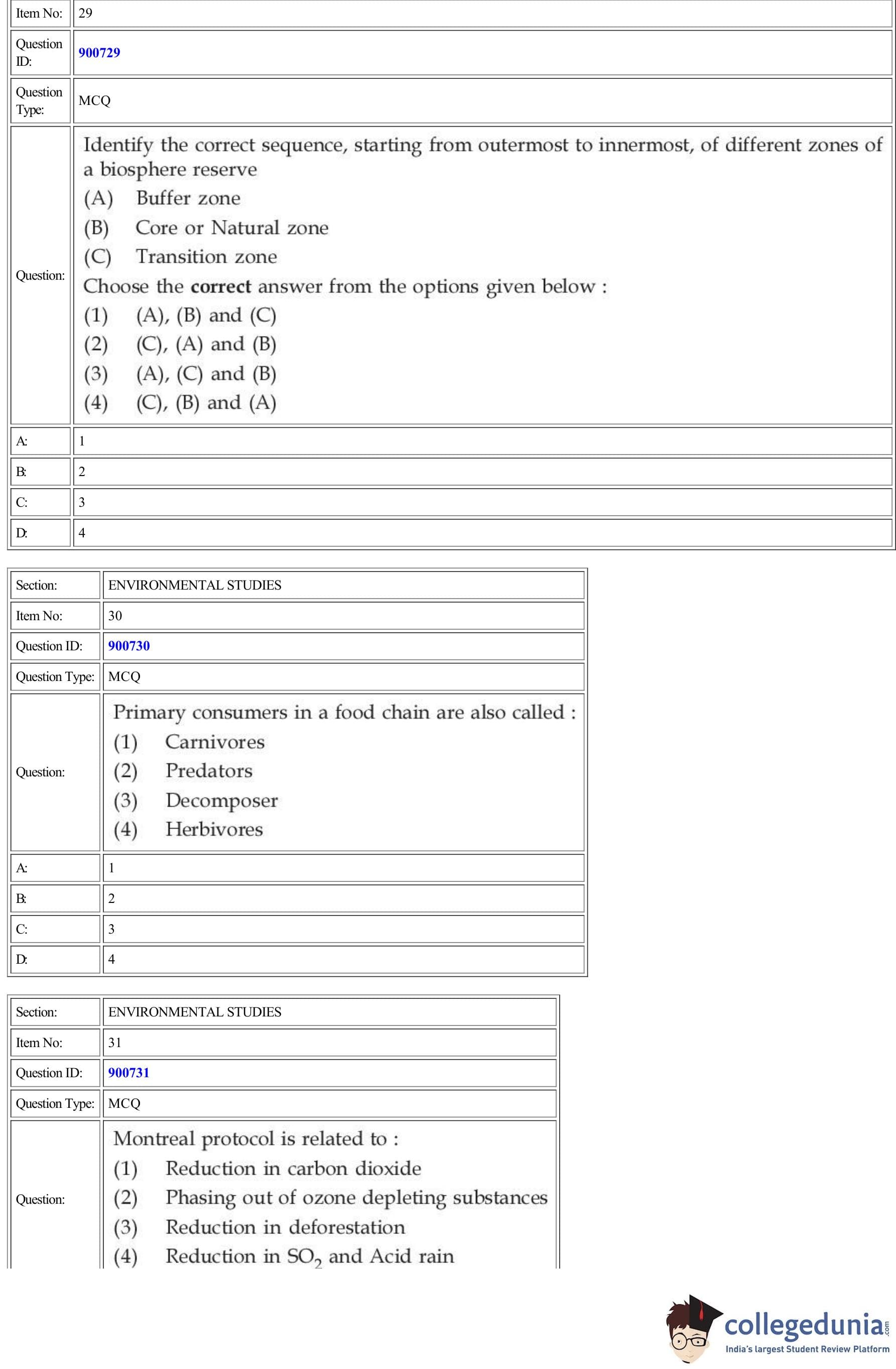 | CUET Environmental Studies Question Paper PDF | CUET Environmental Studies Answer Key PDF |
