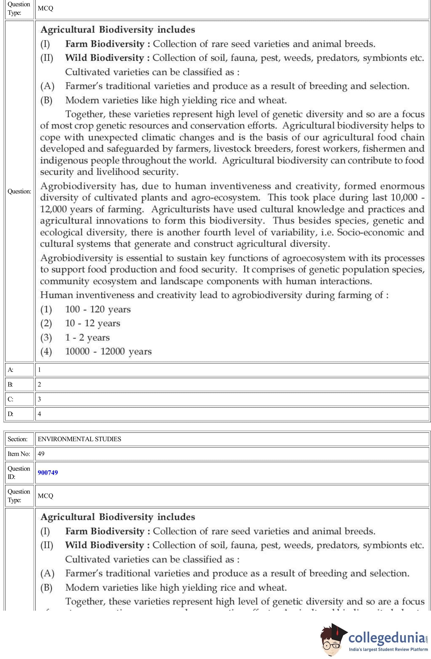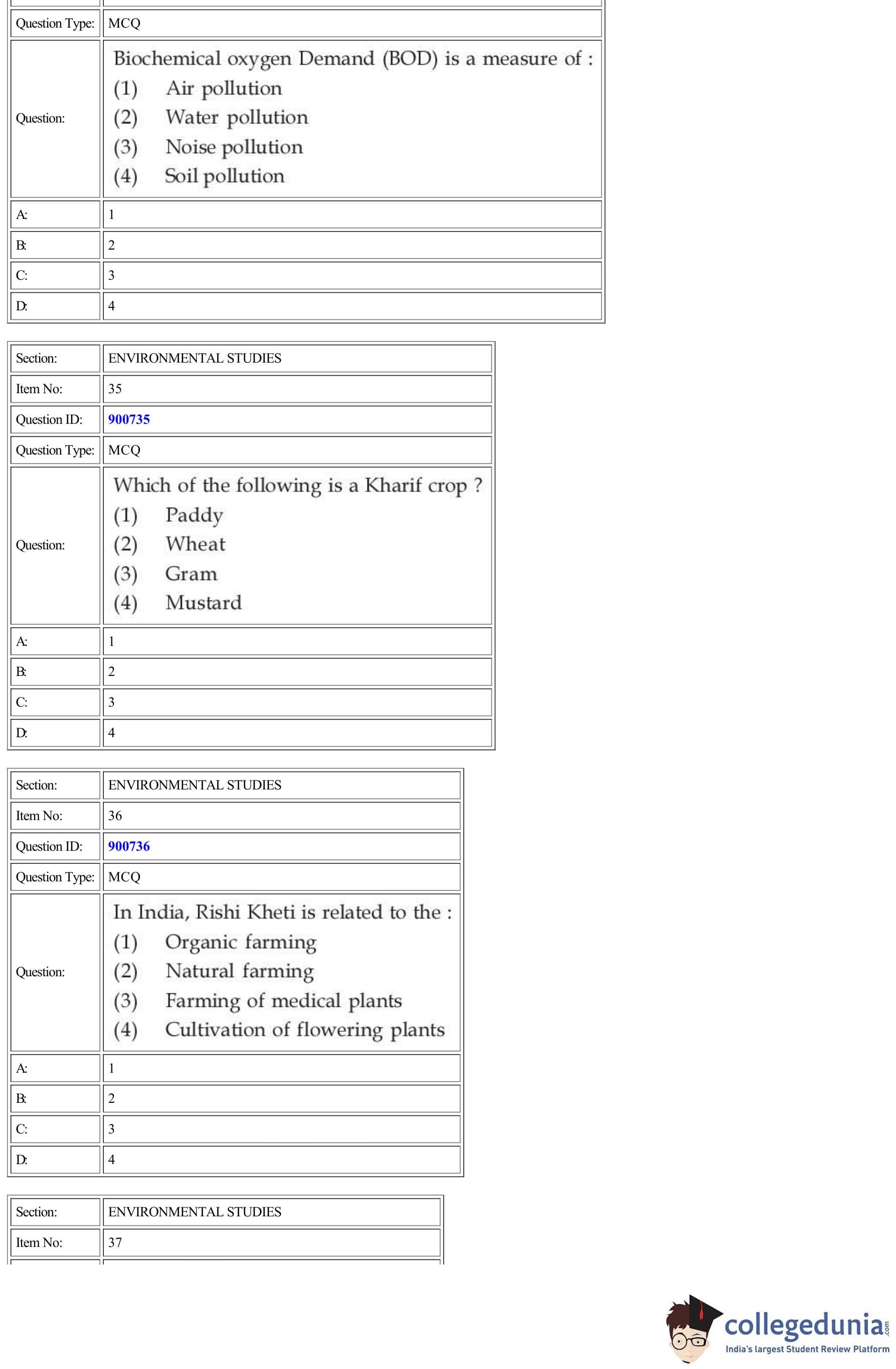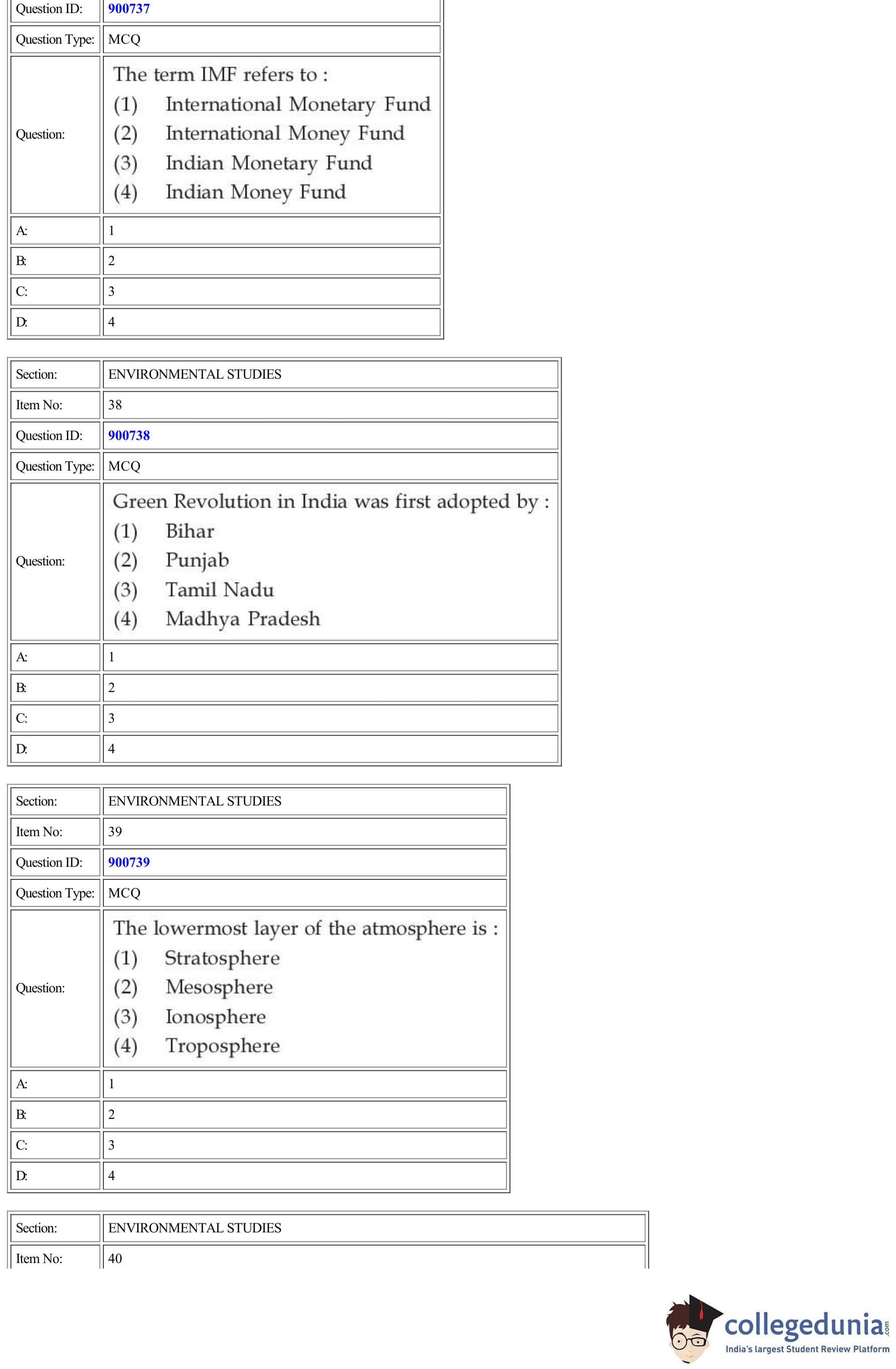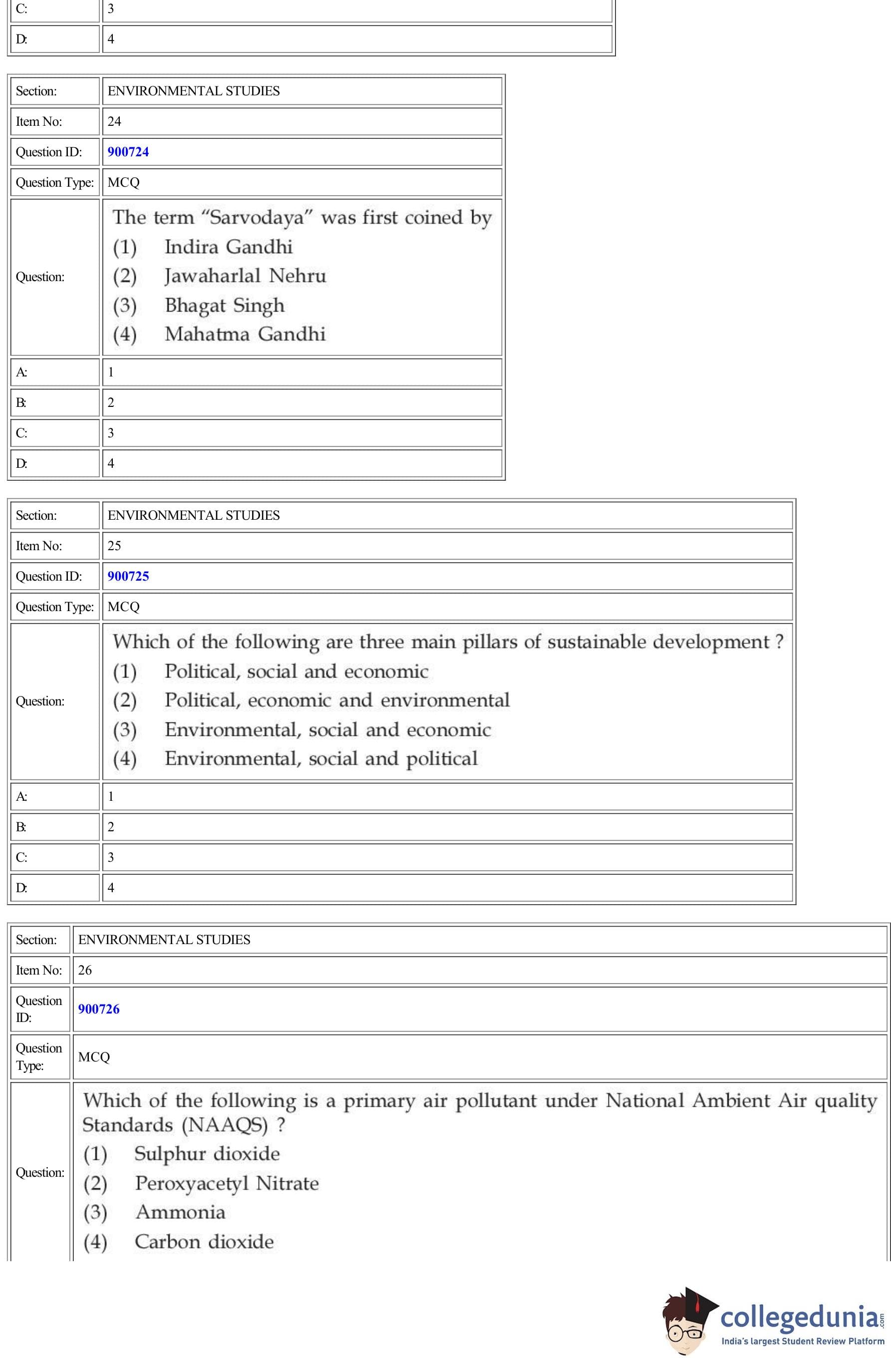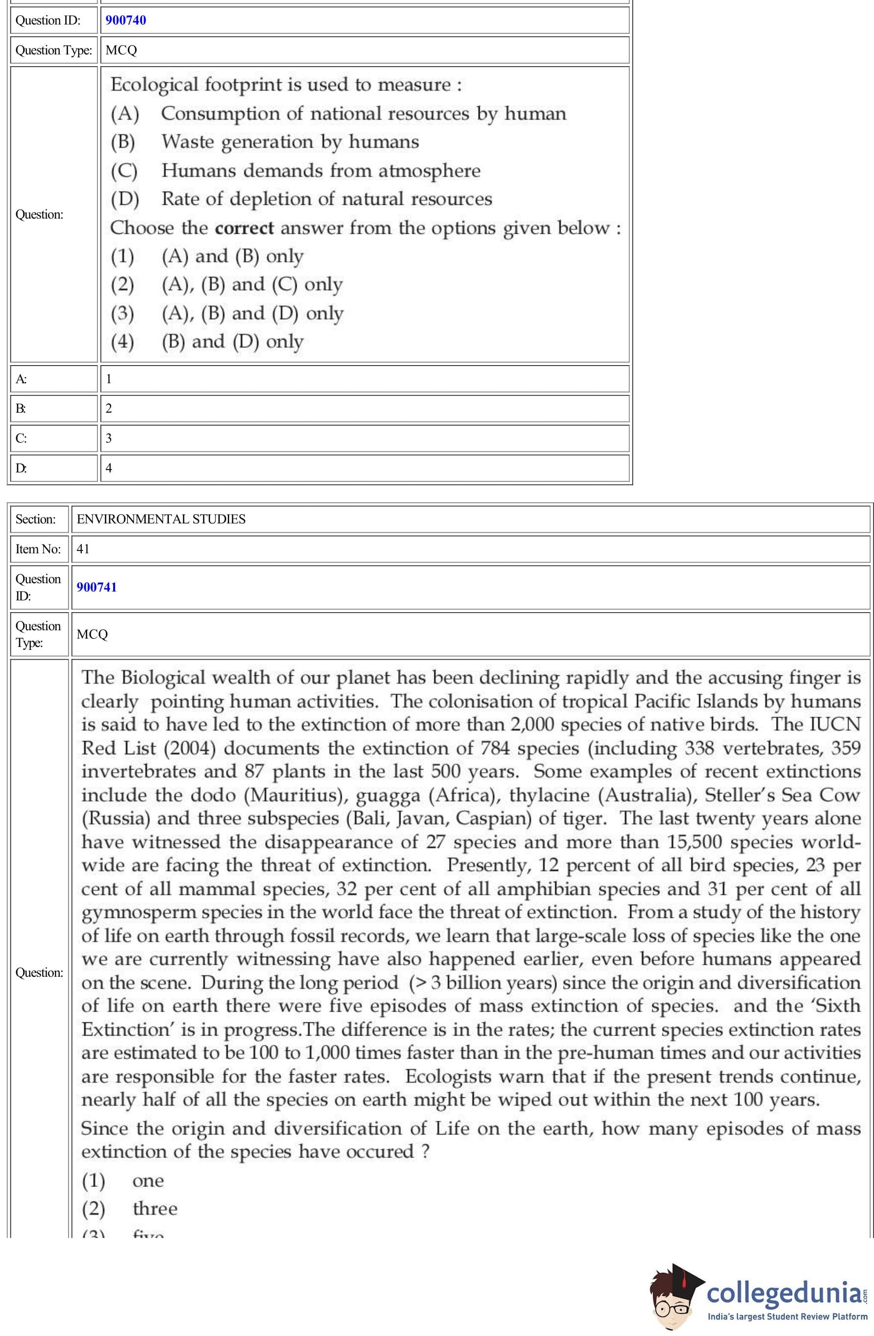 | CUET Environmental Studies Question Paper PDF | CUET Environmental Studies Answer Key PDF |