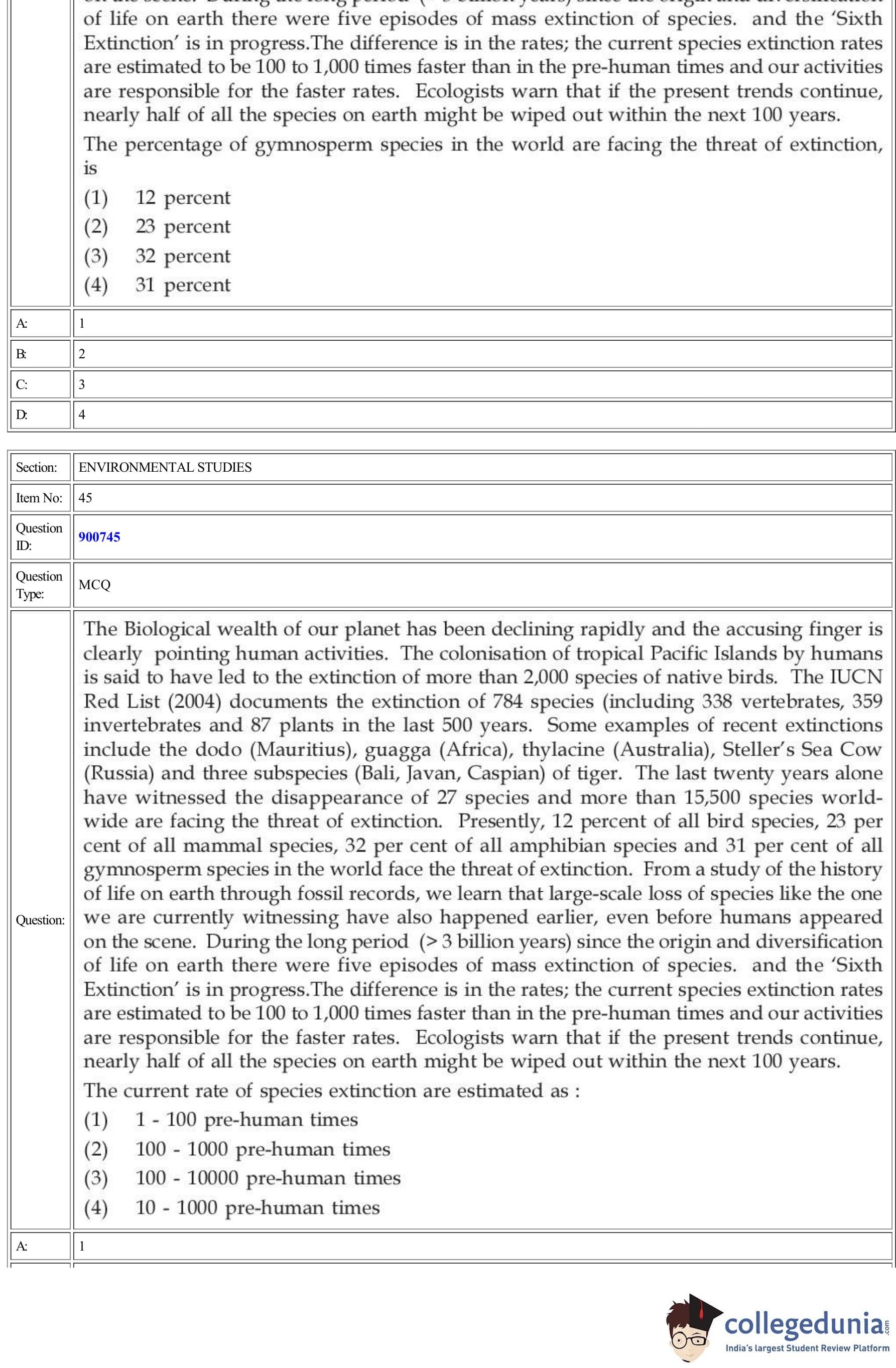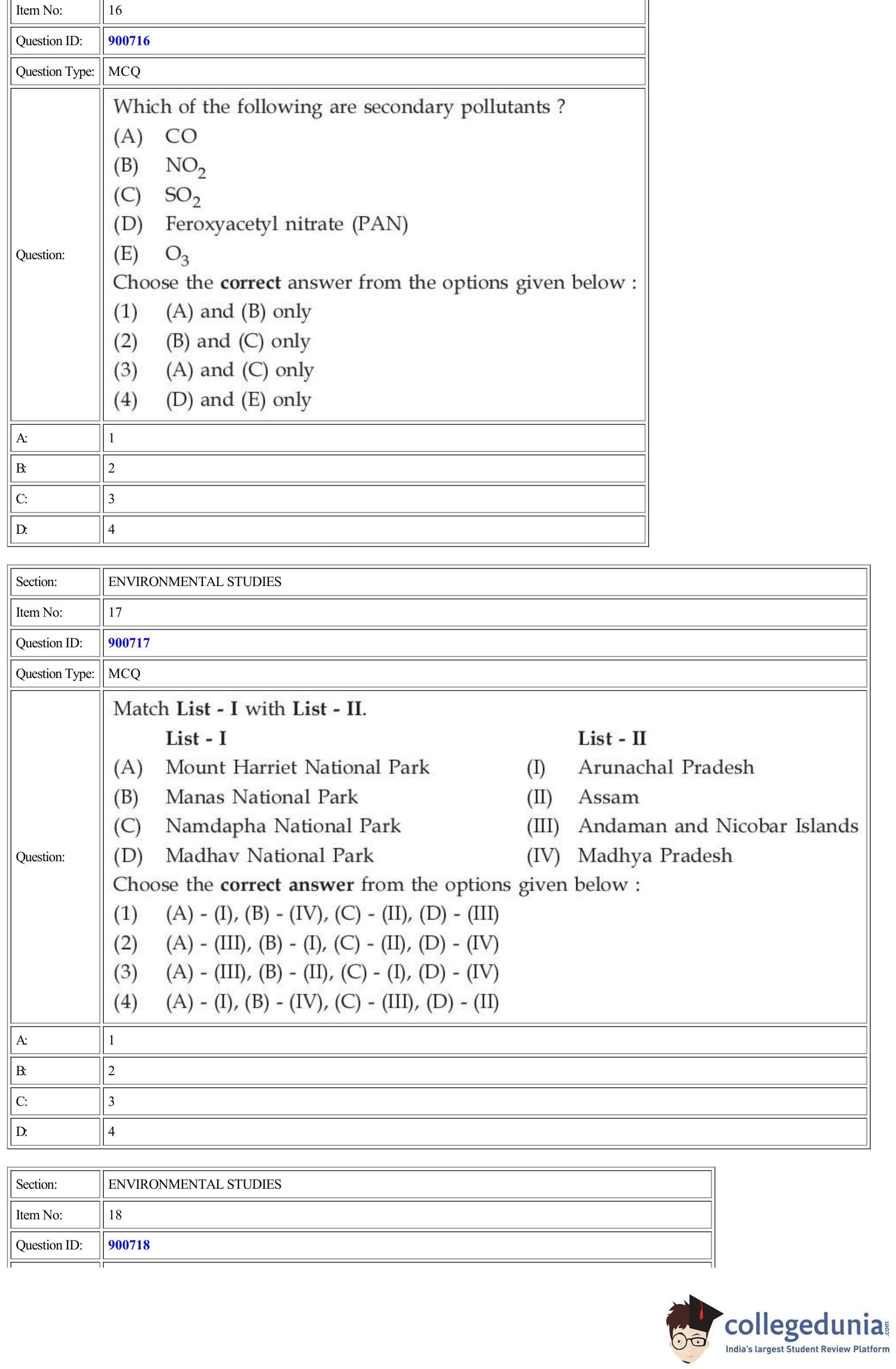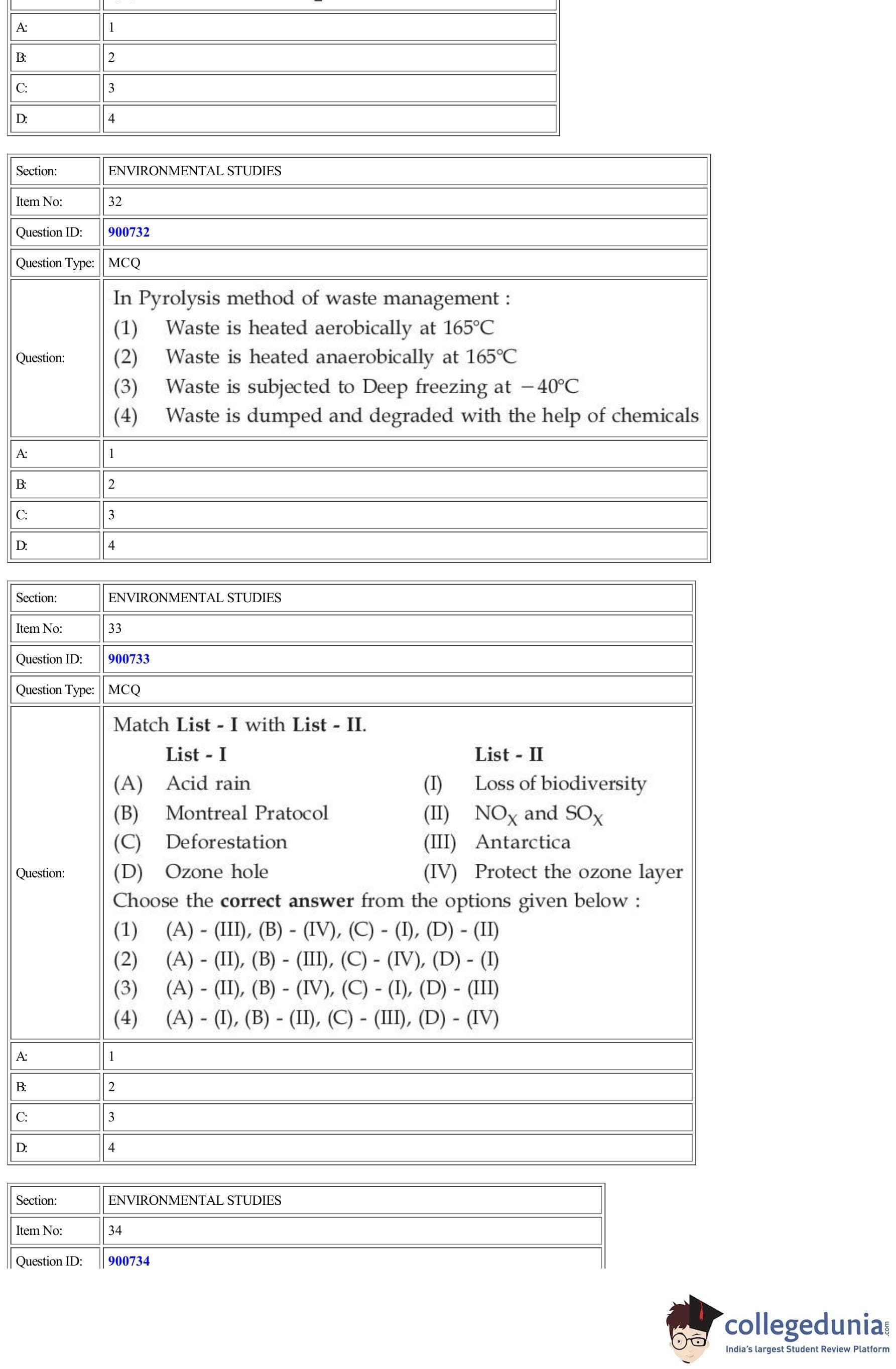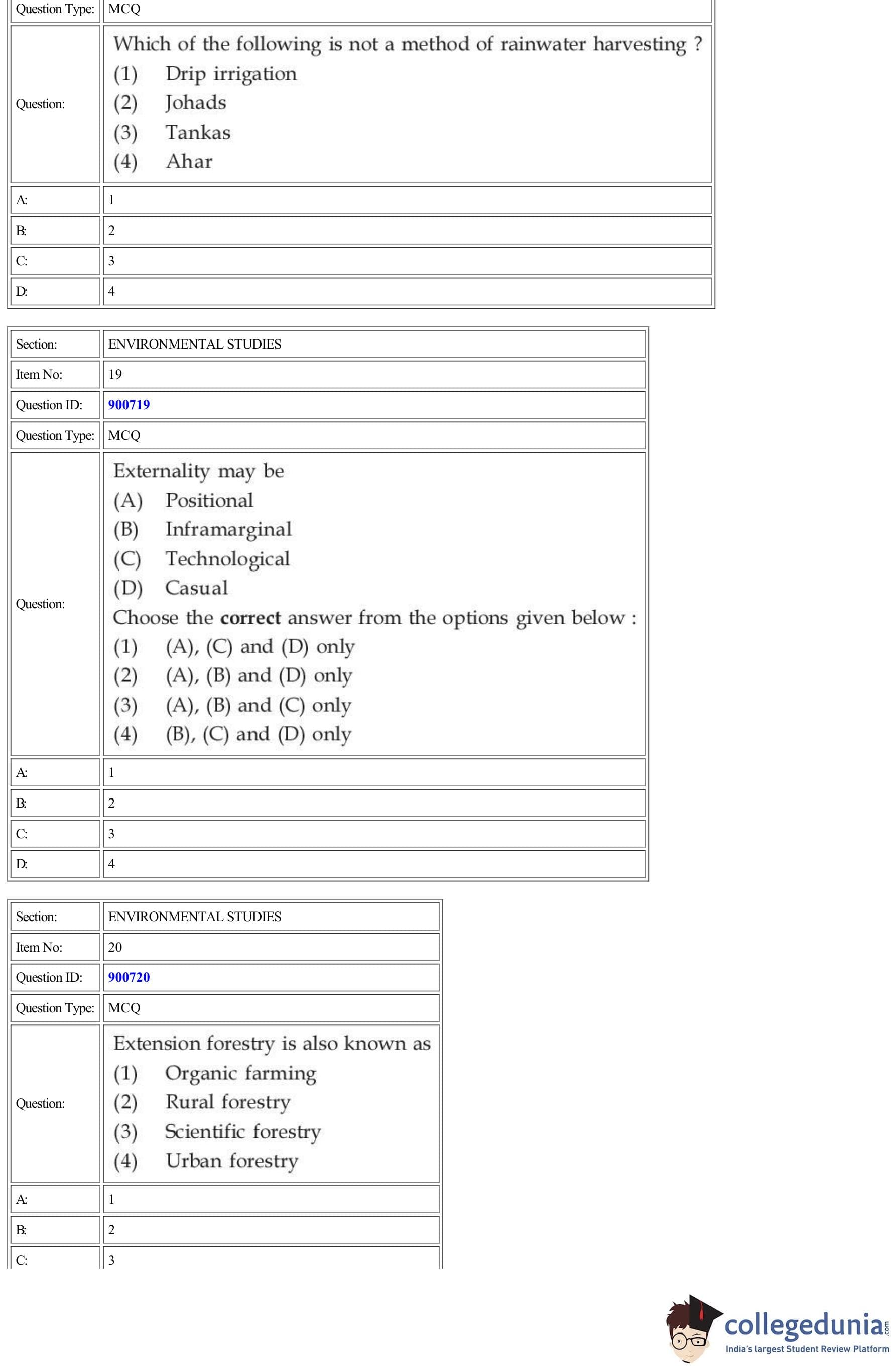 | CUET Environmental Studies Question Paper PDF | CUET Environmental Studies Answer Key PDF |
