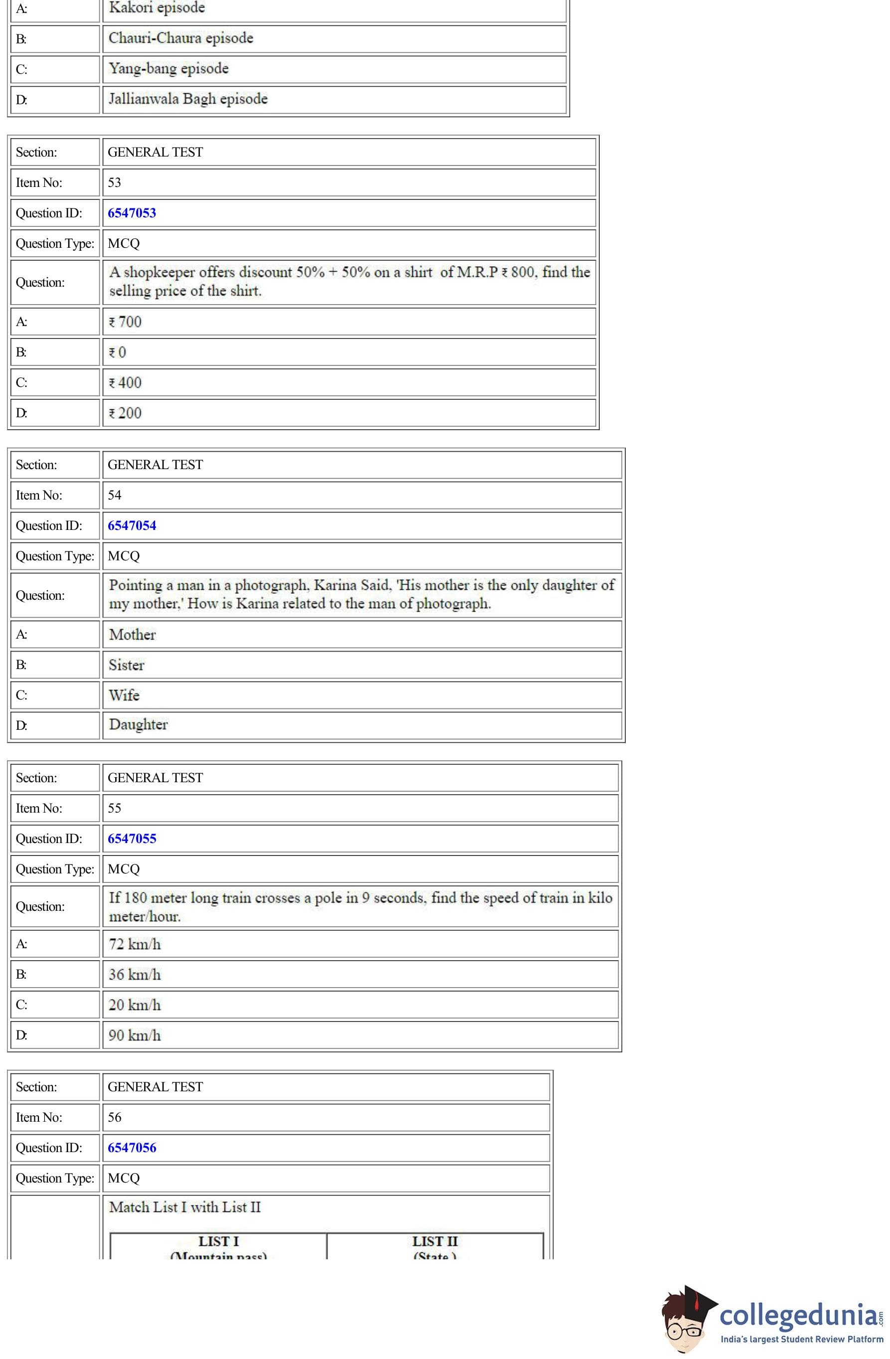 CUET General Test Question Paper 2022 is available for download. CUET 2022 General Test paper was conducted by National Testing Agency (NTA) on August 6, 2022 in Shift 1. The question paper comprised a total of 75 questions.