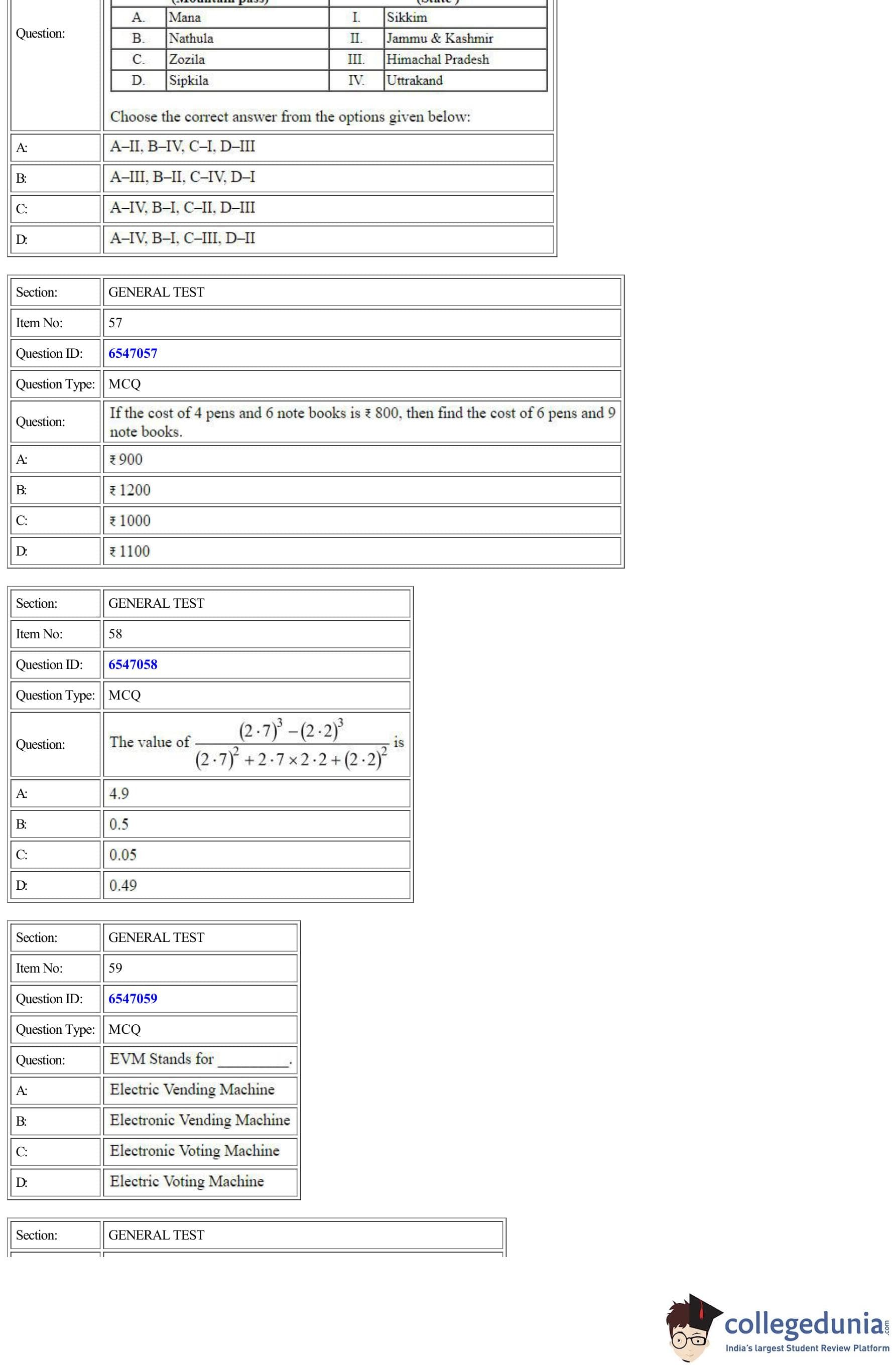 | CUET General Test Question Paper PDF | CUET General Test Answer Key PDF | CUET General Test Solutions PDF |
