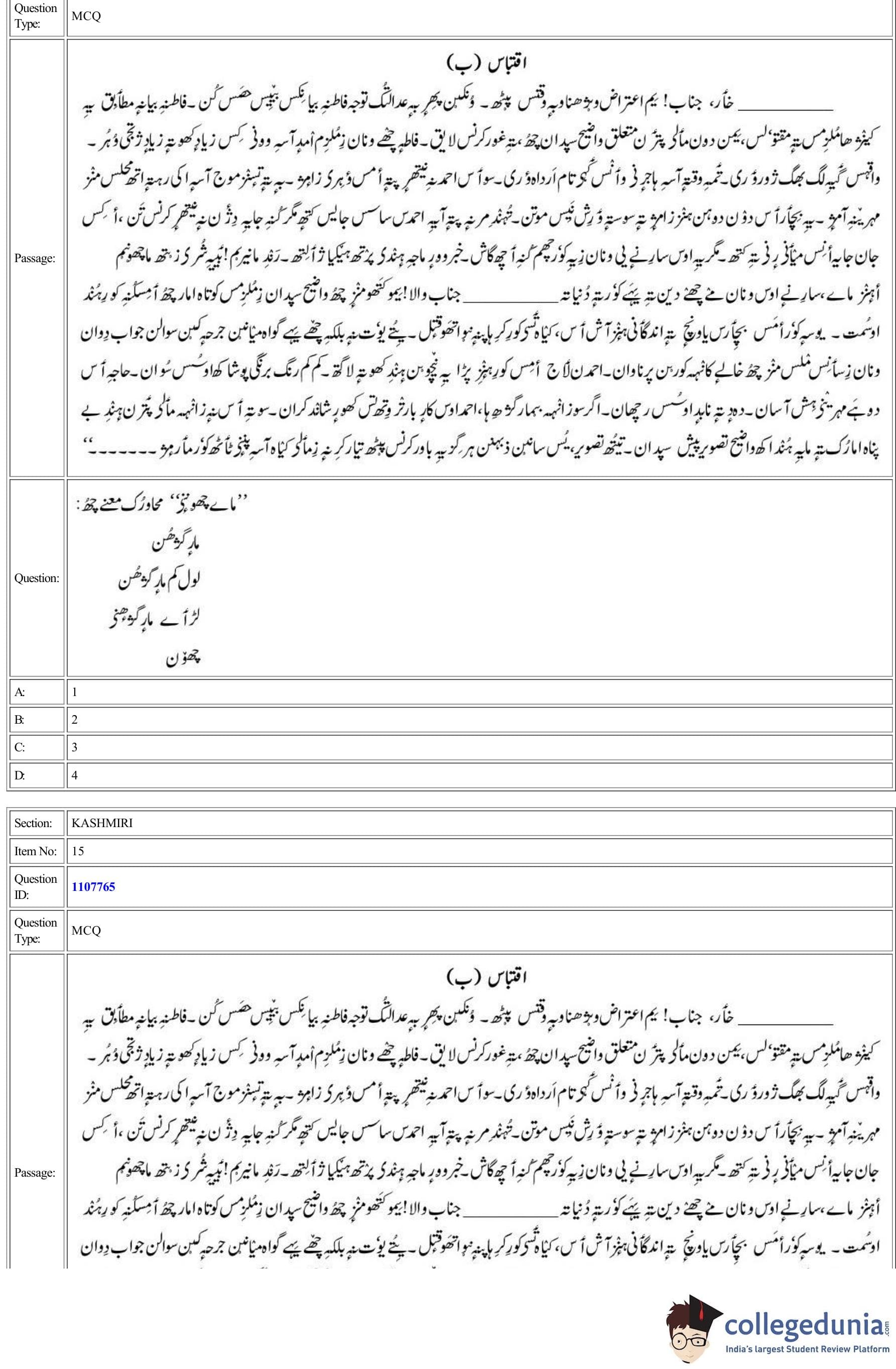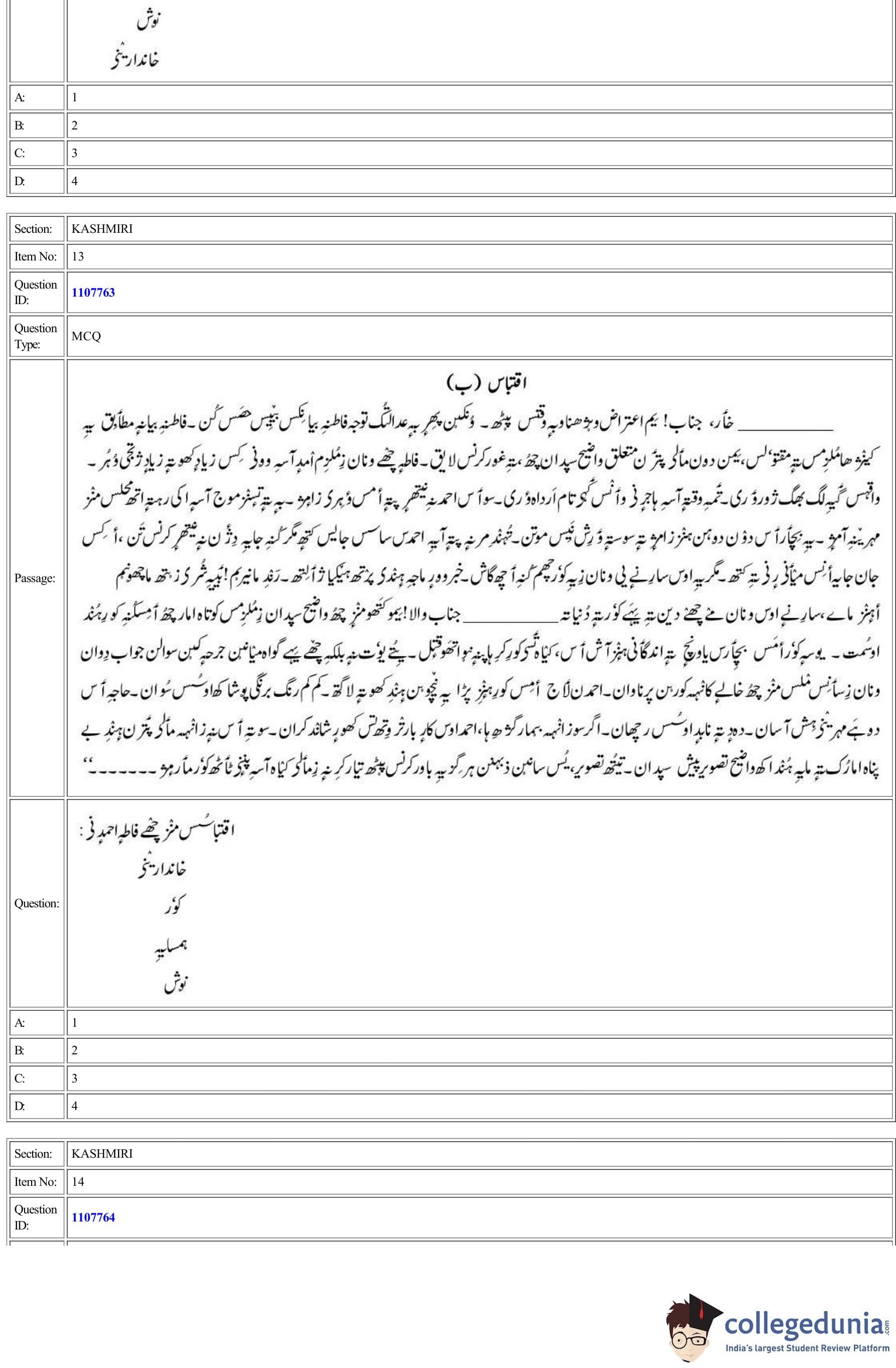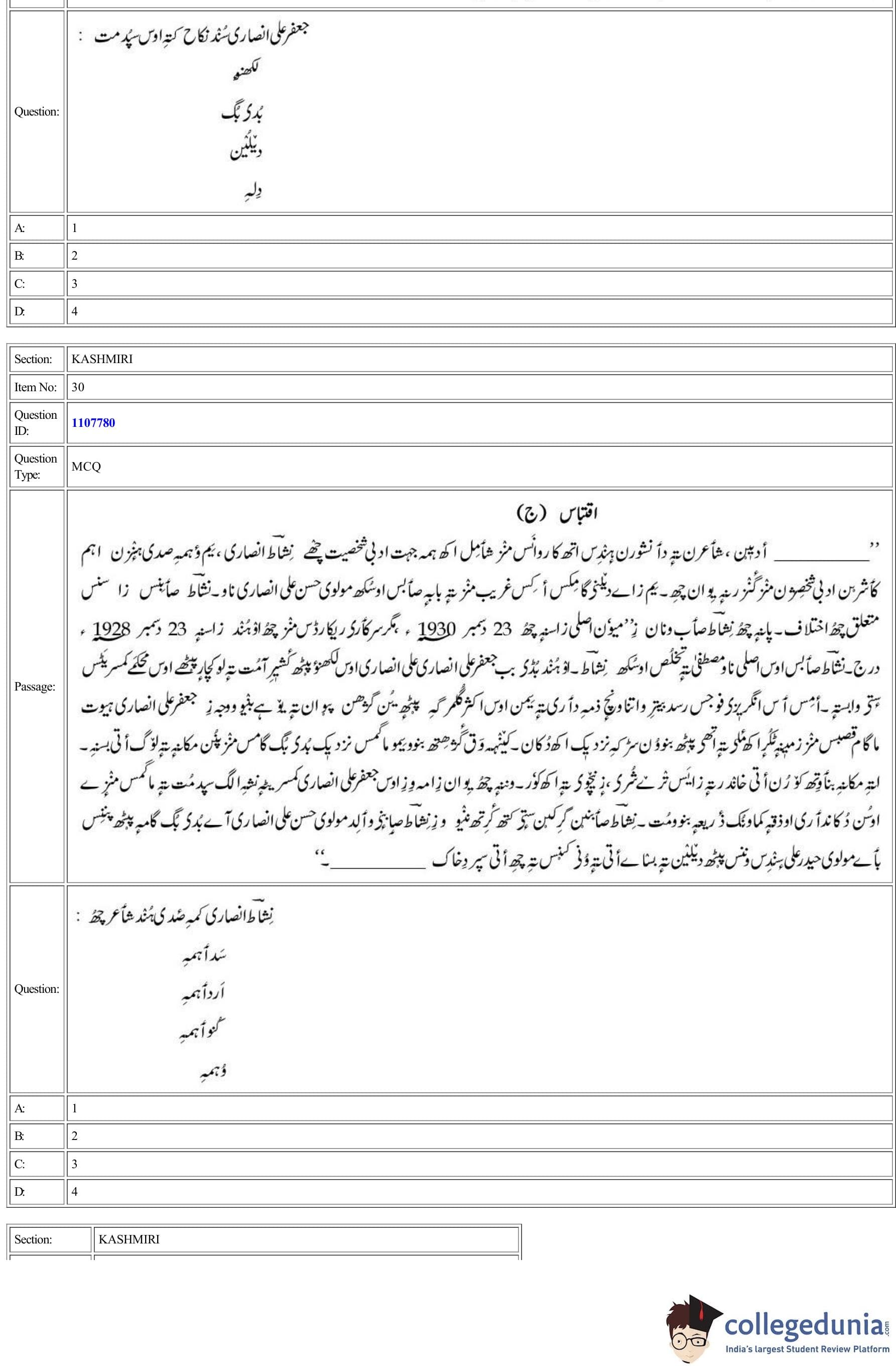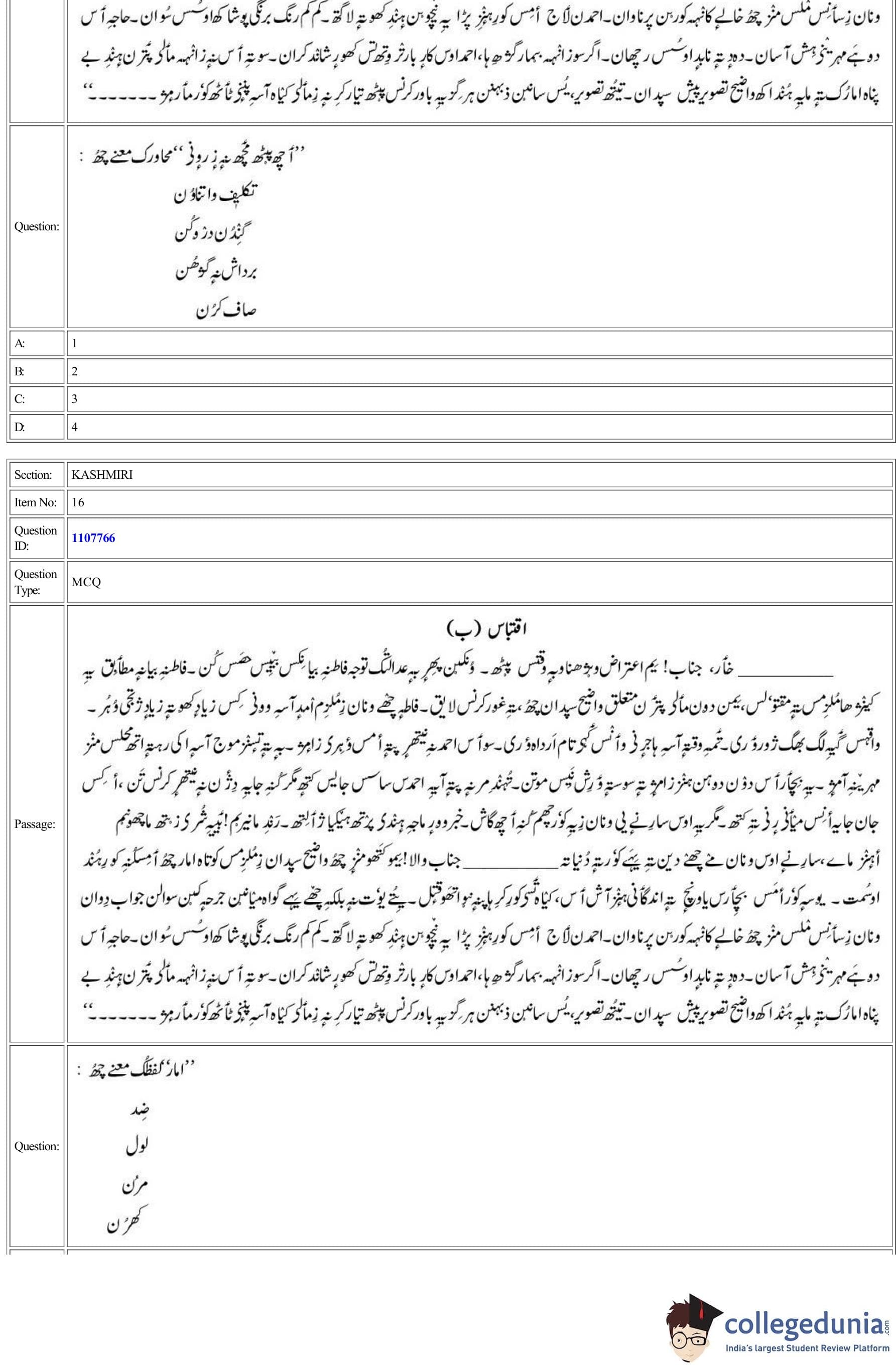 CUET 2022 Kashmiri Question Paper with Answer Key PDF