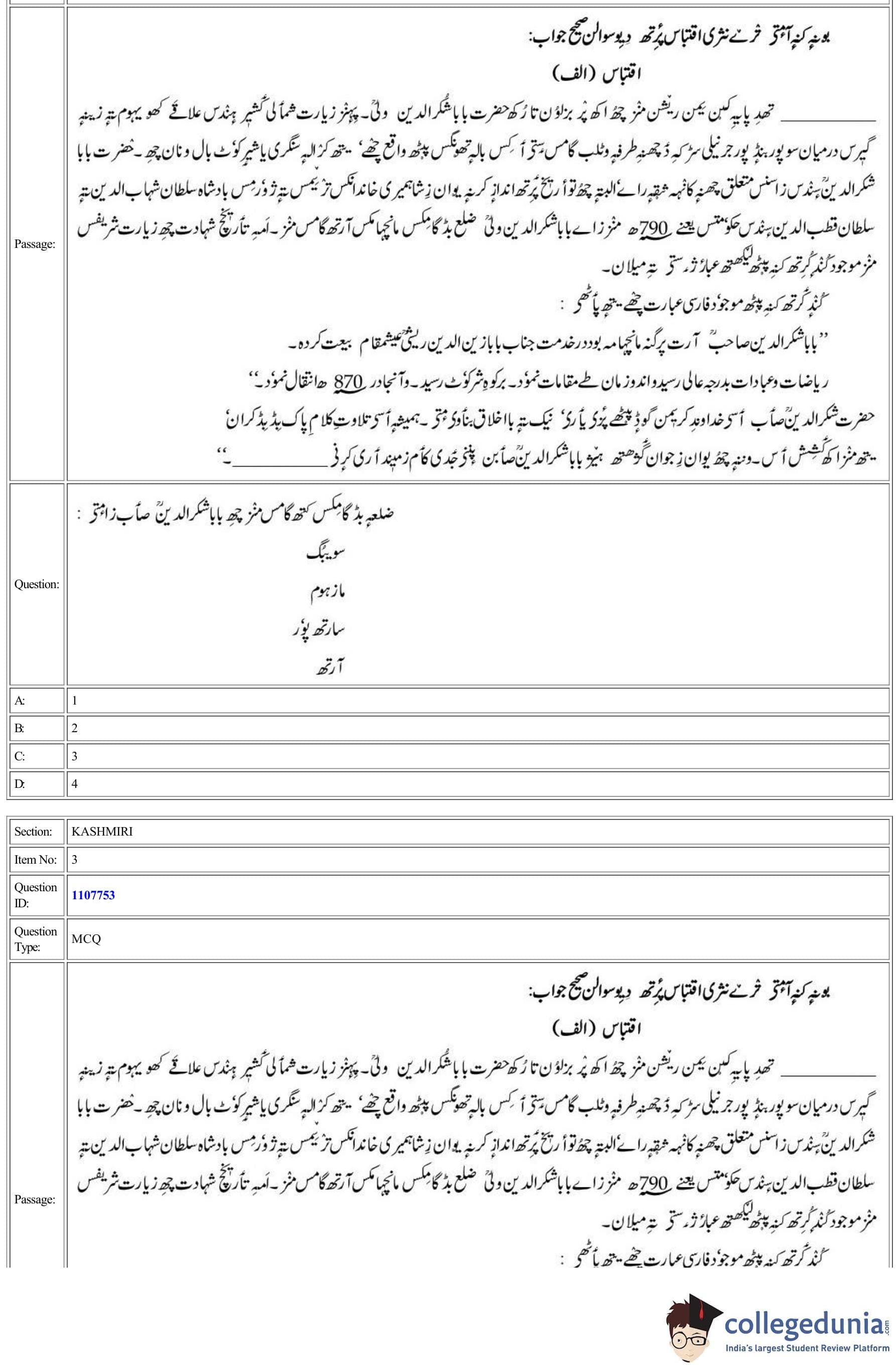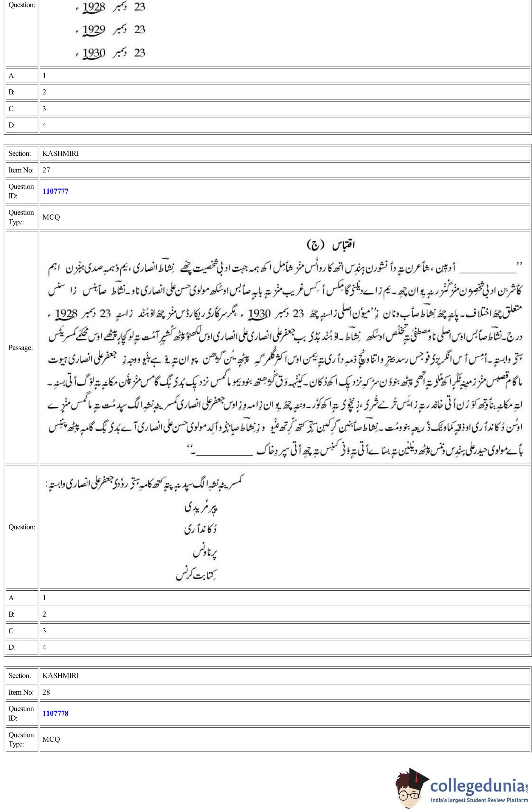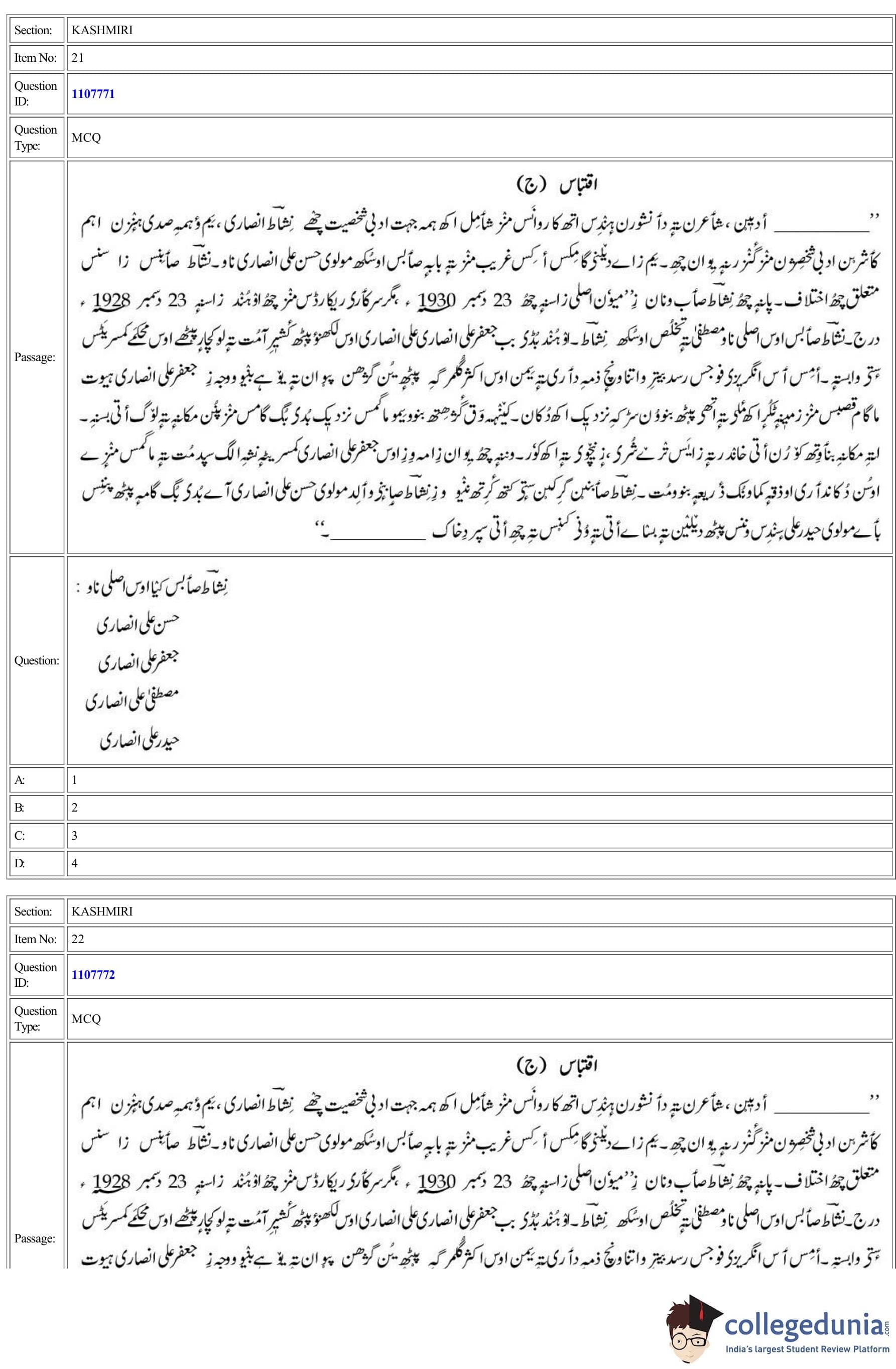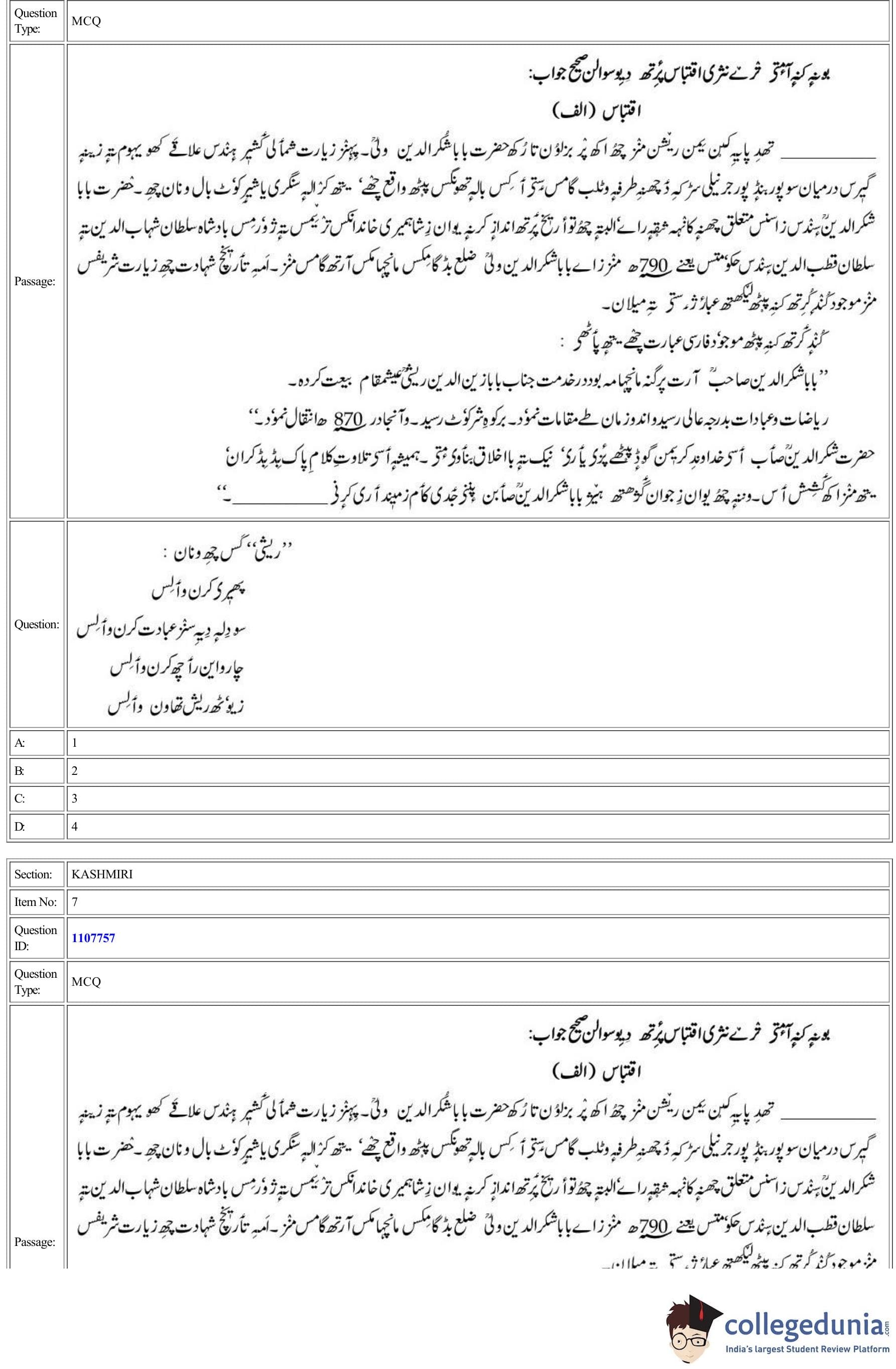 | CUET Kashmiri Question Paper PDF | CUET Kashmiri Answer Key PDF |
