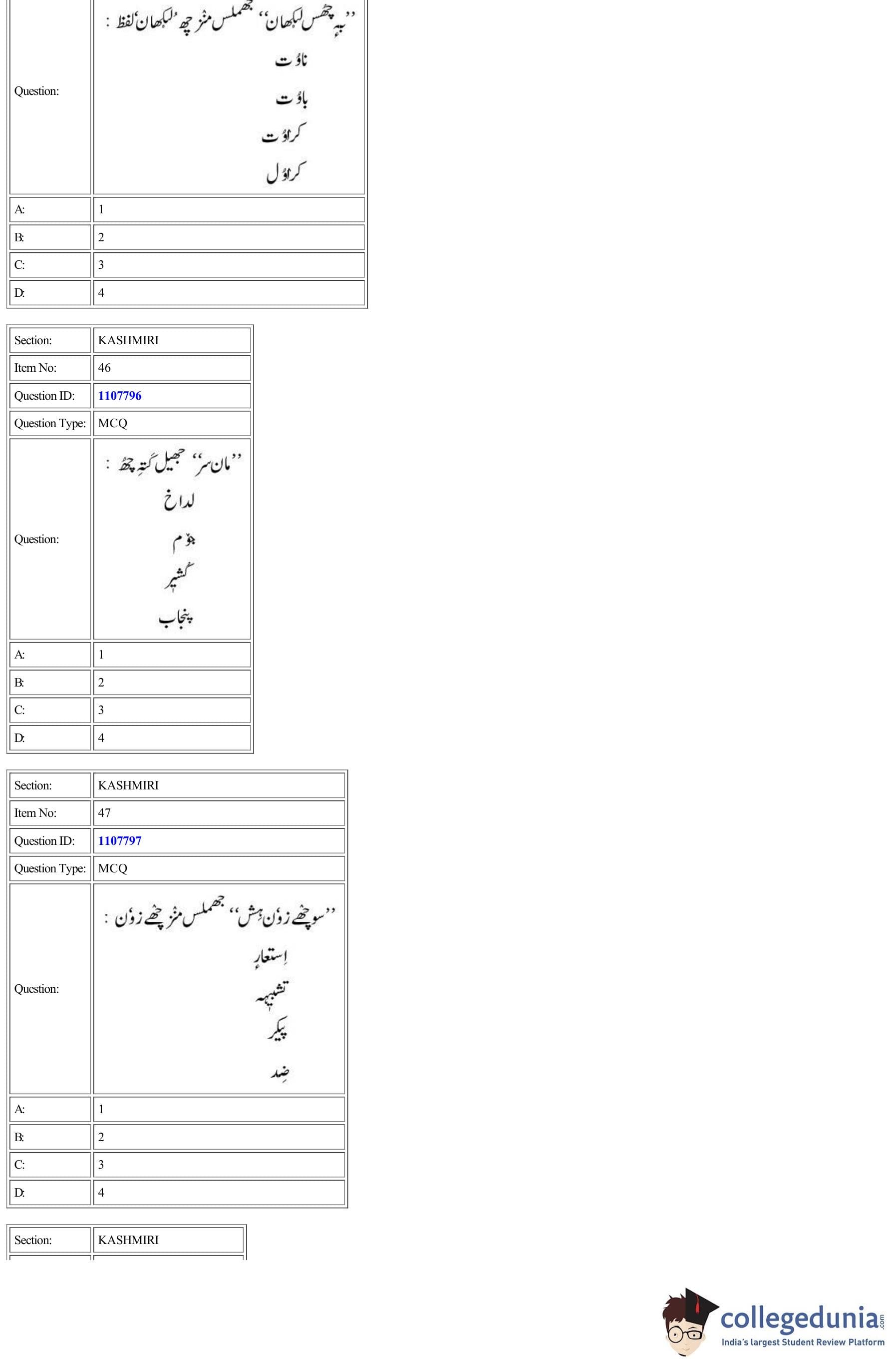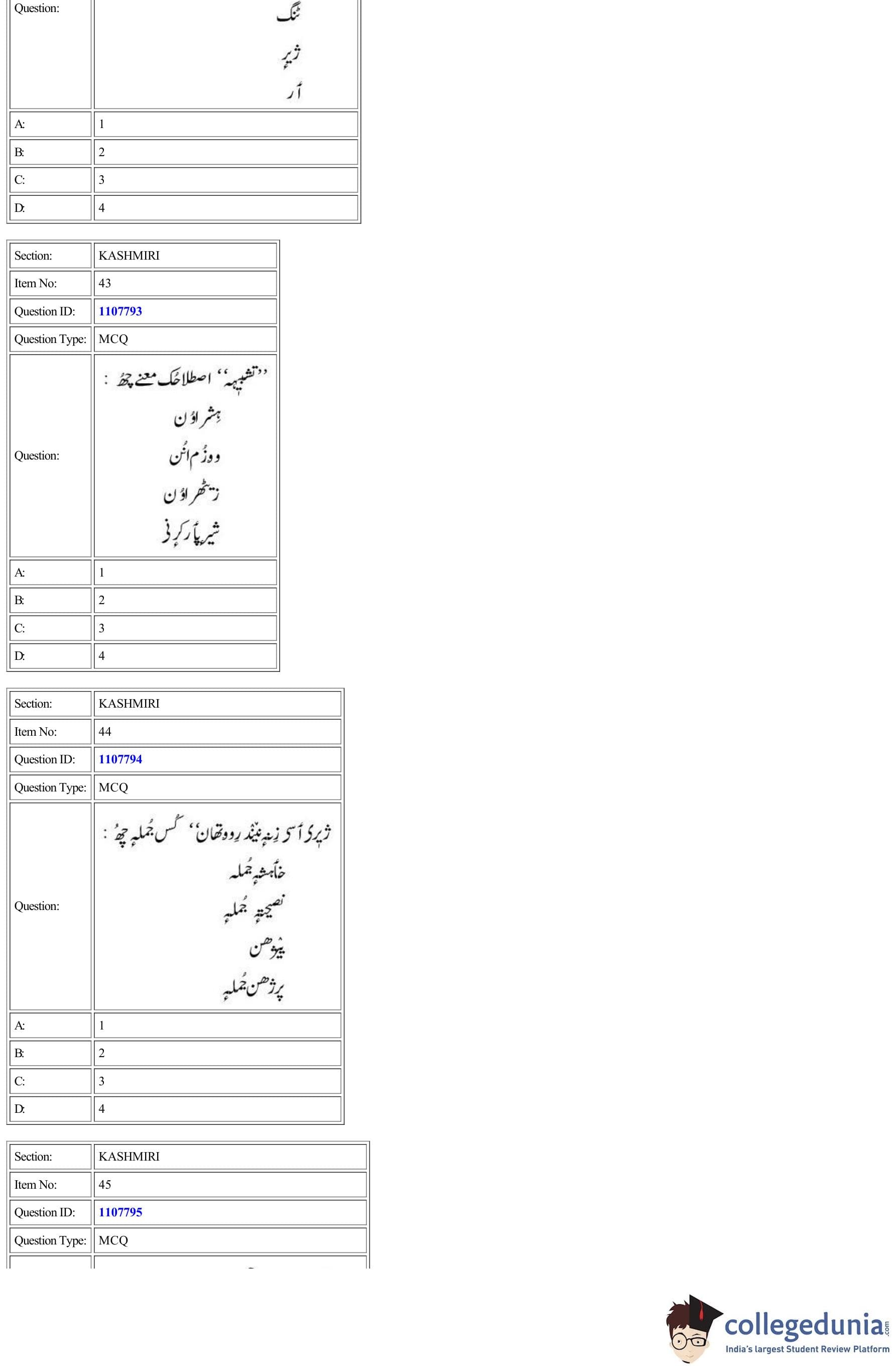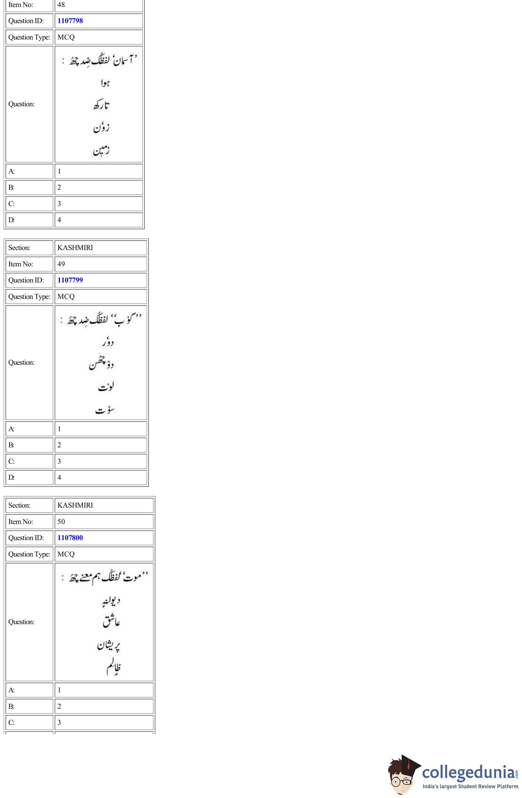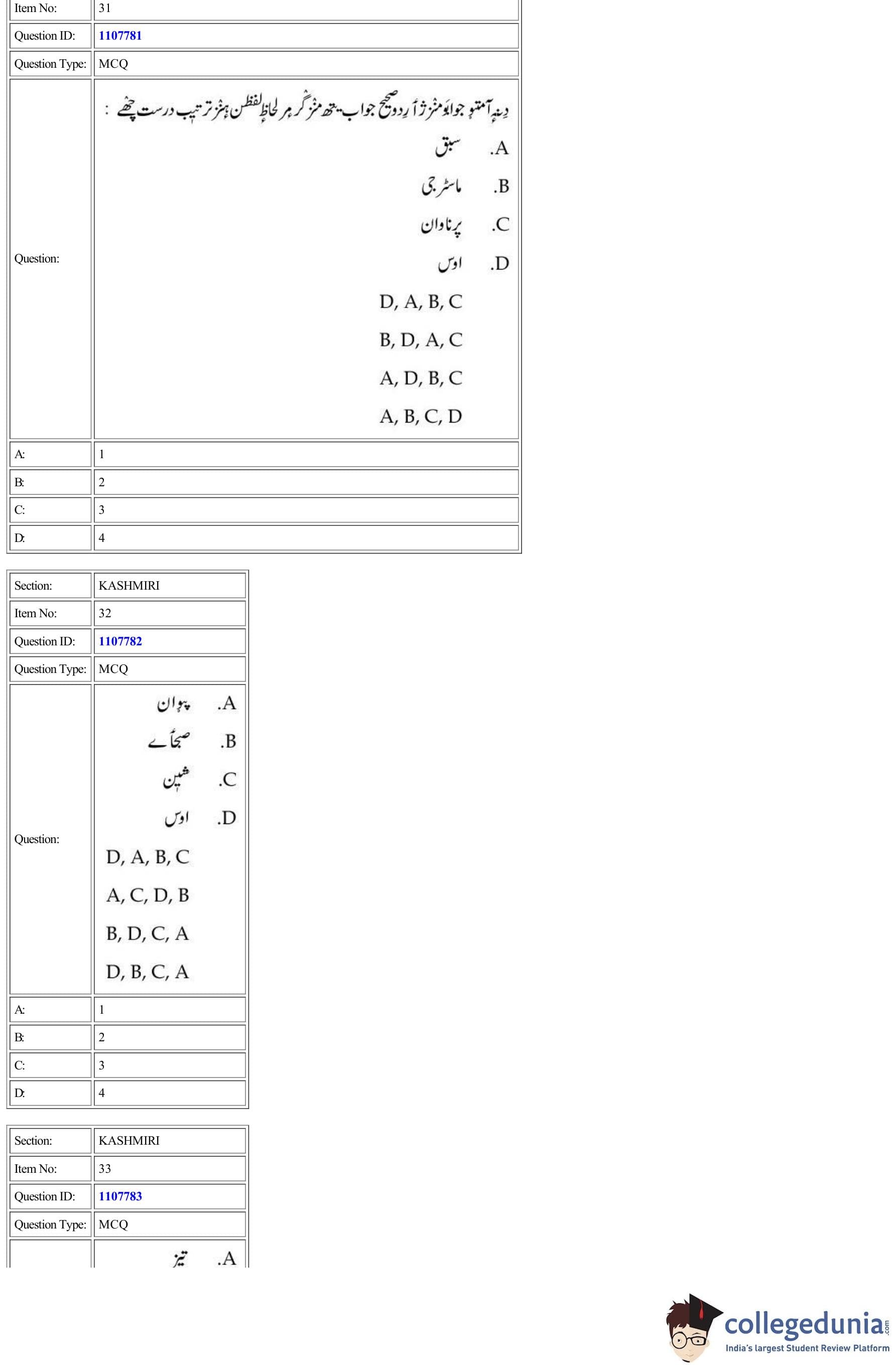 | CUET Kashmiri Question Paper PDF | CUET Kashmiri Answer Key PDF |