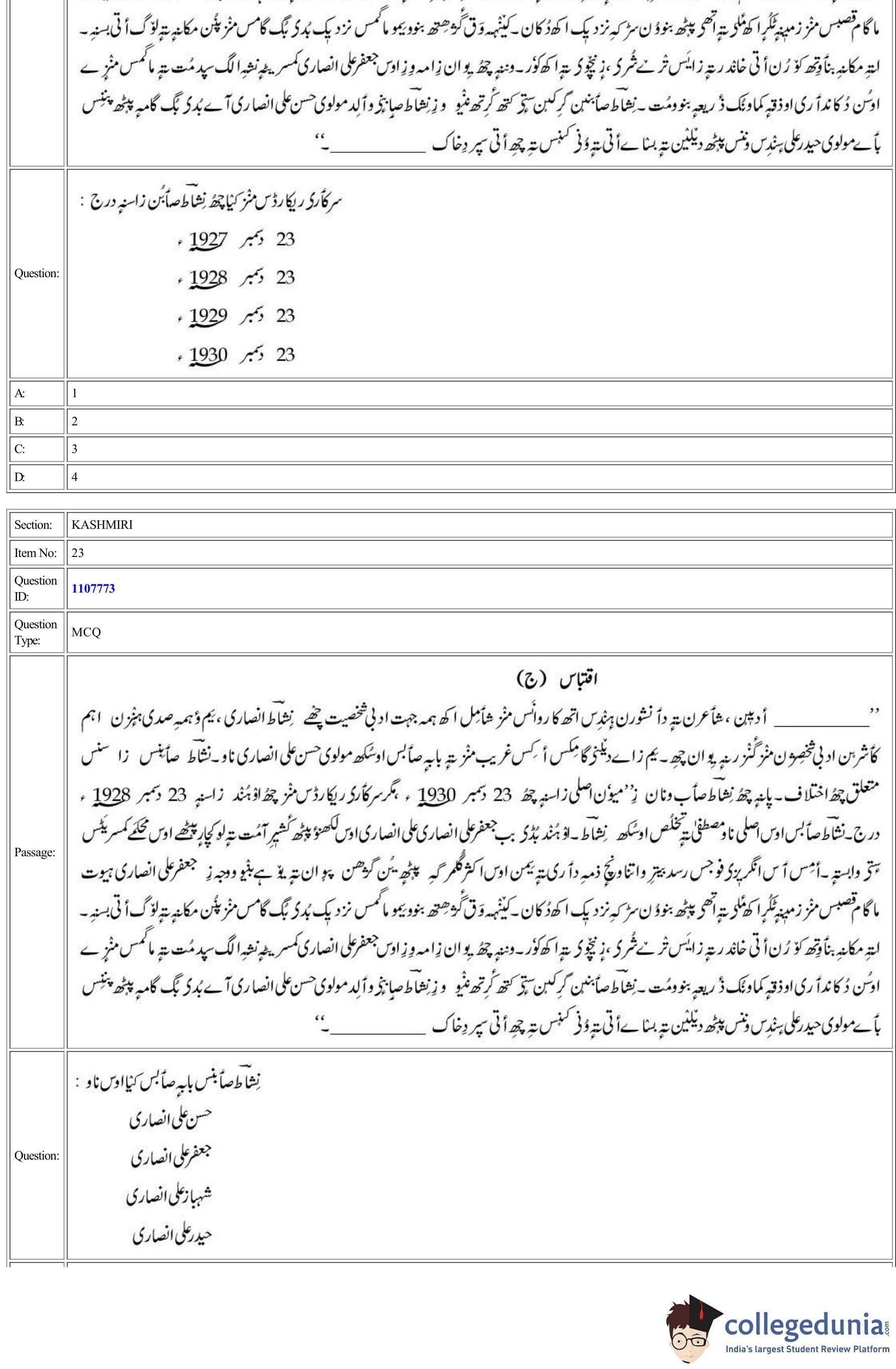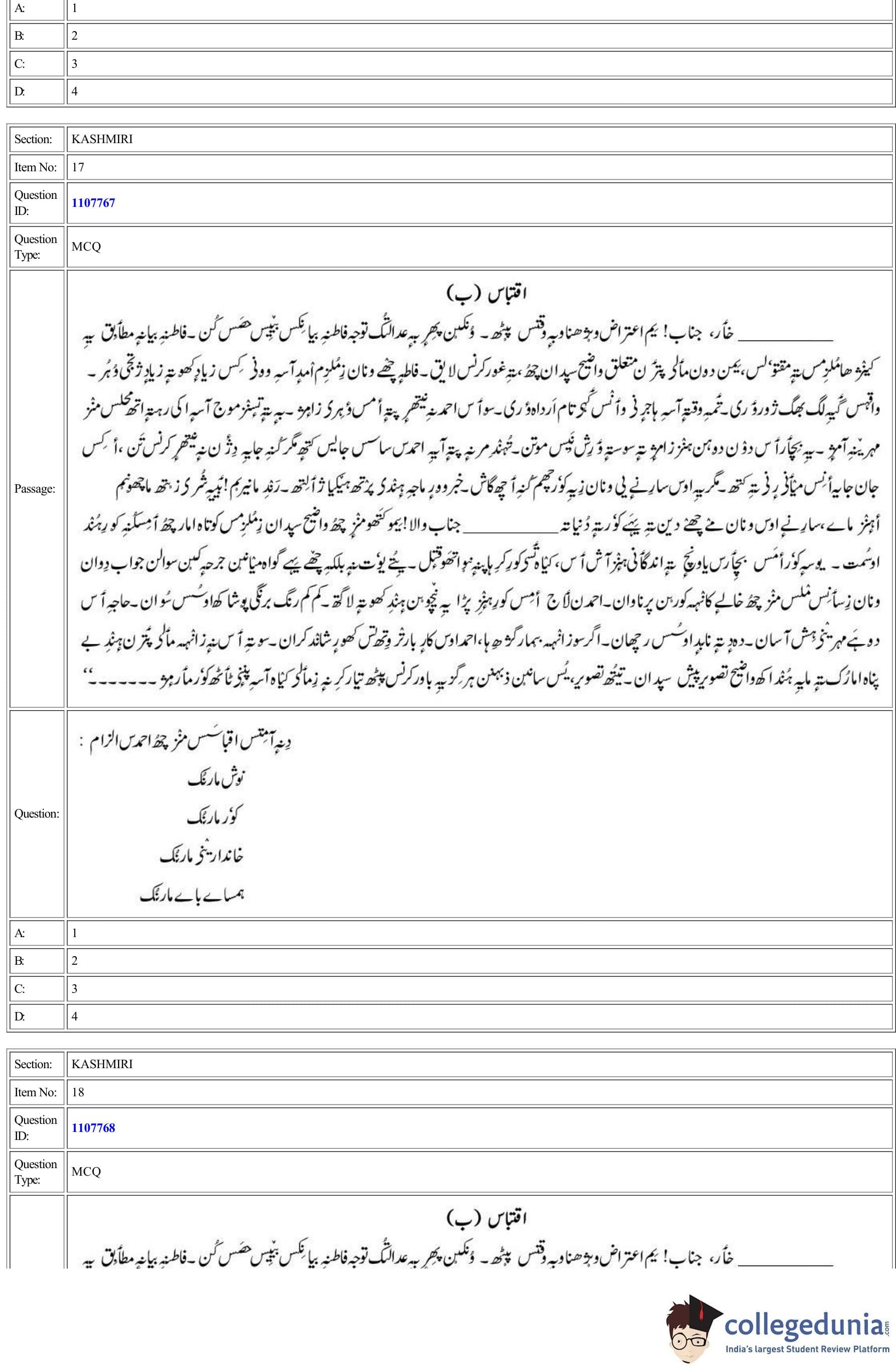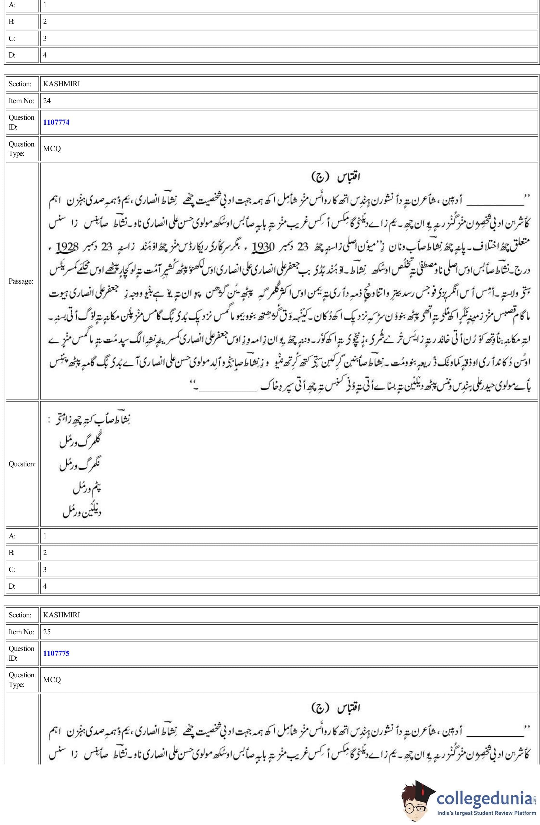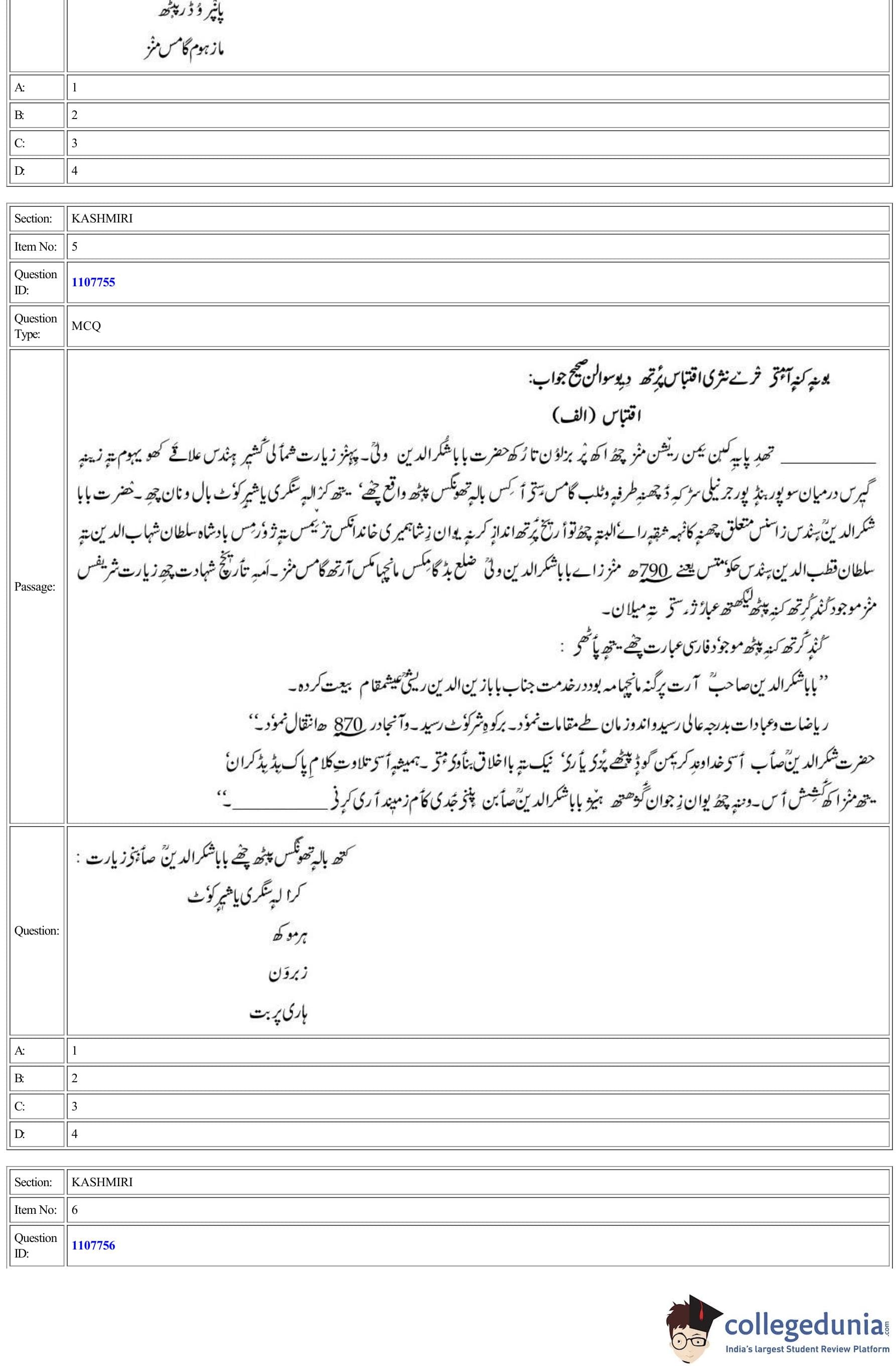 | CUET Kashmiri Question Paper PDF | CUET Kashmiri Answer Key PDF |